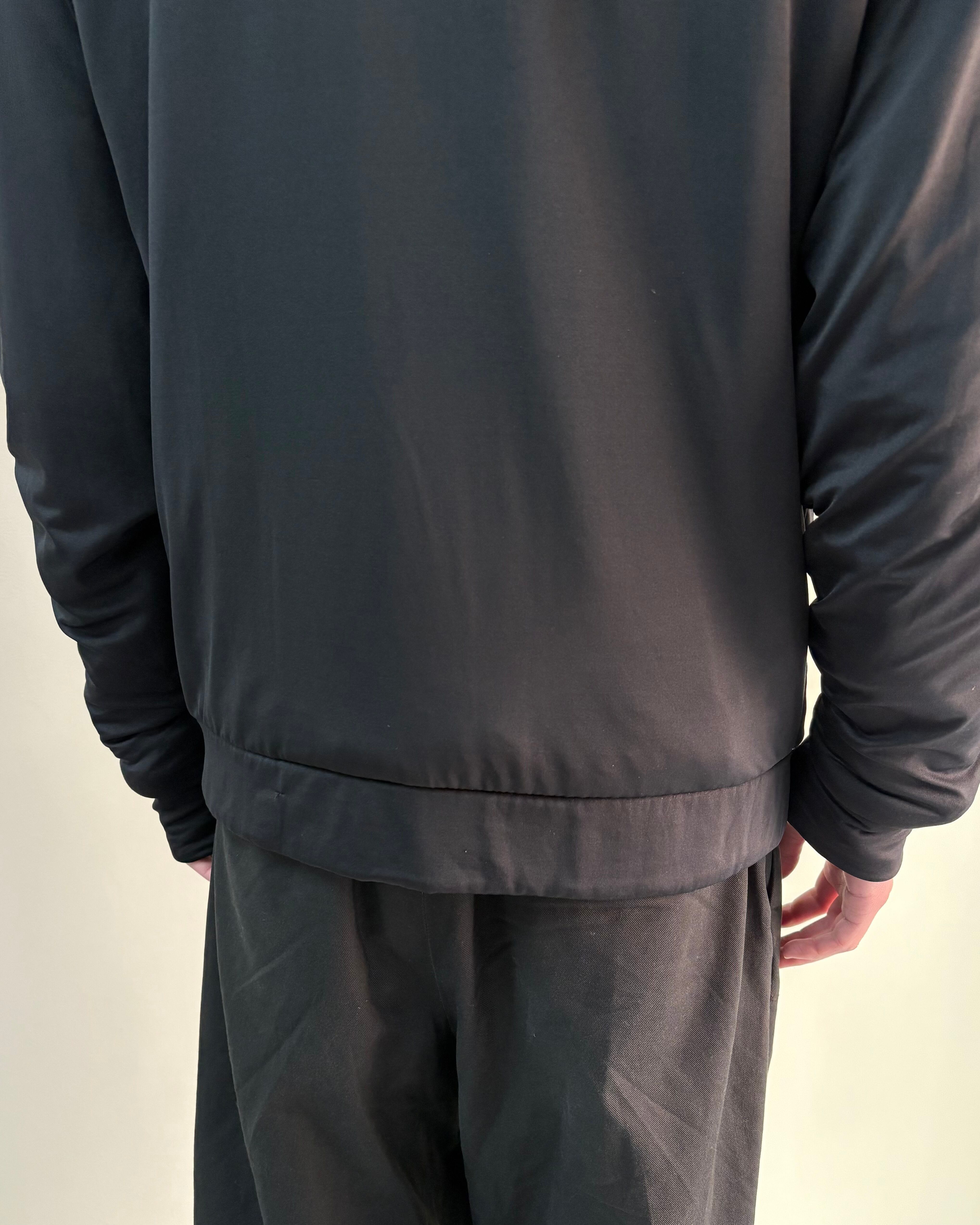 シンプルなブラックカラーをベースにしながら、胸元のディテールが程よいアクセントとなり、ブランドらしいモードな雰囲気のあるアイテム。