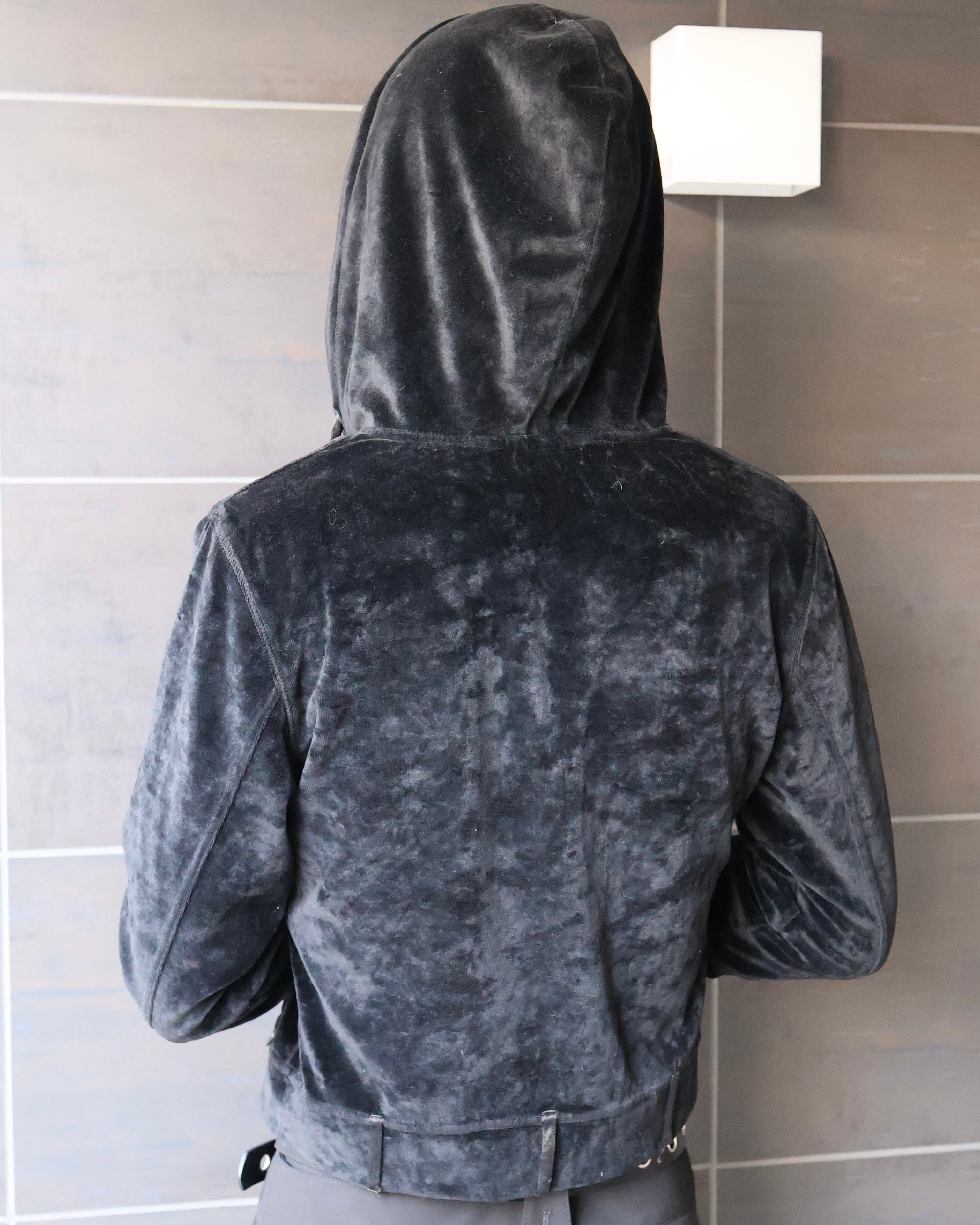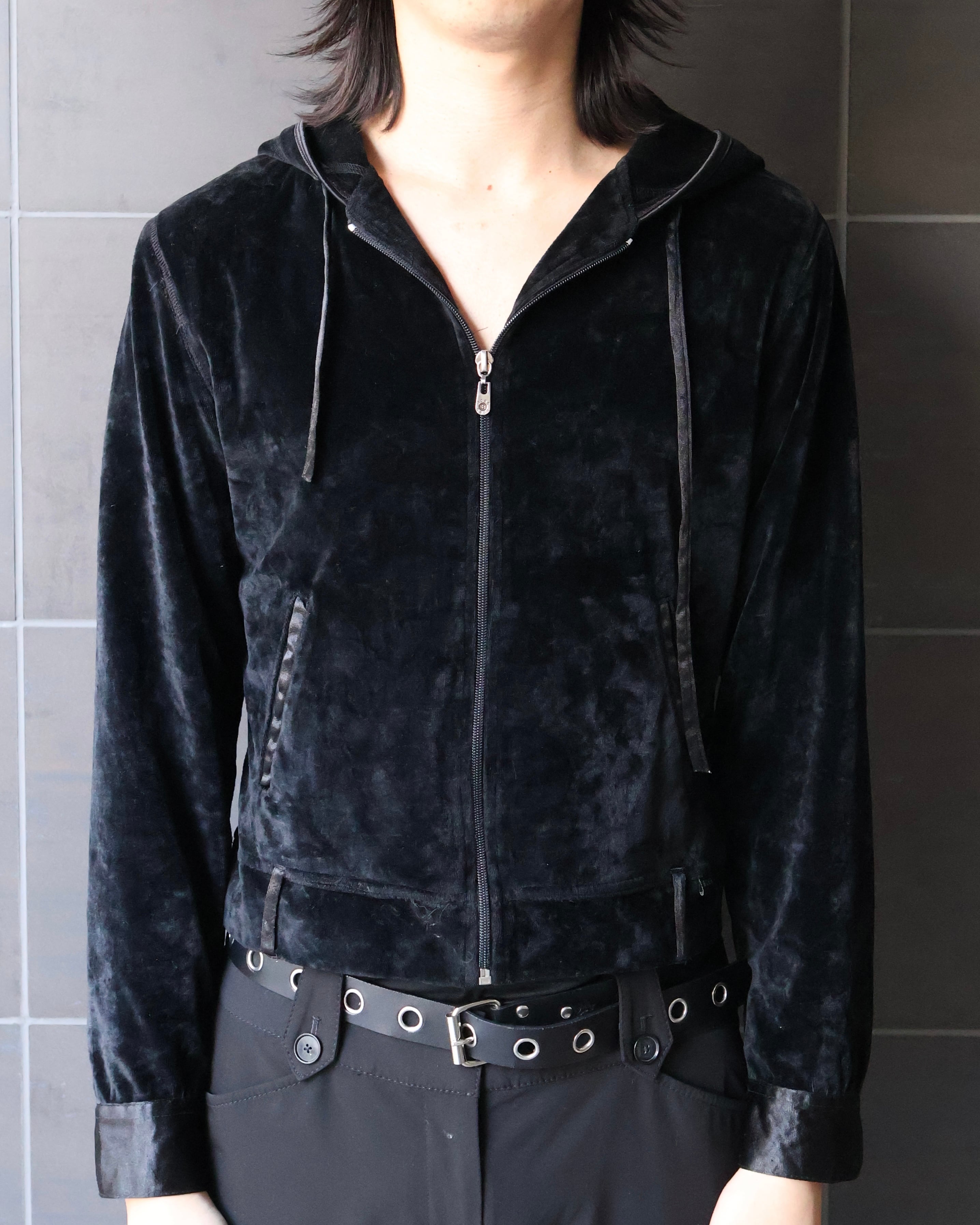 short length velour zip-up hoodie