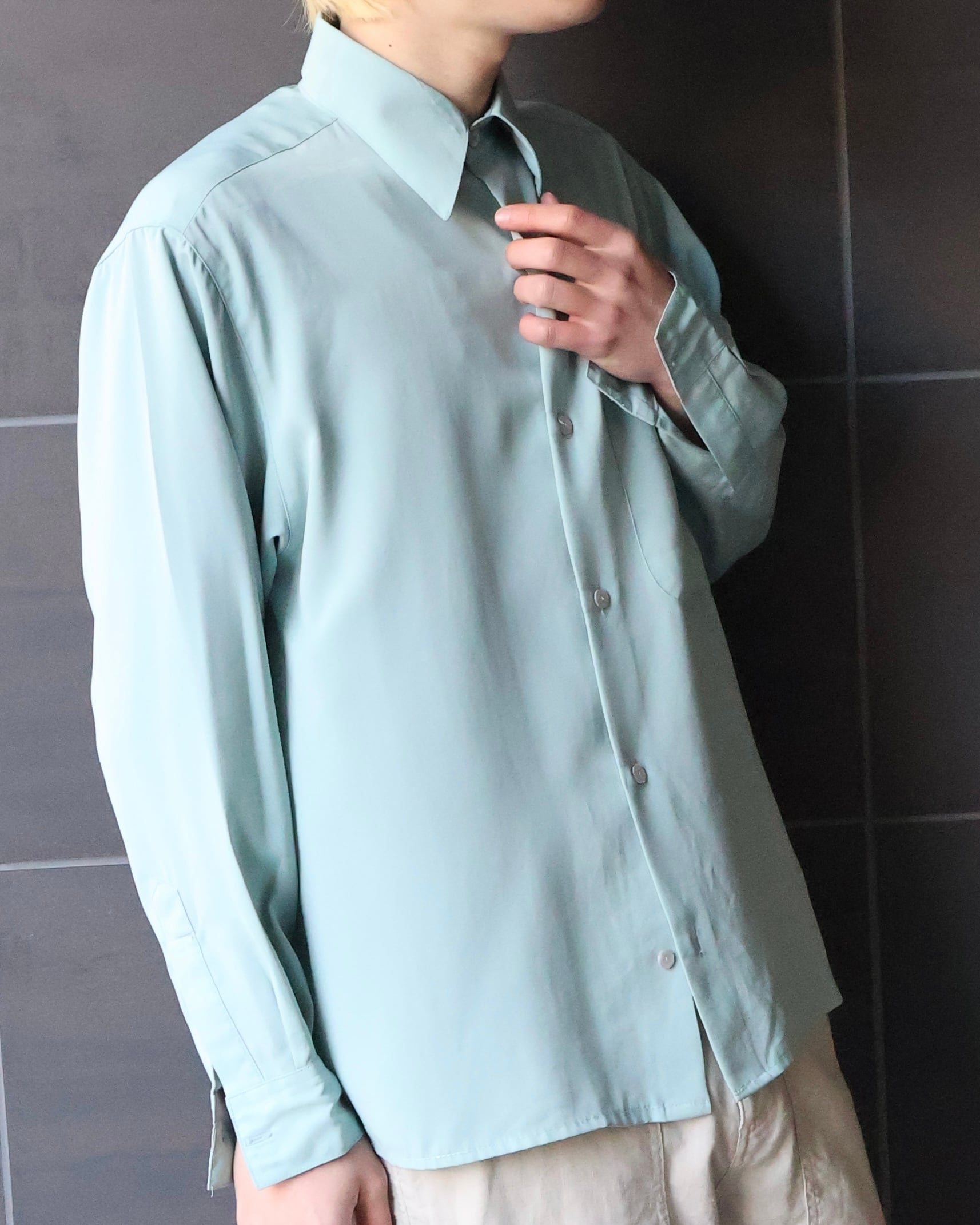 ベーシックで使いやすいシルエットでありながらパステルのいい色が印象な1着。春1枚でざっくり着ても、インナーとして色を足す要員で着てもgood。