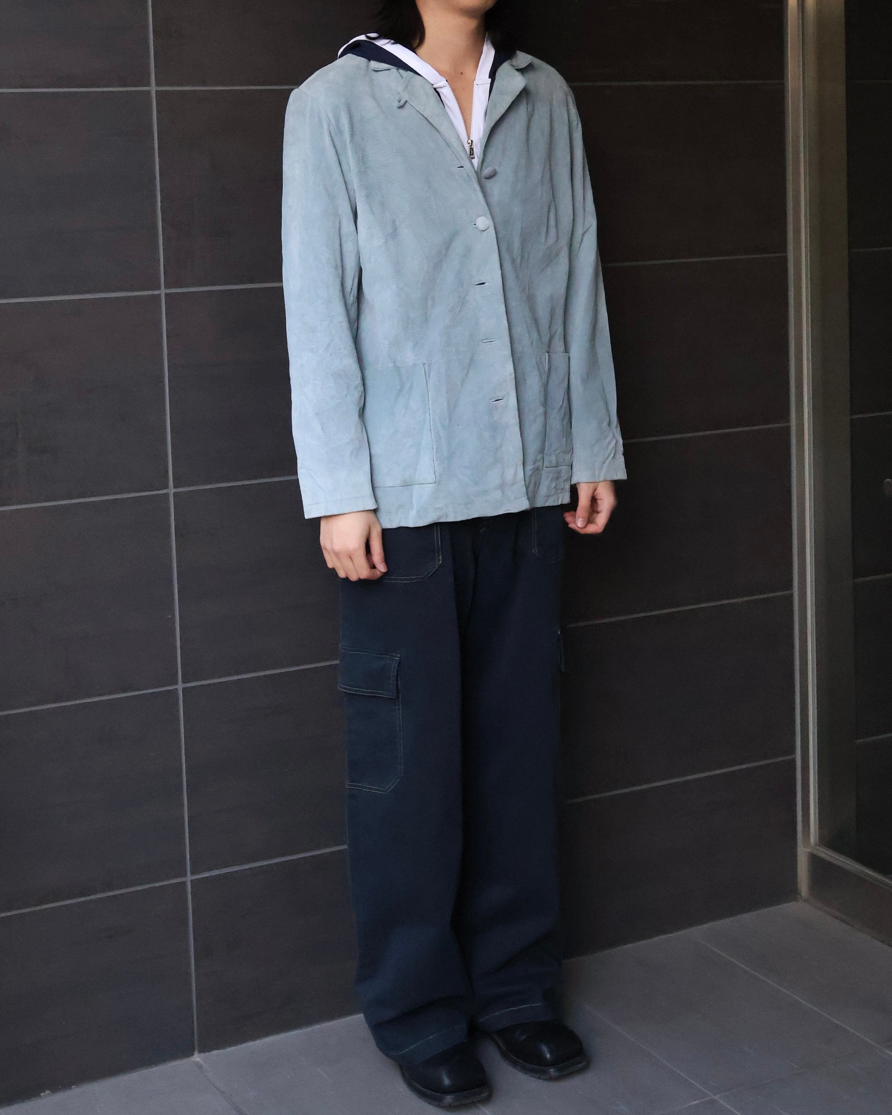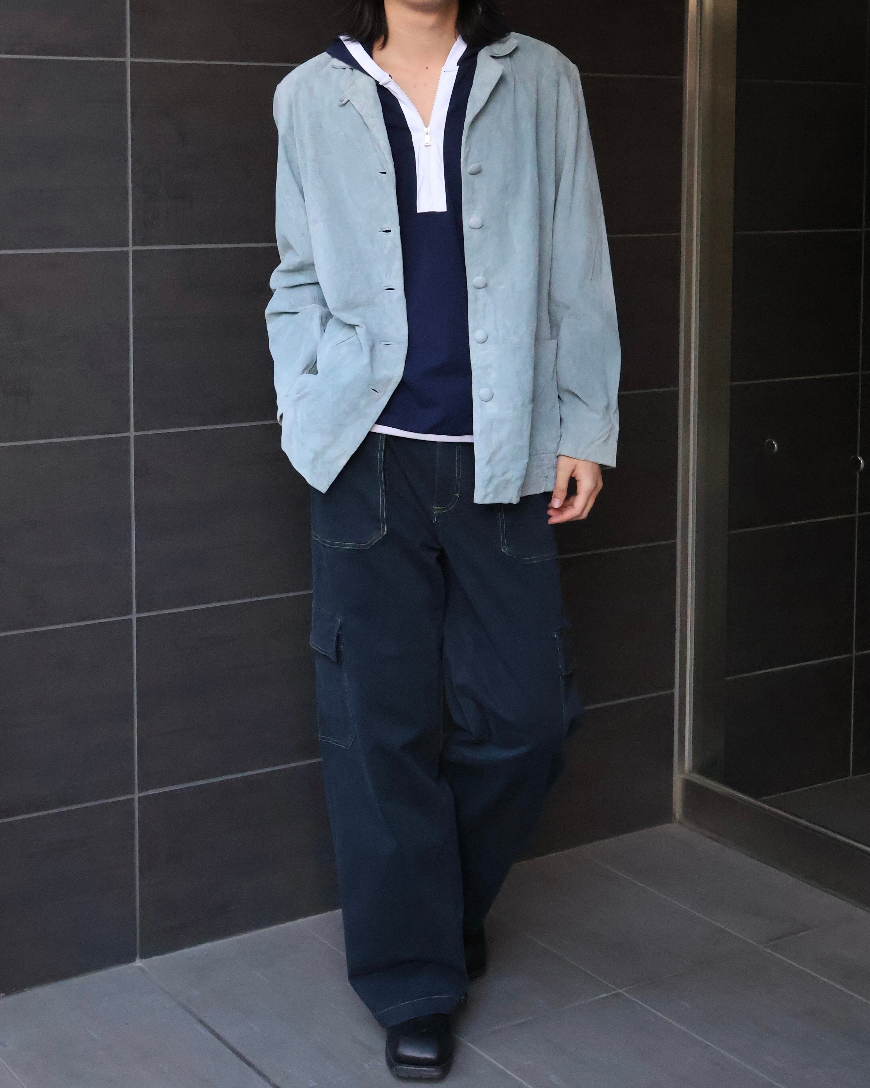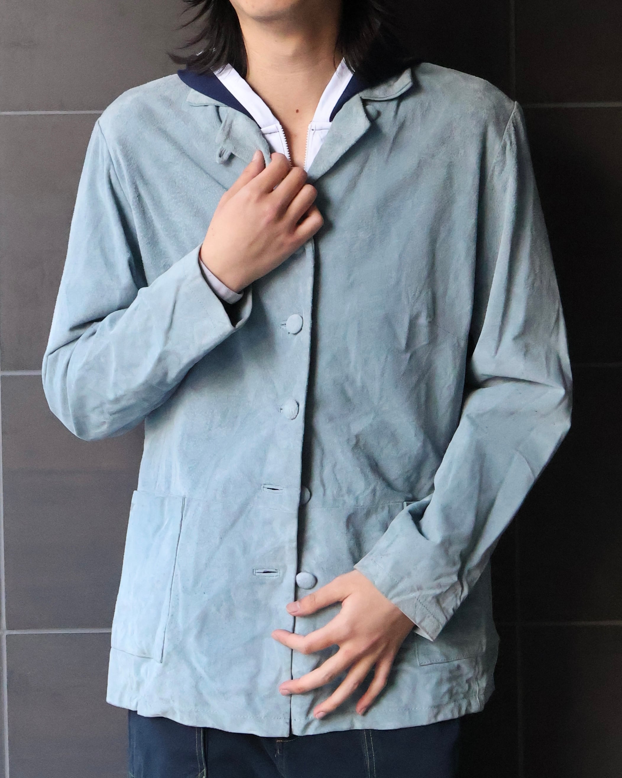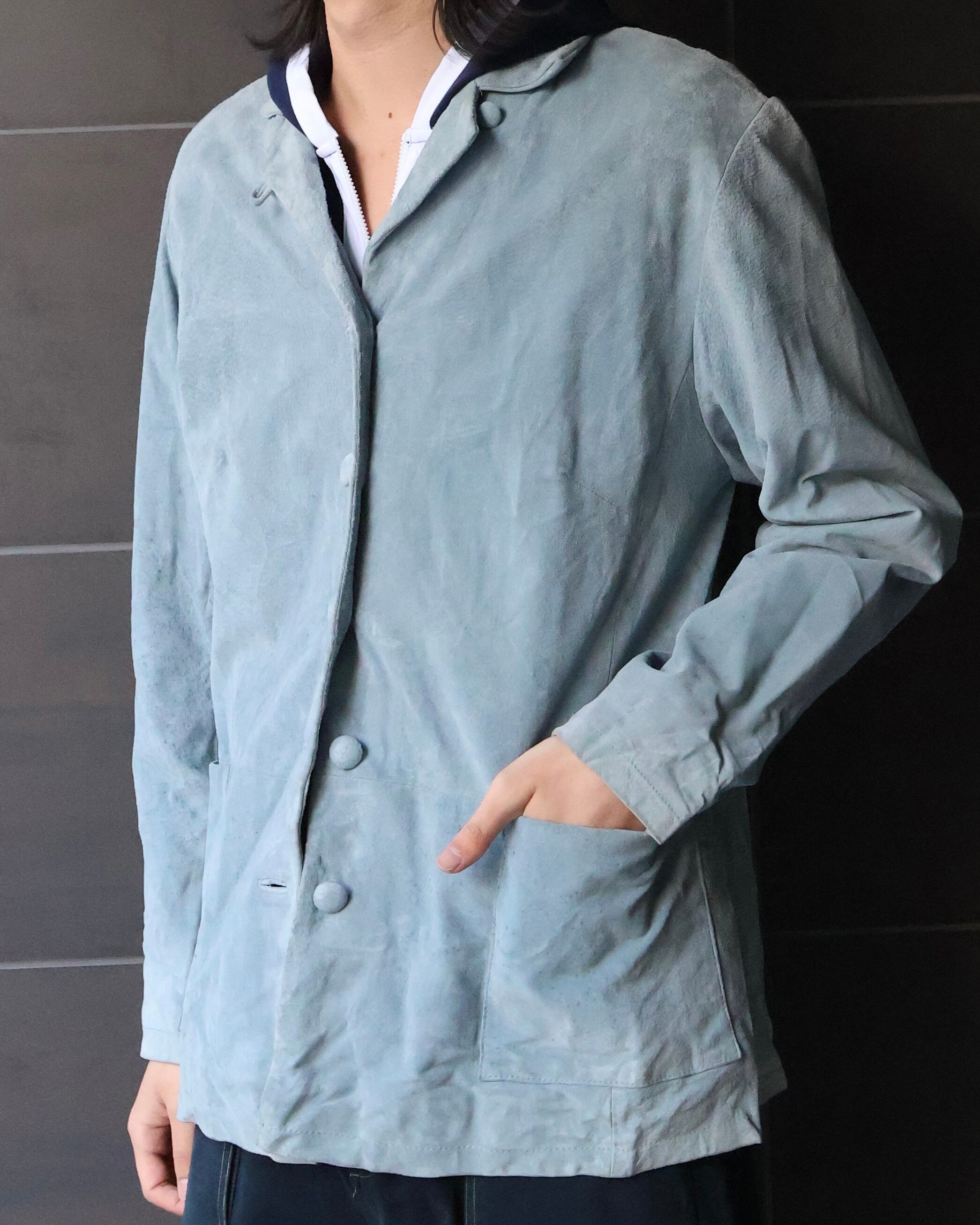 スエードの野暮ったい印象をgoodな色が中和してくれている1着。冬はスタイリングに色を足したい時に、春は1枚で決まる、使える期間が長いのもgood。