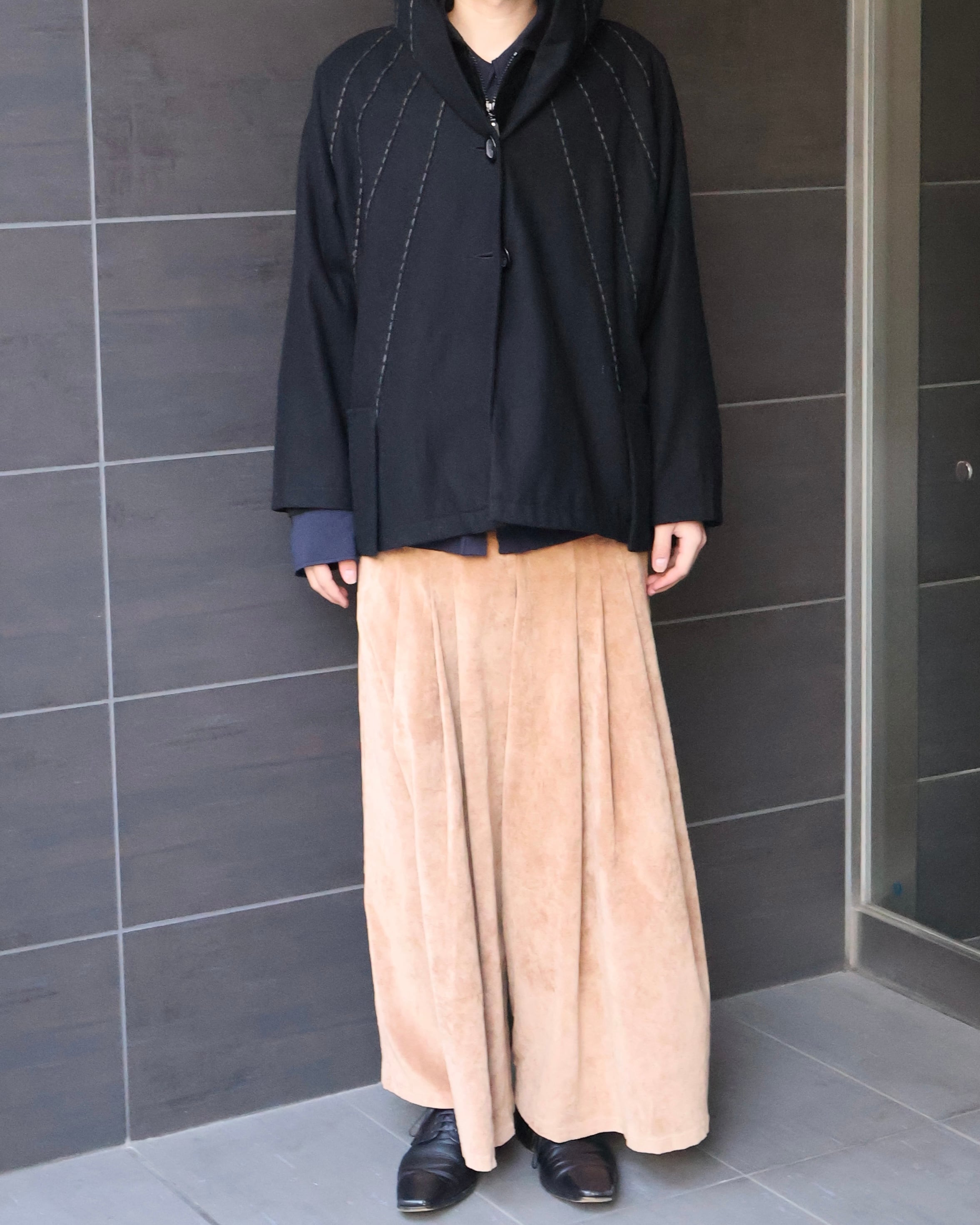 シルエットと生地が美しい1着。無駄な装飾は省かれておりミニマルな印象よ兼ね備えているため、どんなスタイリングにも落とし込める万能なジャケット。