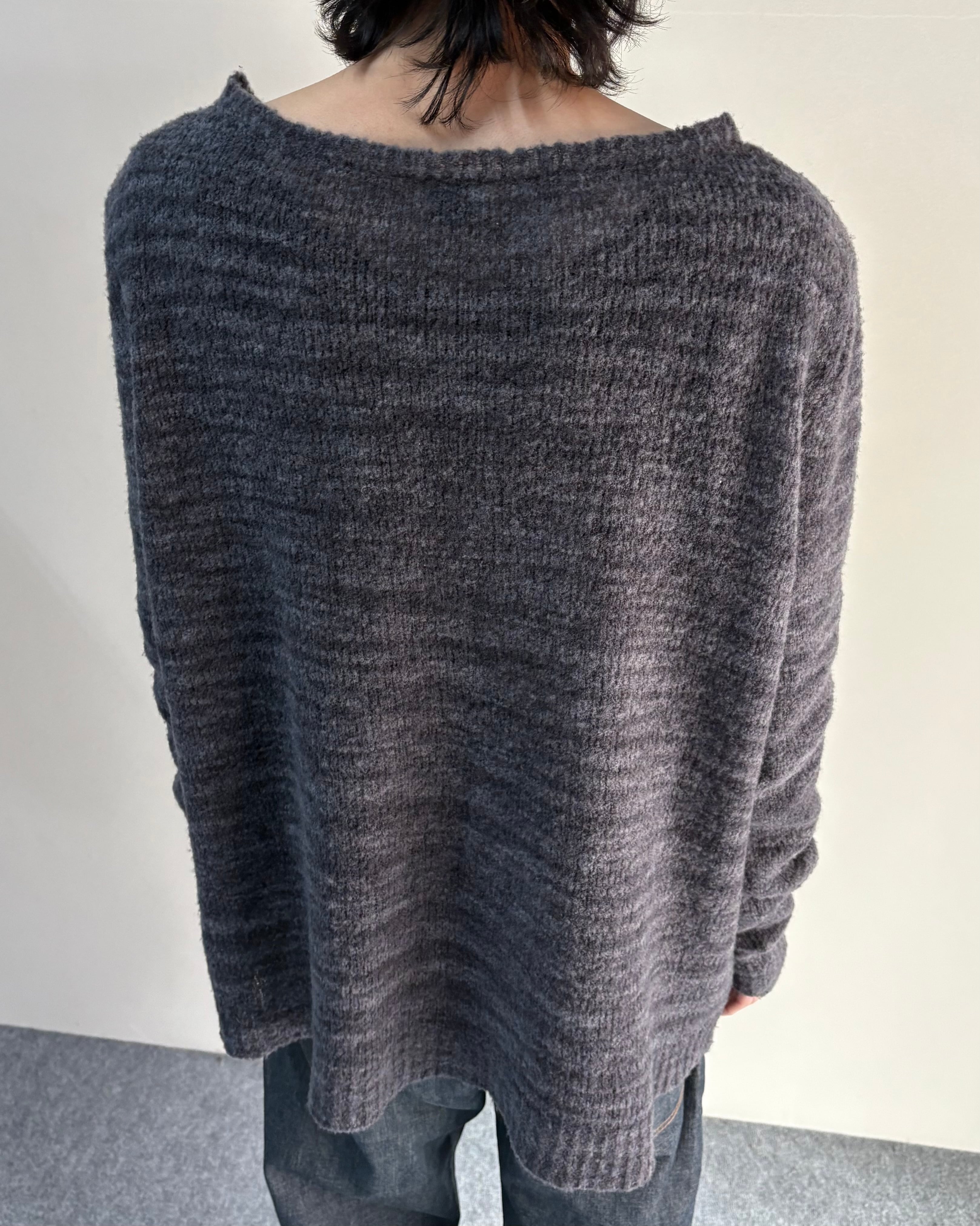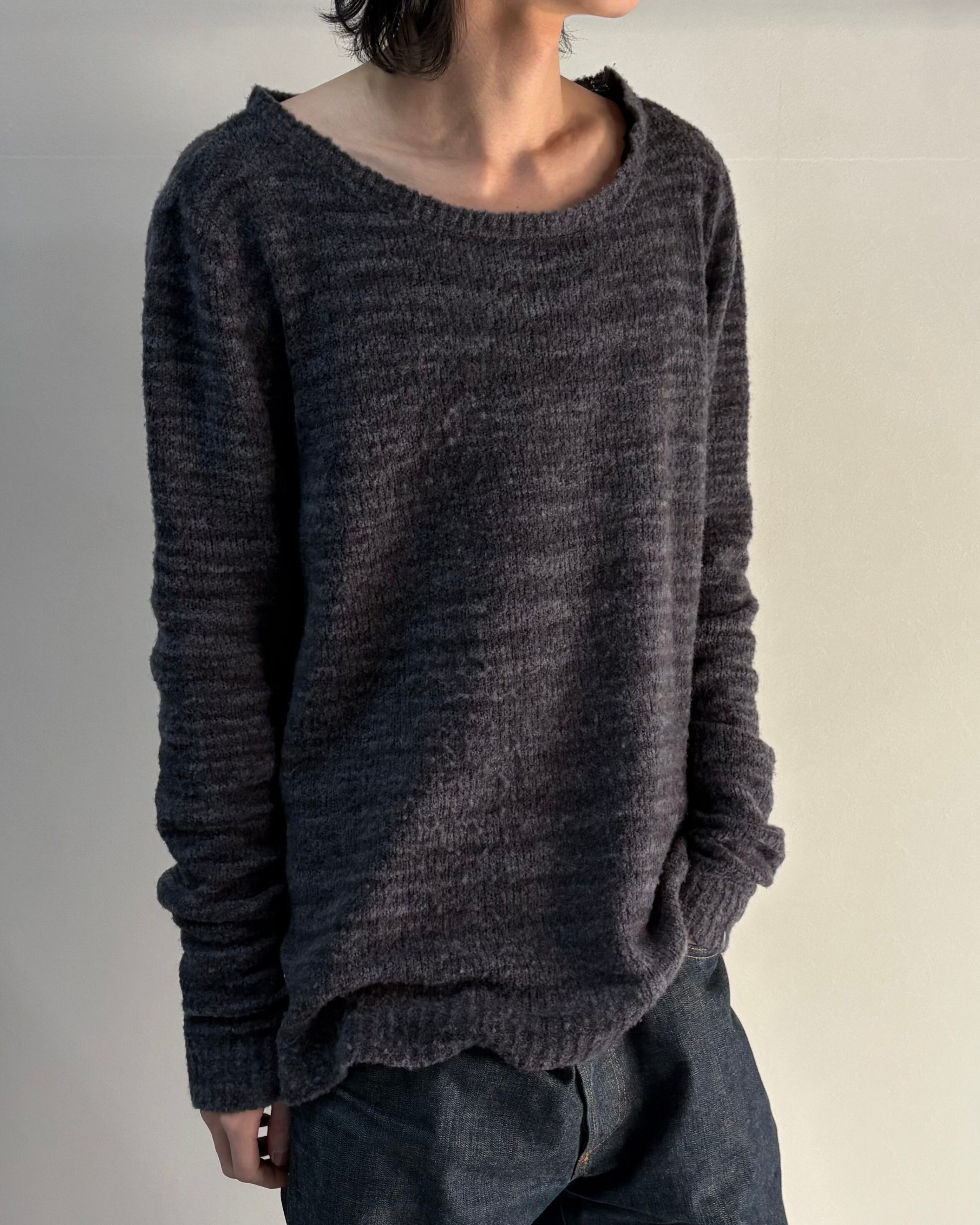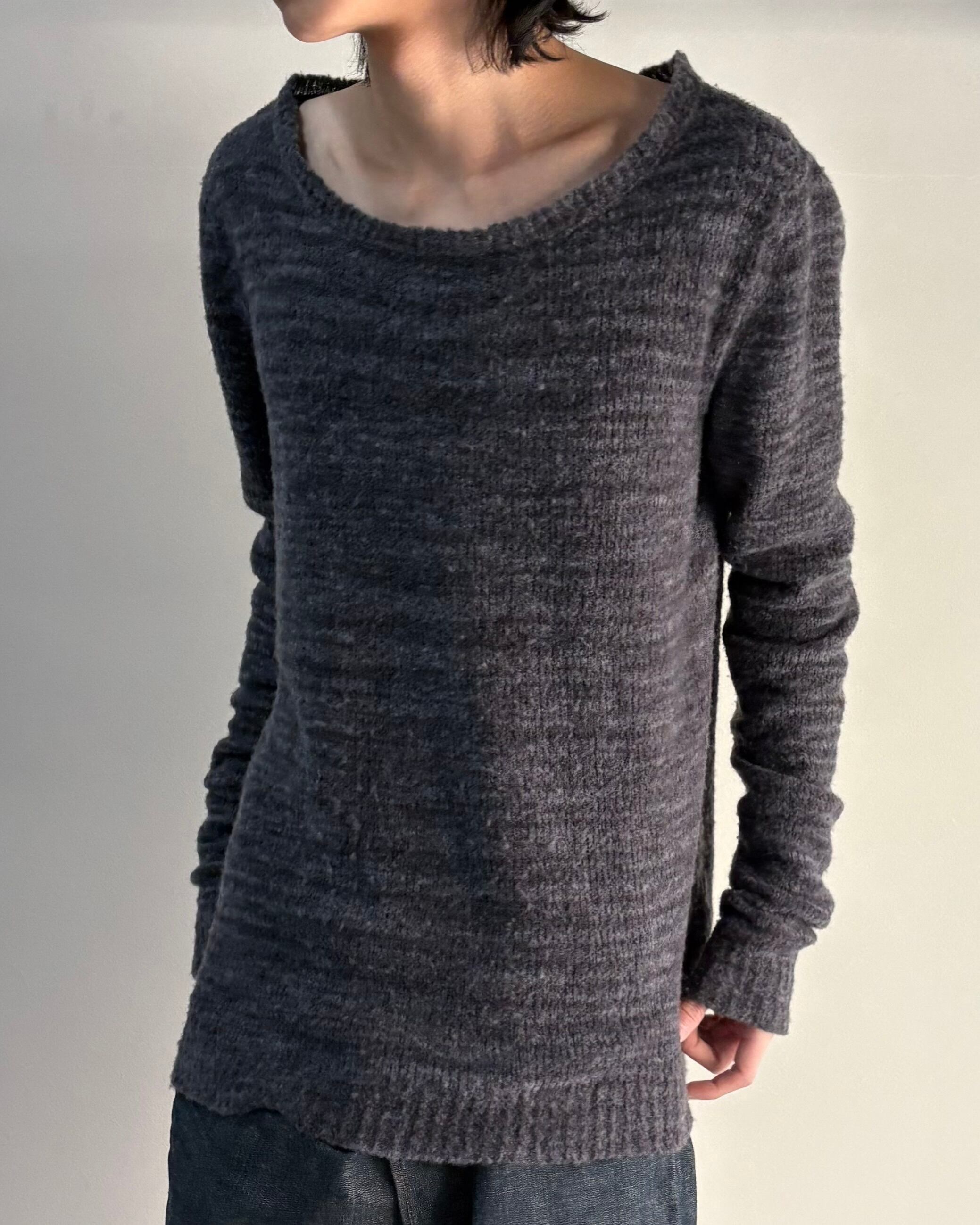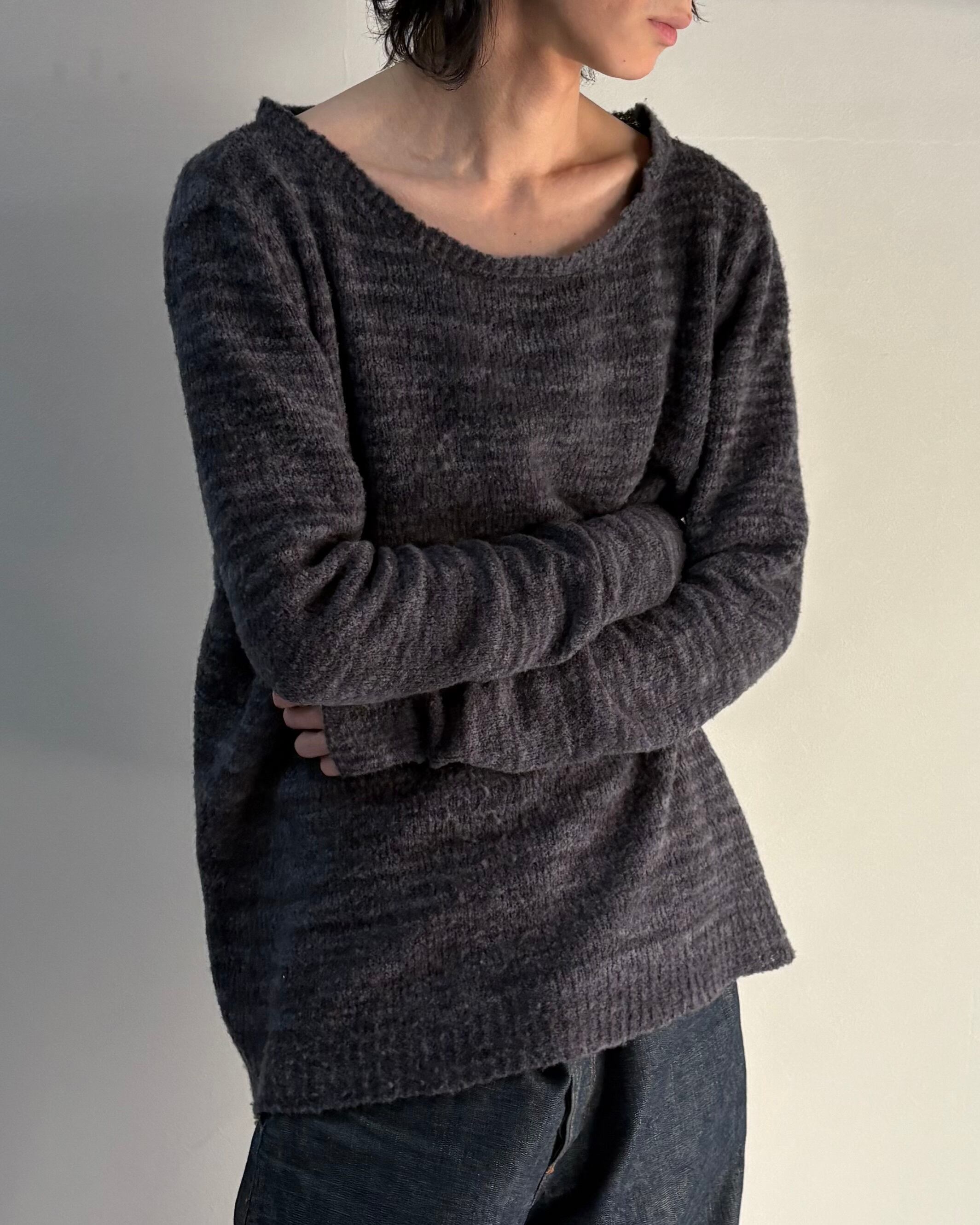 柔らかな起毛感のある表情と落ち着いたグレーカラーが特徴のアイテム。広めなネックラインとリラックスしたシルエットにより、アルマーニらしい上品な抜け感のある一着。