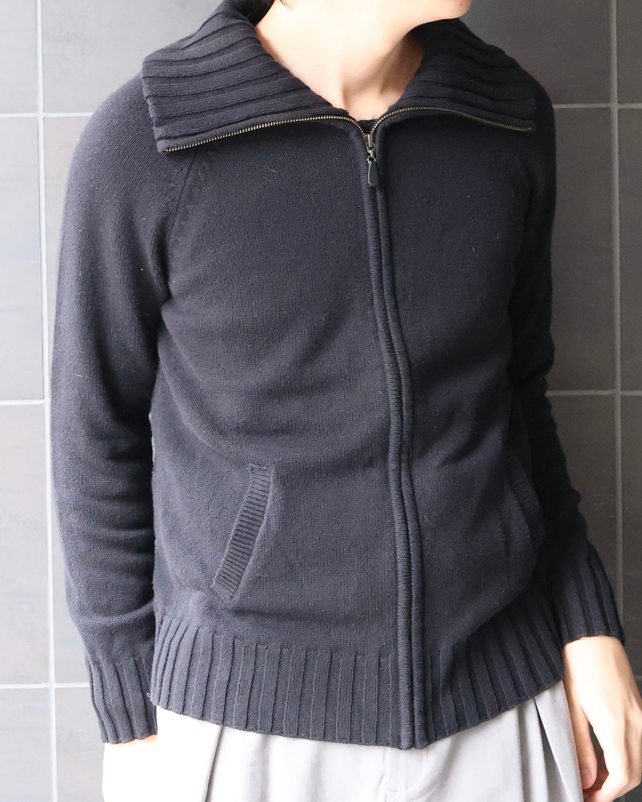 襟が特徴なジップアップニット。ベーシックであるが故に選ばれにくいというのが春先のグッドレギュラーの悲しい性ではありますが、こちらはベーシックではあるがどこか個性を感じる一枚で、着れば着るほどなら愛着のわくトップス。