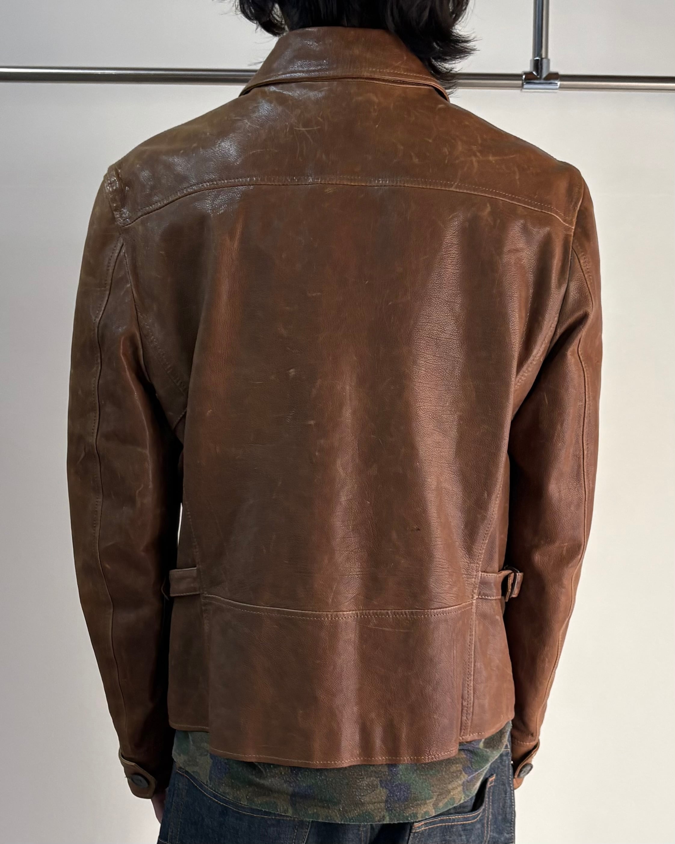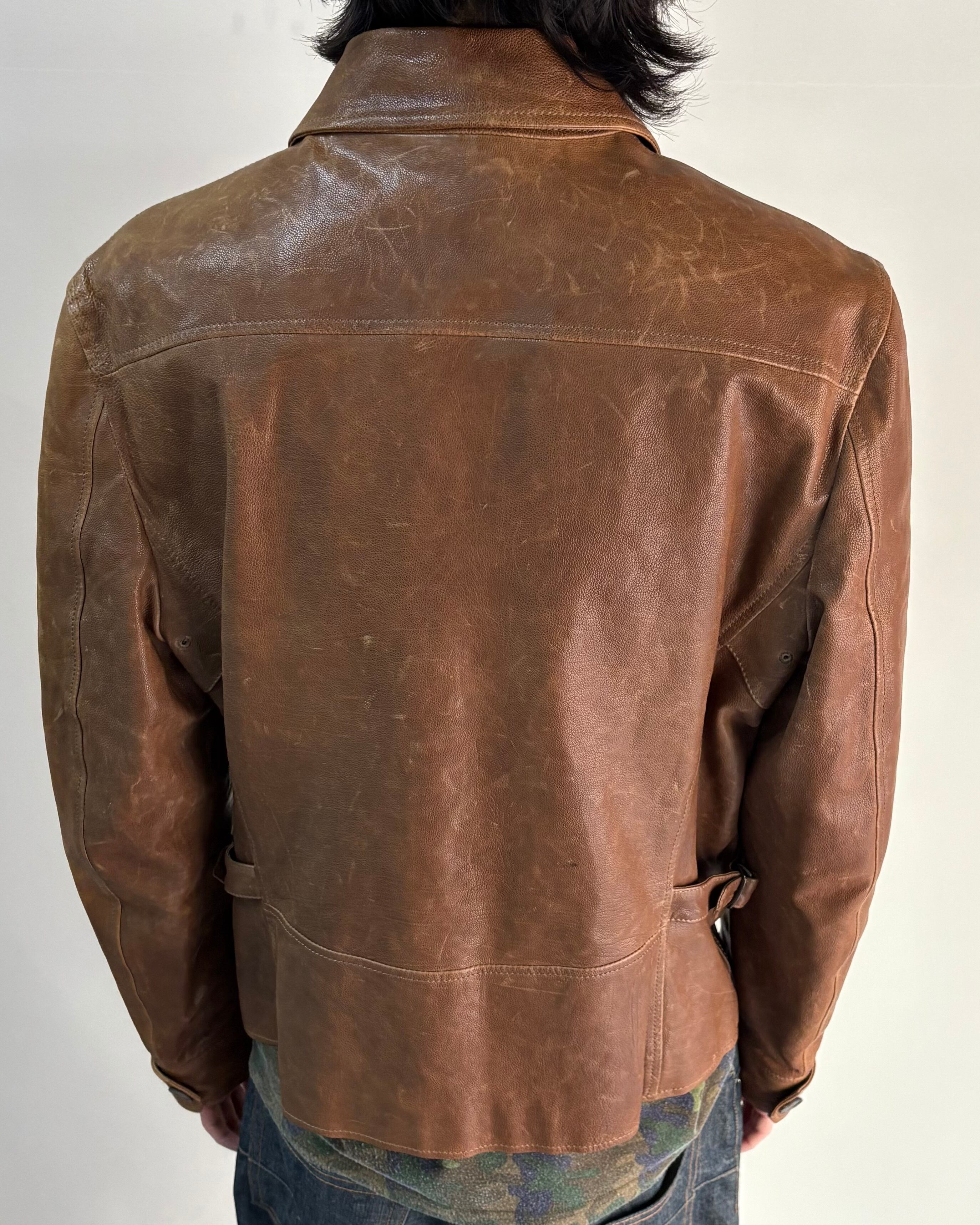 上質なレザー特有のシワ感と風合いが特徴の一着