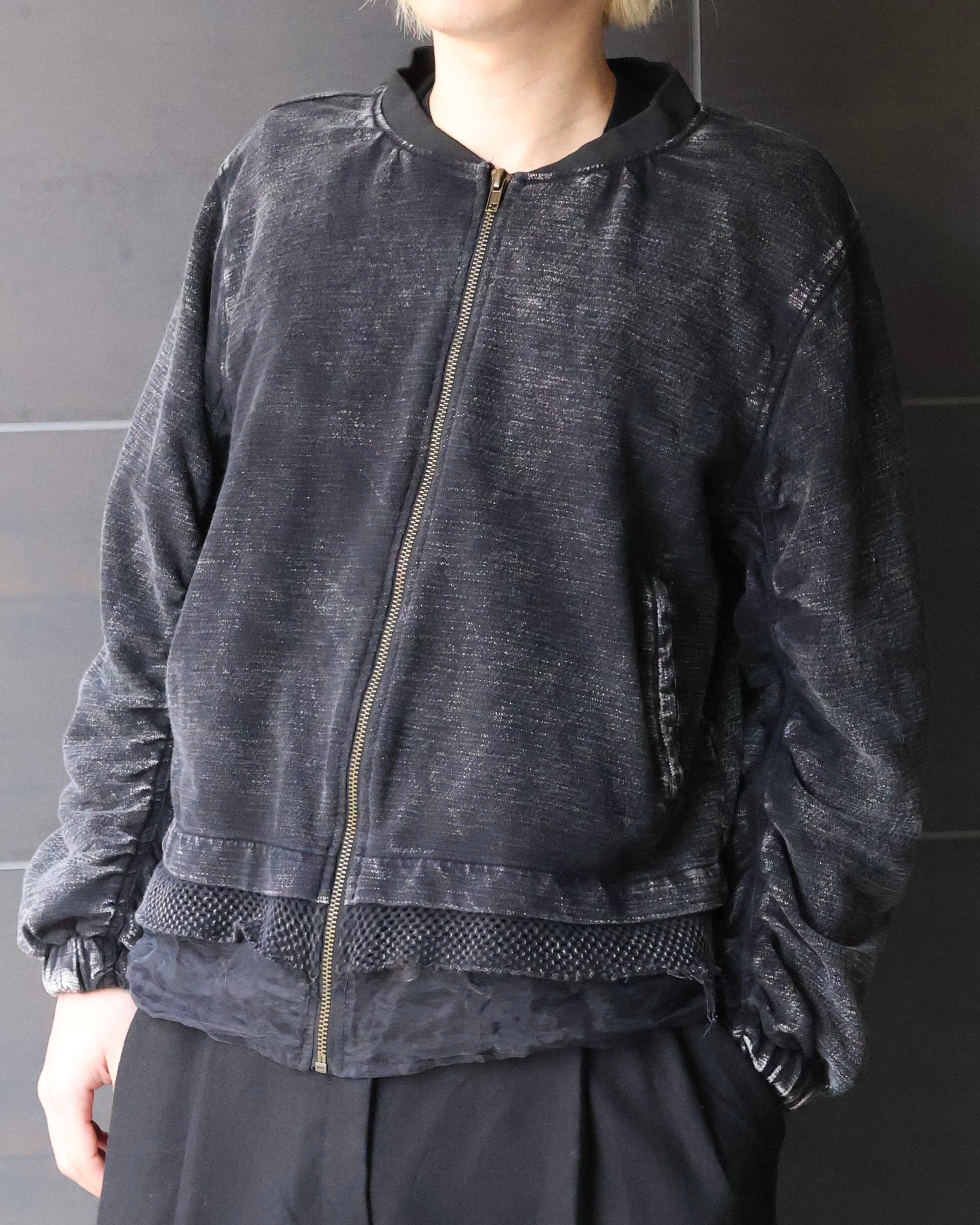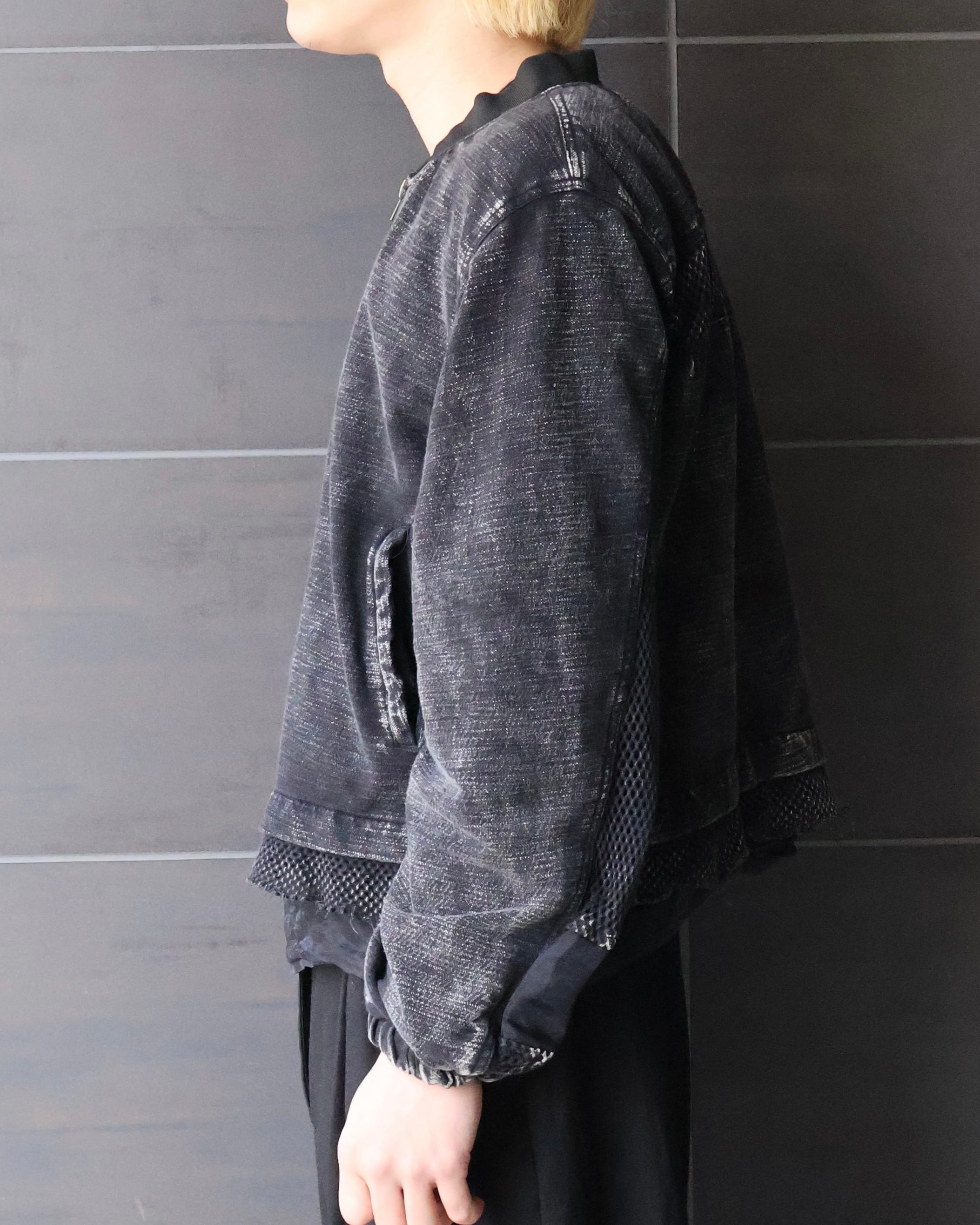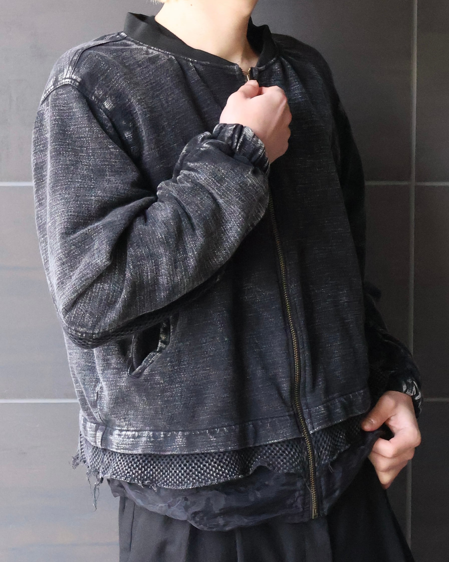 フェード感やメッシュのディテールがありながら裾にシアーの素材が採用された1着。アイテムの主張が強く、1枚で着ても様になるブルゾン。冬のコートやレザーのインナーとしても使いやすい。