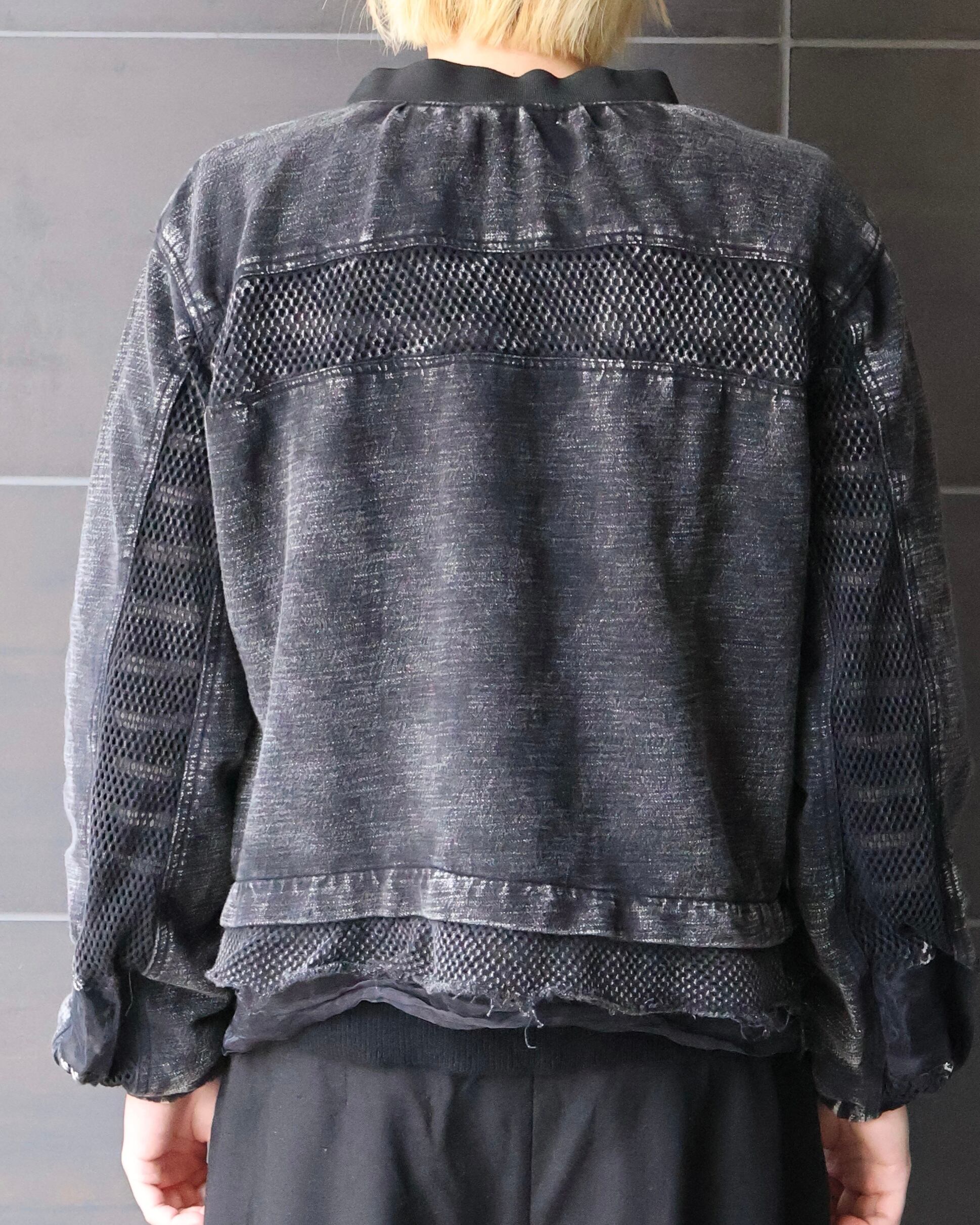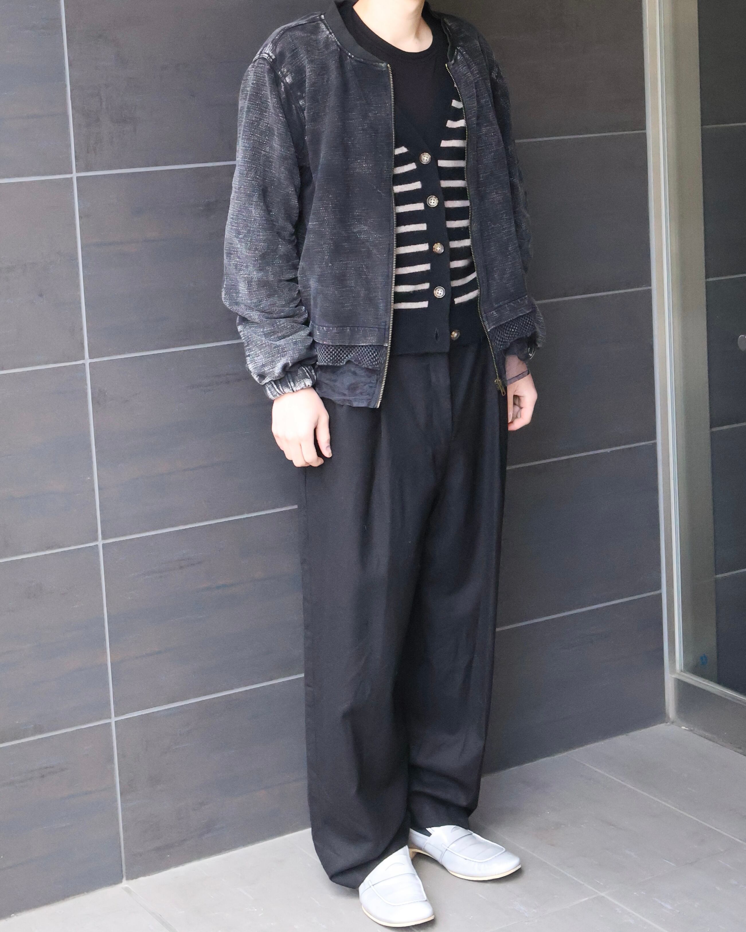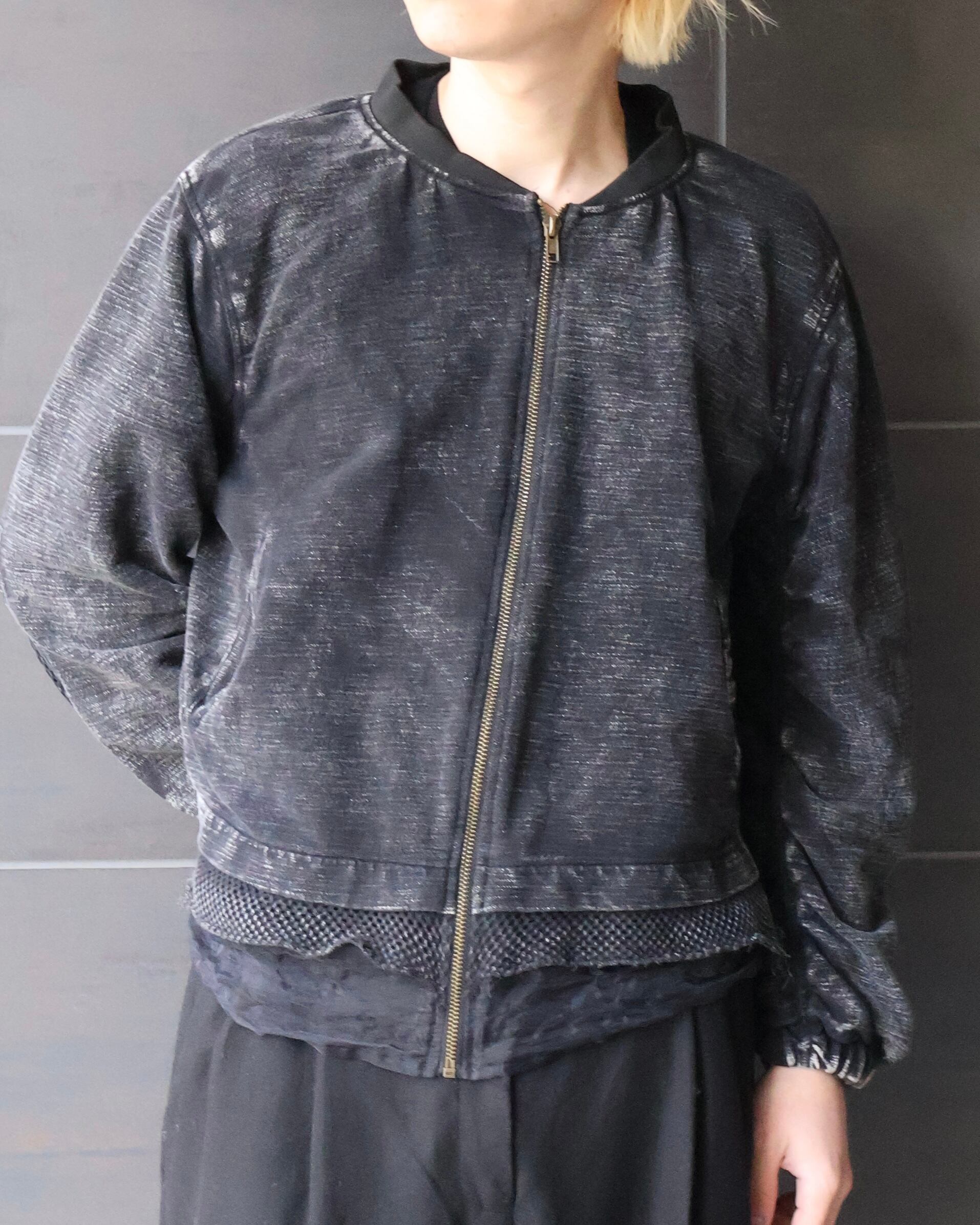 フェード感やメッシュのディテールがありながら裾にシアーの素材が採用された1着。アイテムの主張が強く、1枚で着ても様になるブルゾン。冬のコートやレザーのインナーとしても使いやすい。
