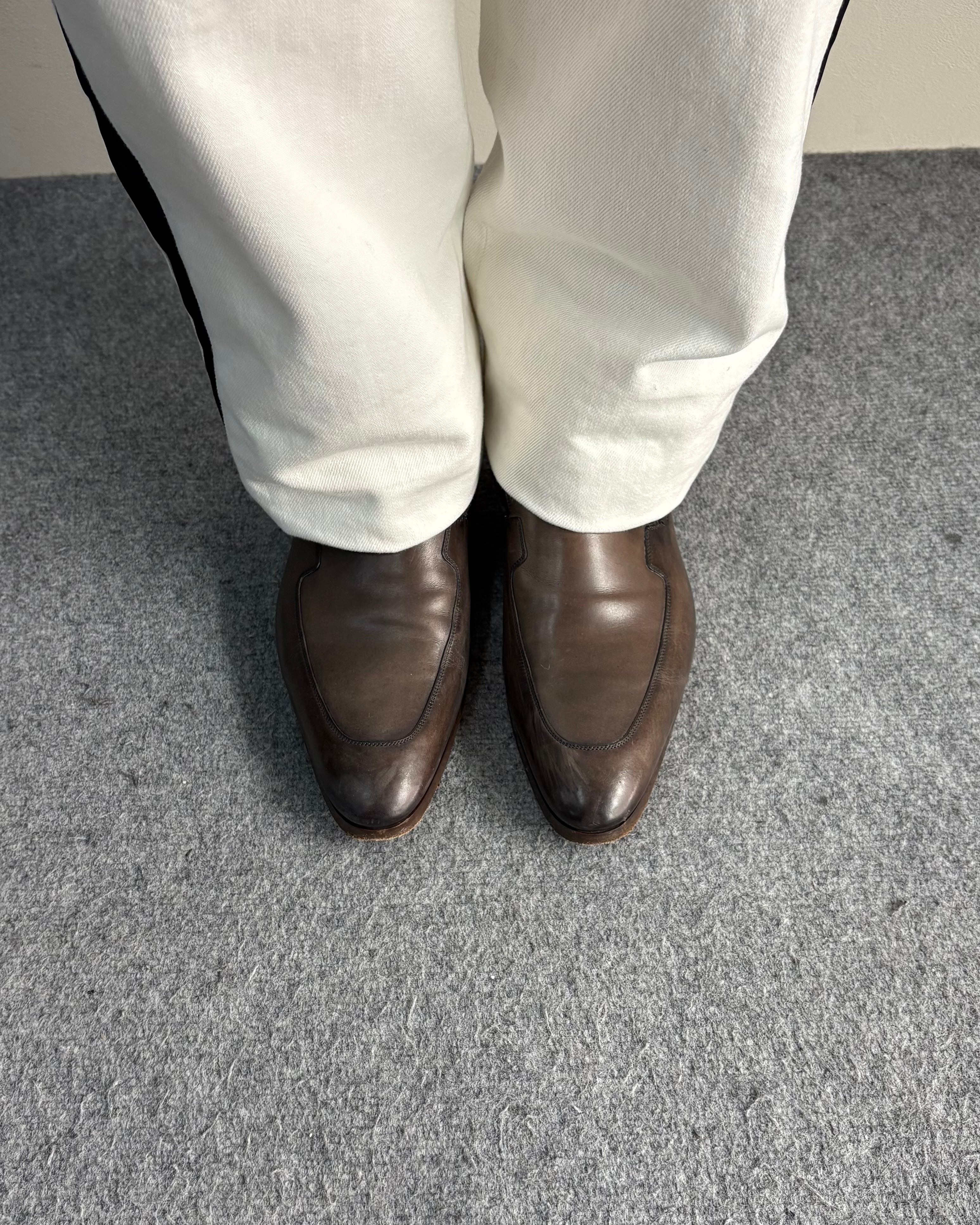 ミニマルなデザインながら、上質なレザーの質感が特徴の一足。無駄を削ぎ落としたプレーンデザインにより、クラシックでありながらモードな雰囲気のあるアイテム。ややシャープなトゥとすっきりとしたフォルムで、スラックスとの相性はもちろん、デニムなどカジュアルなスタイリングにも落とし込める一足。