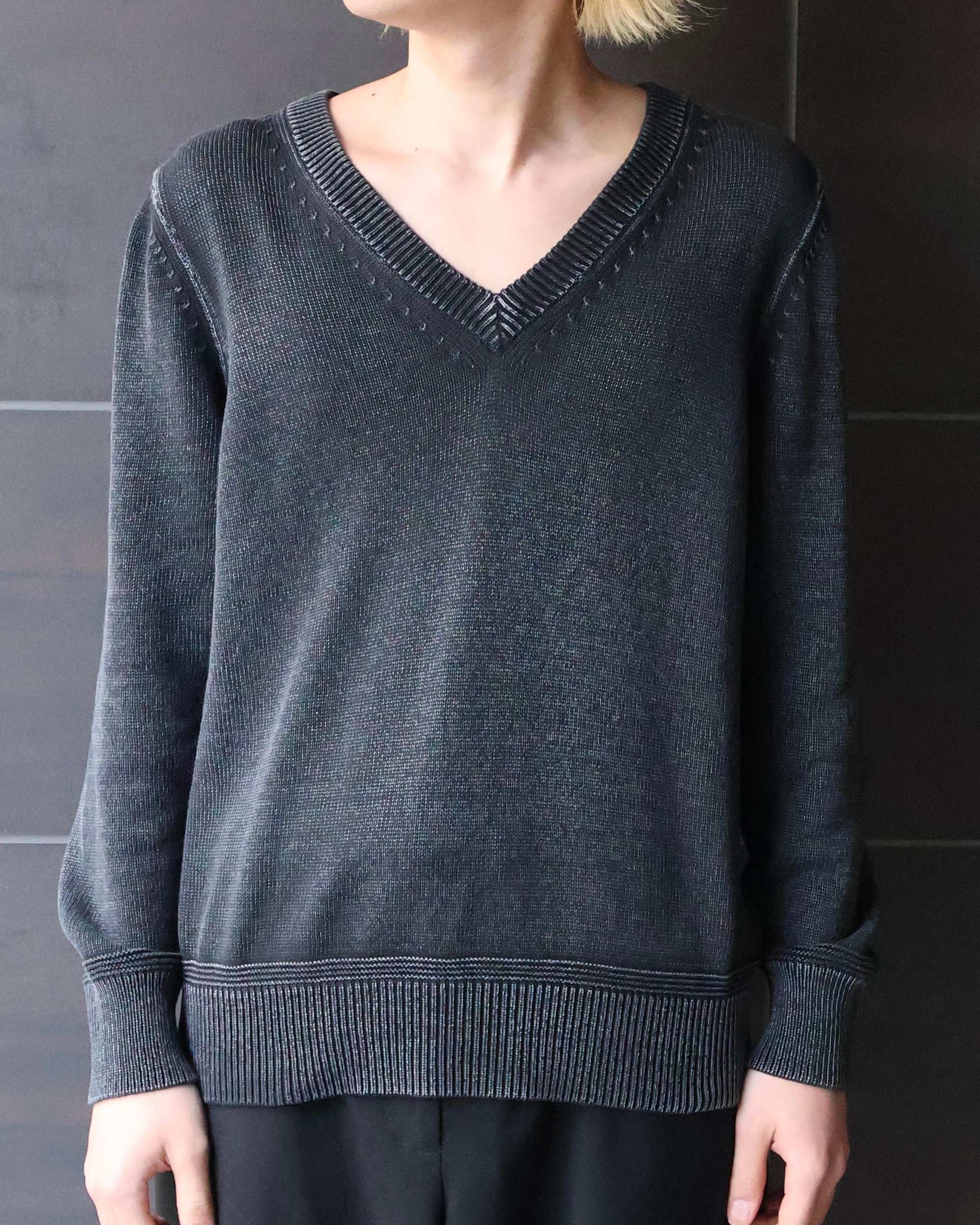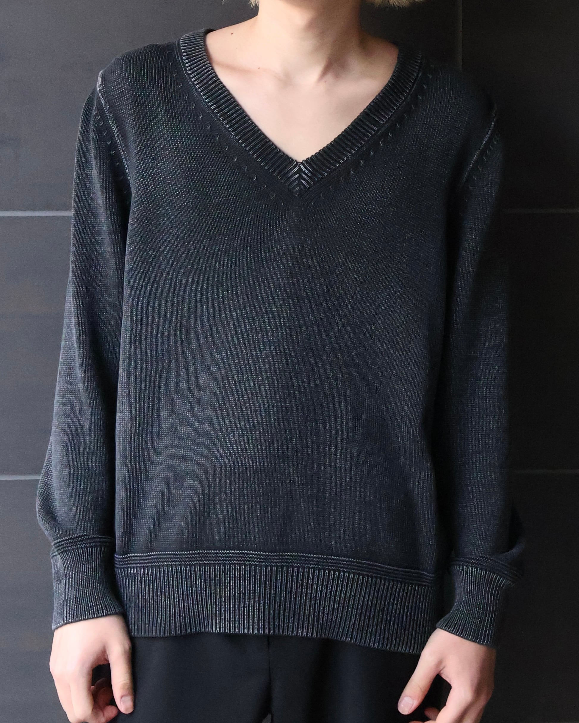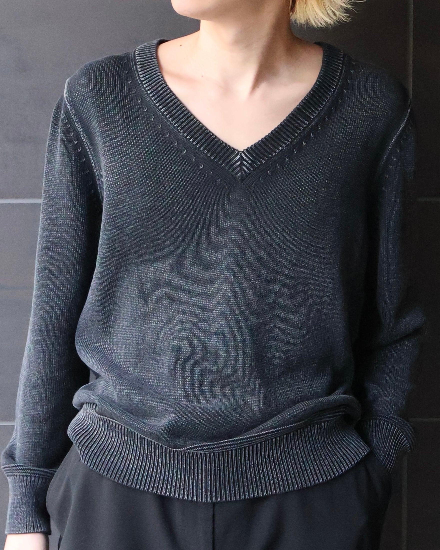 フェード感とサイズ感が美しいvネックニット。春に1枚で着て様になる面構えがgood。フェード感も強すぎず、インナー使いとしても万能。