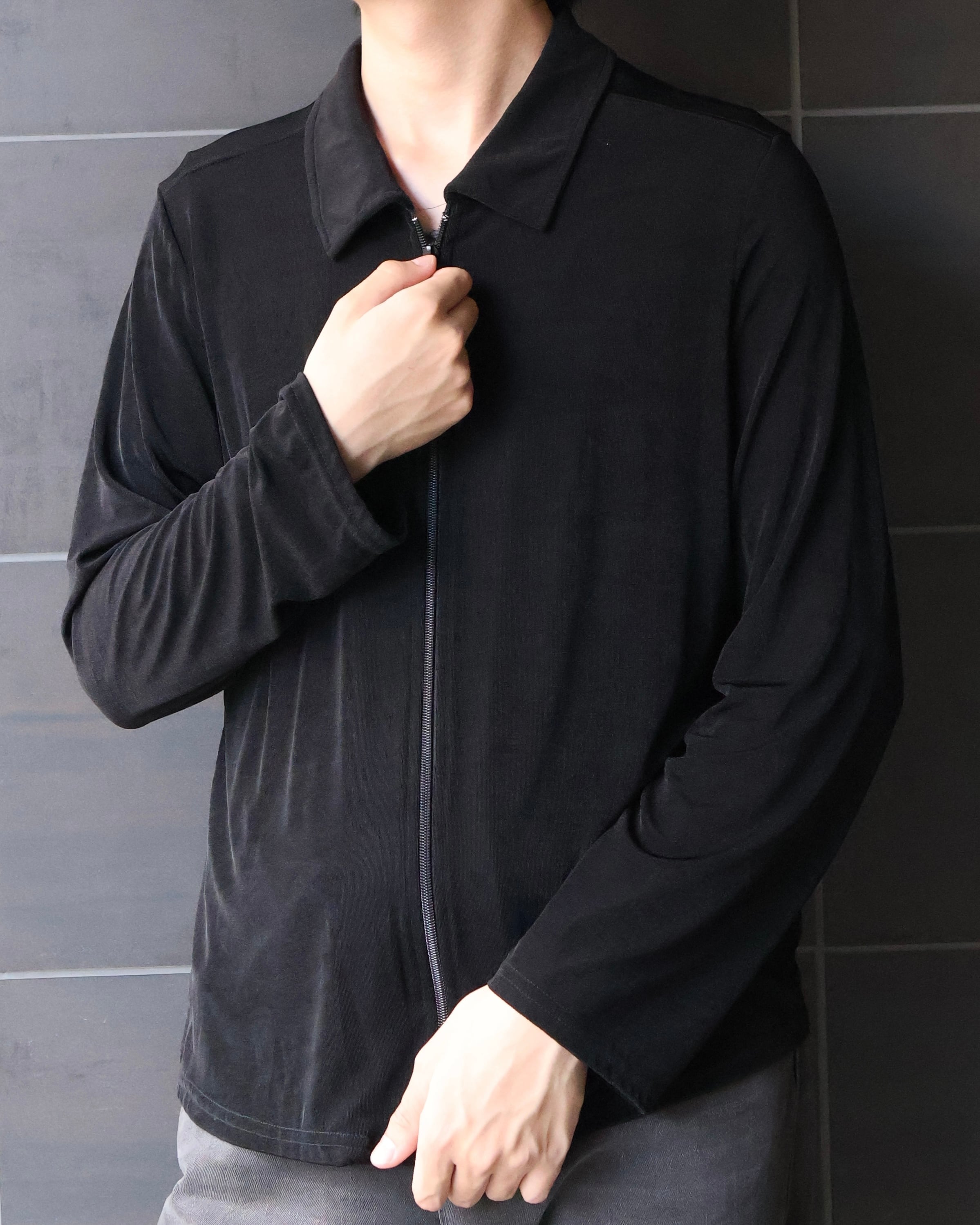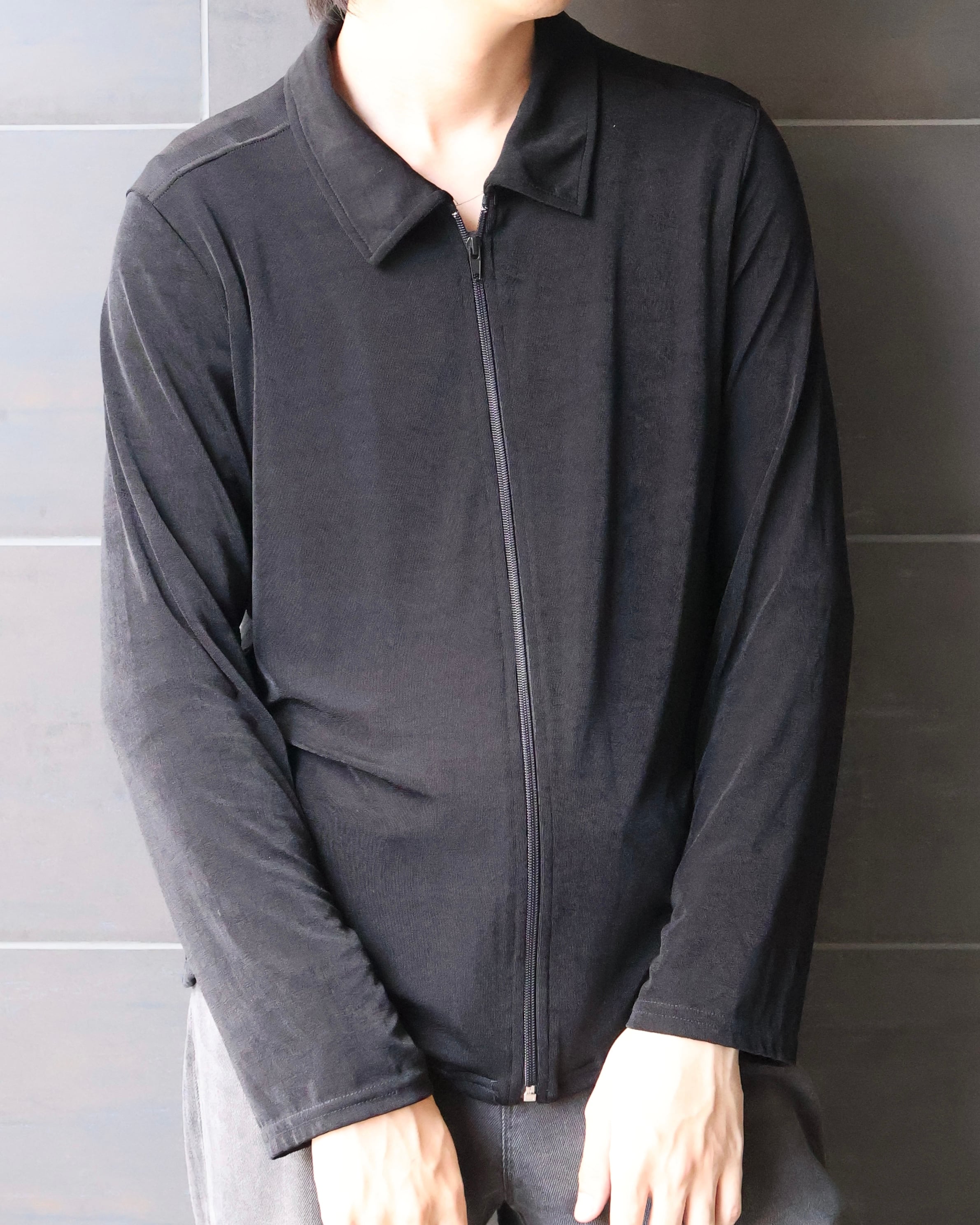 若干の光沢とドレープ感がモードな印象を与えてくれるジップアップシャツジャケット。一見ベーシックだが自分だけのこだわりを持って着用できる。いわずもがなスタイルを選ばない万能な1着。