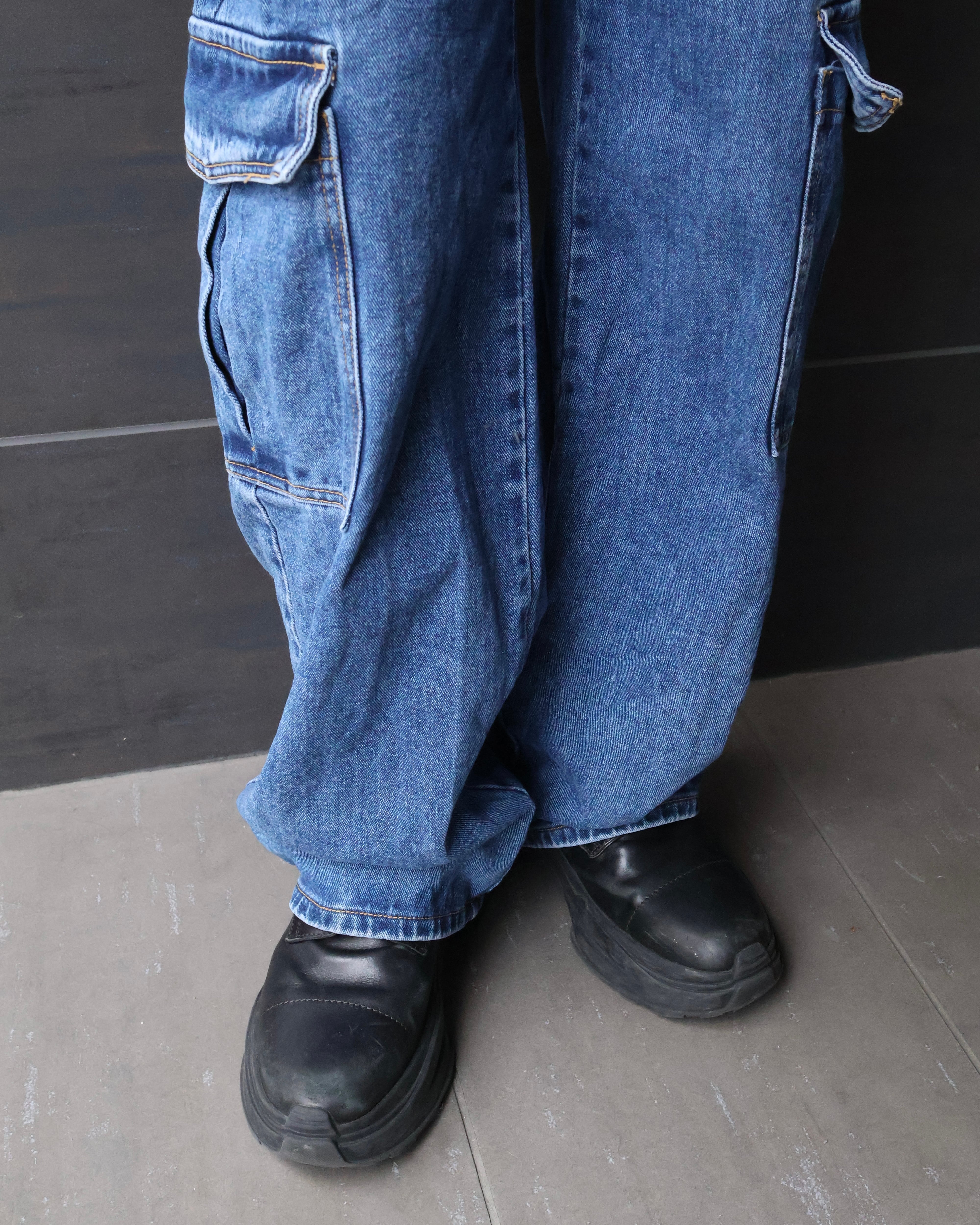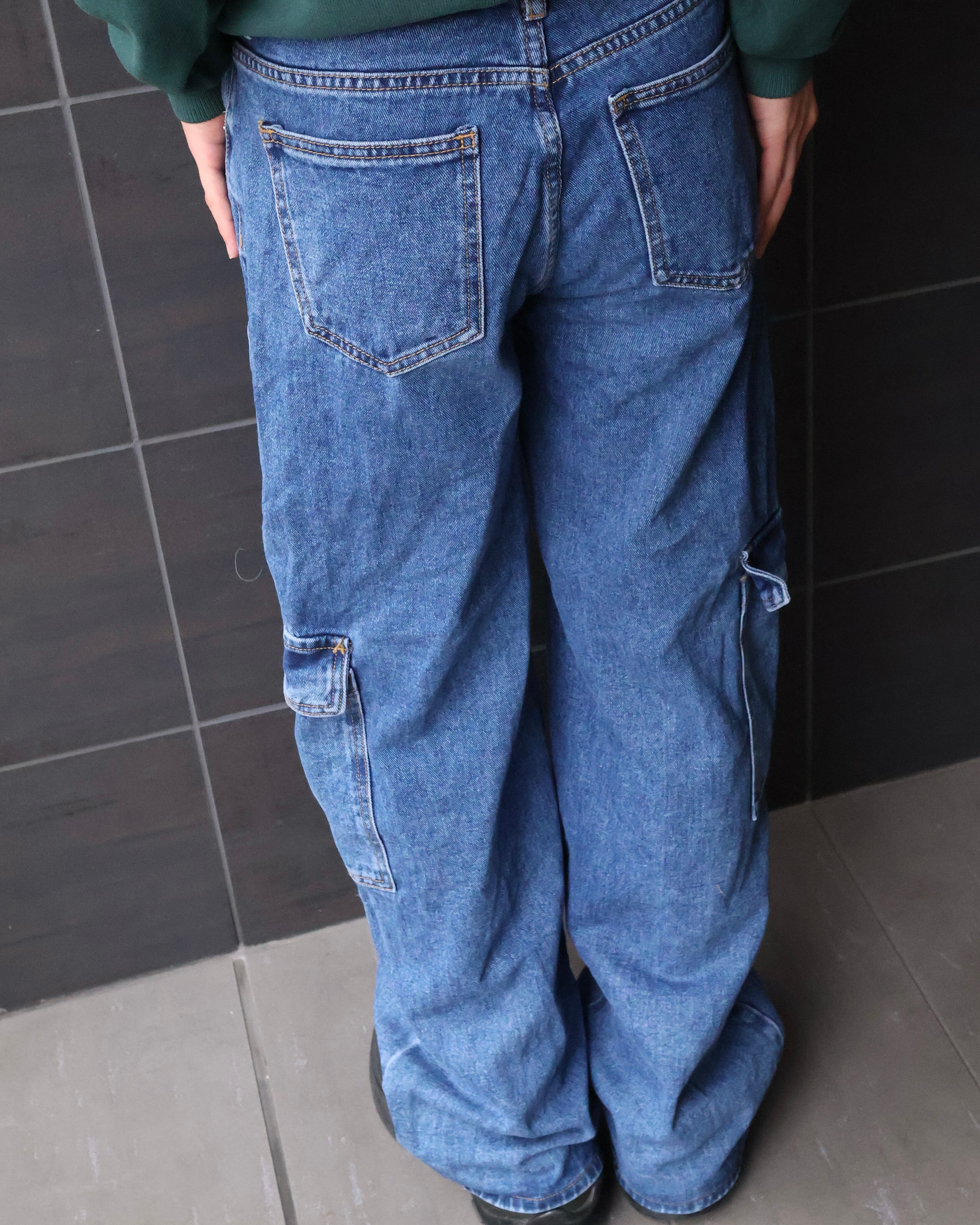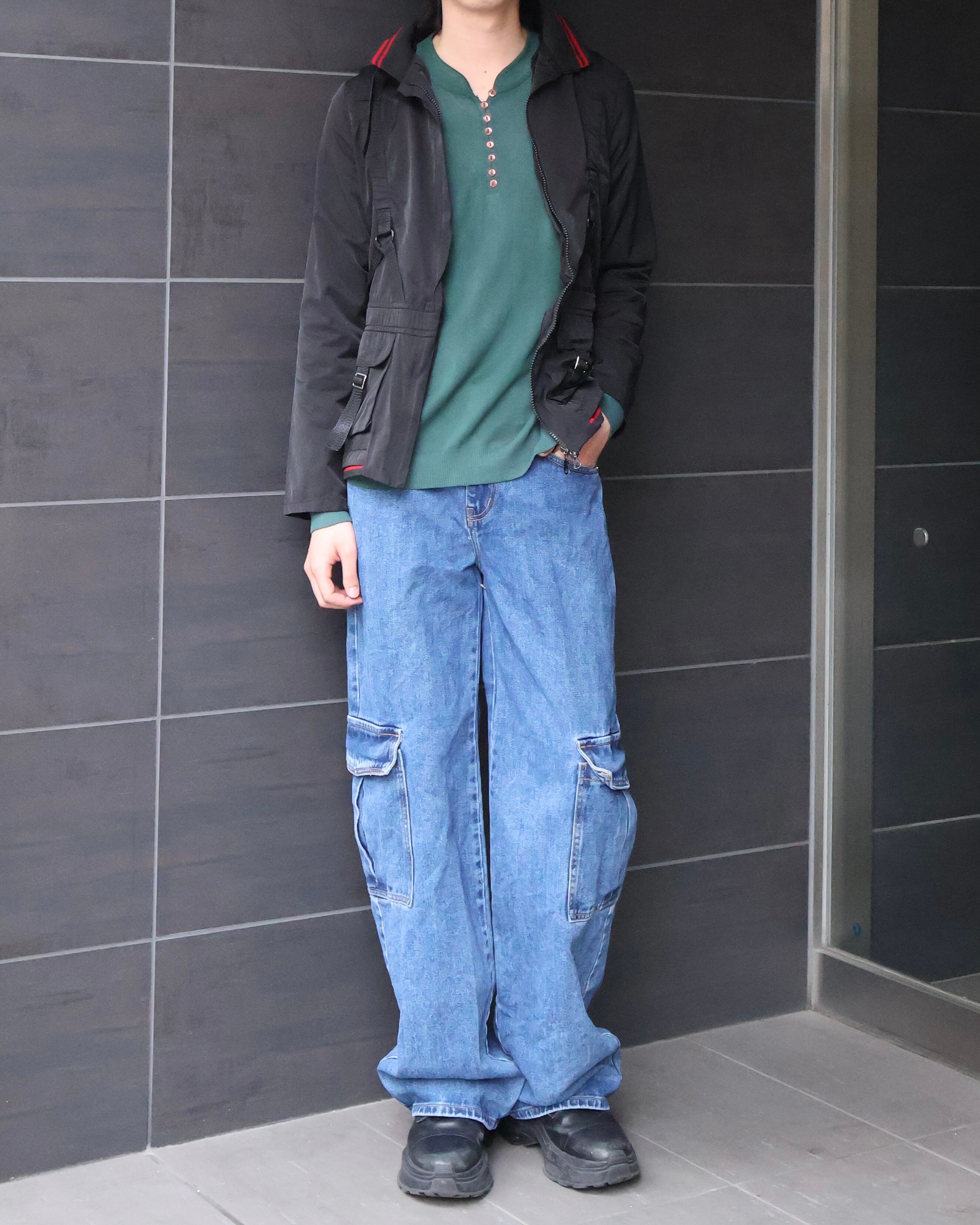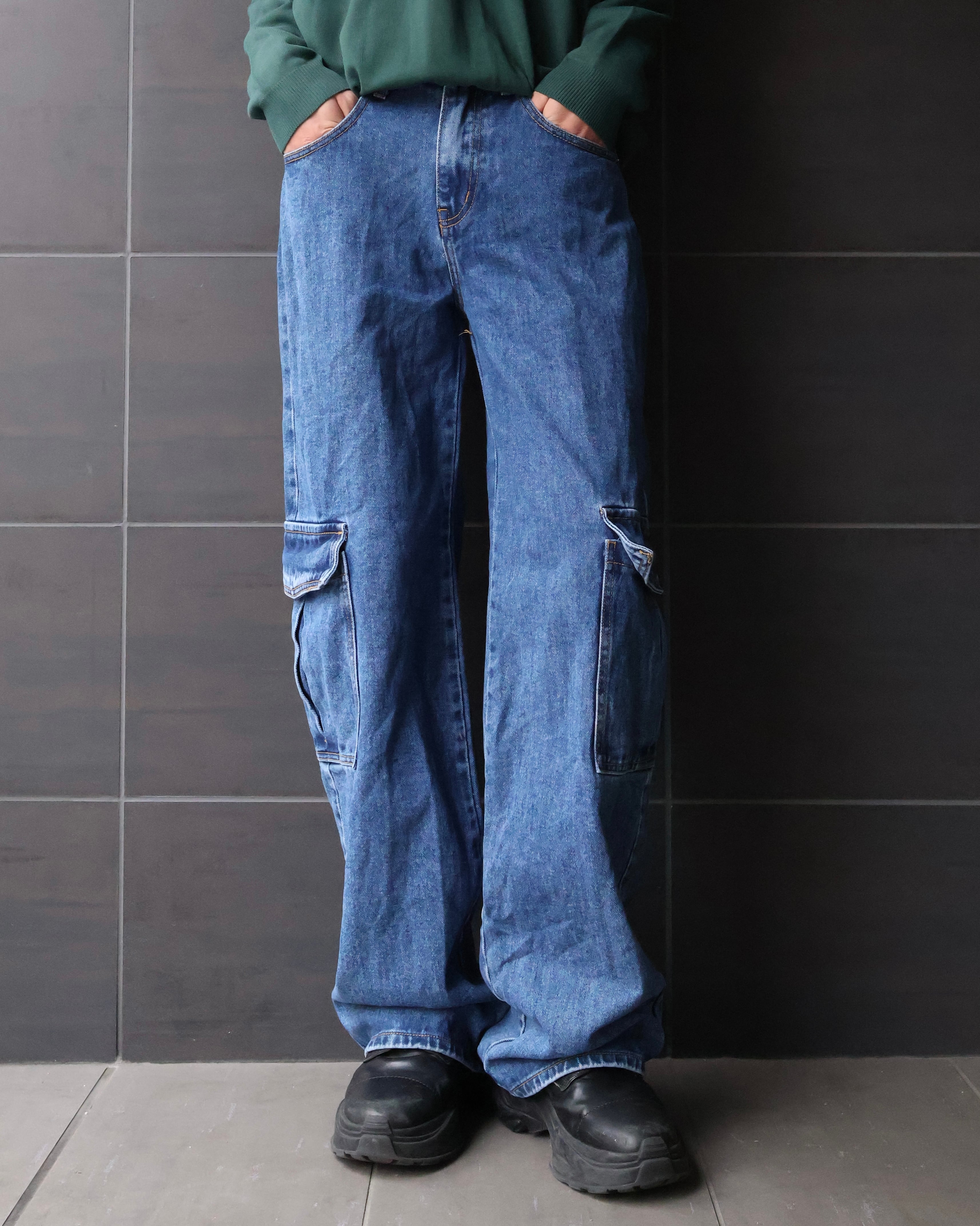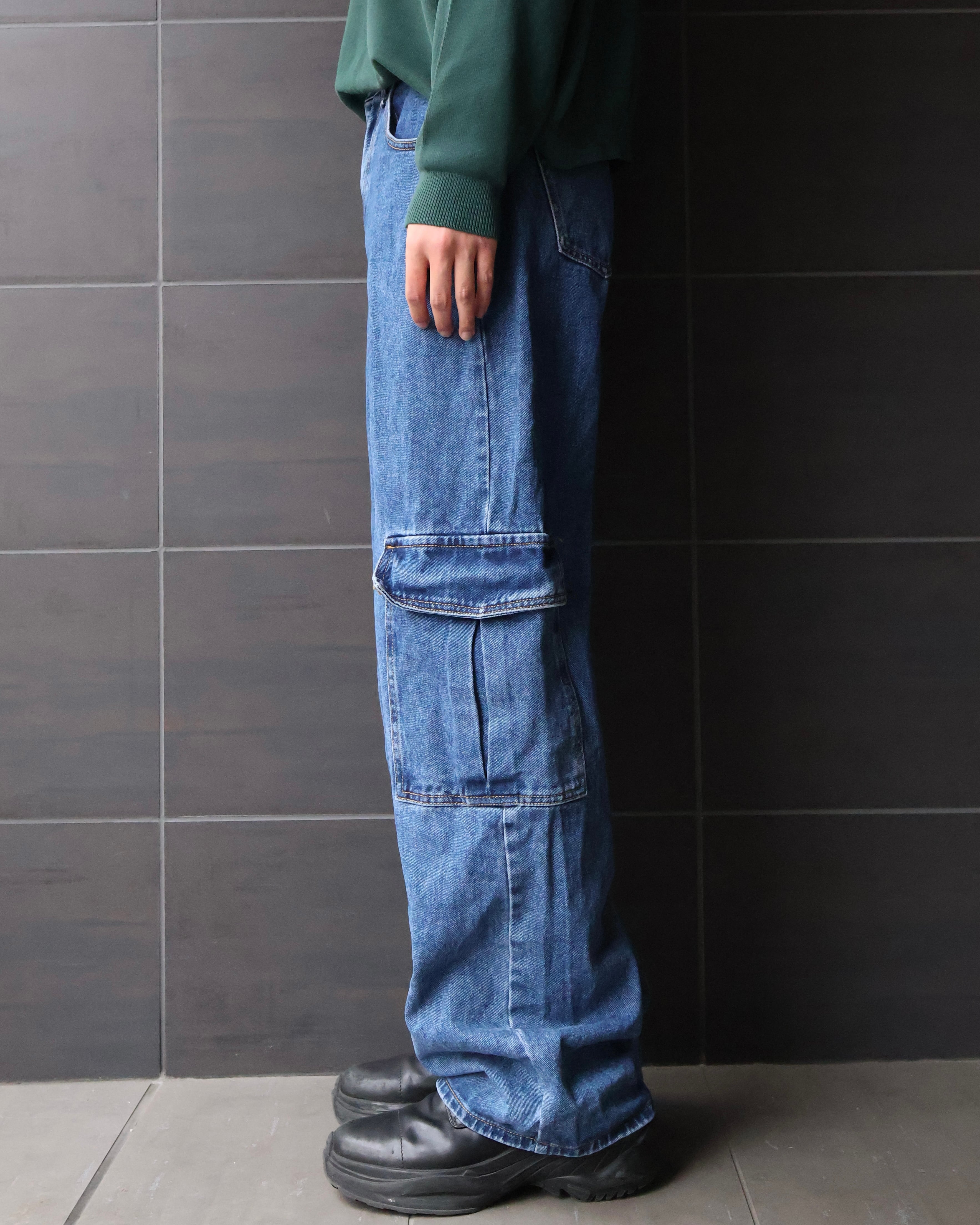 綺麗なシルエットのカーゴディテールデニムパンツ。カーゴのイメージとは裏腹に、シルエットの綺麗さも相まってクリーンにも着用できるデニムパンツ。色も朴訥としており、シンプルなコーデに馴染むような素朴な佇まいが魅力。ウエストのサイズ感もスッキリめで、野暮ったくならないデニムをお探しの方におすすめ。