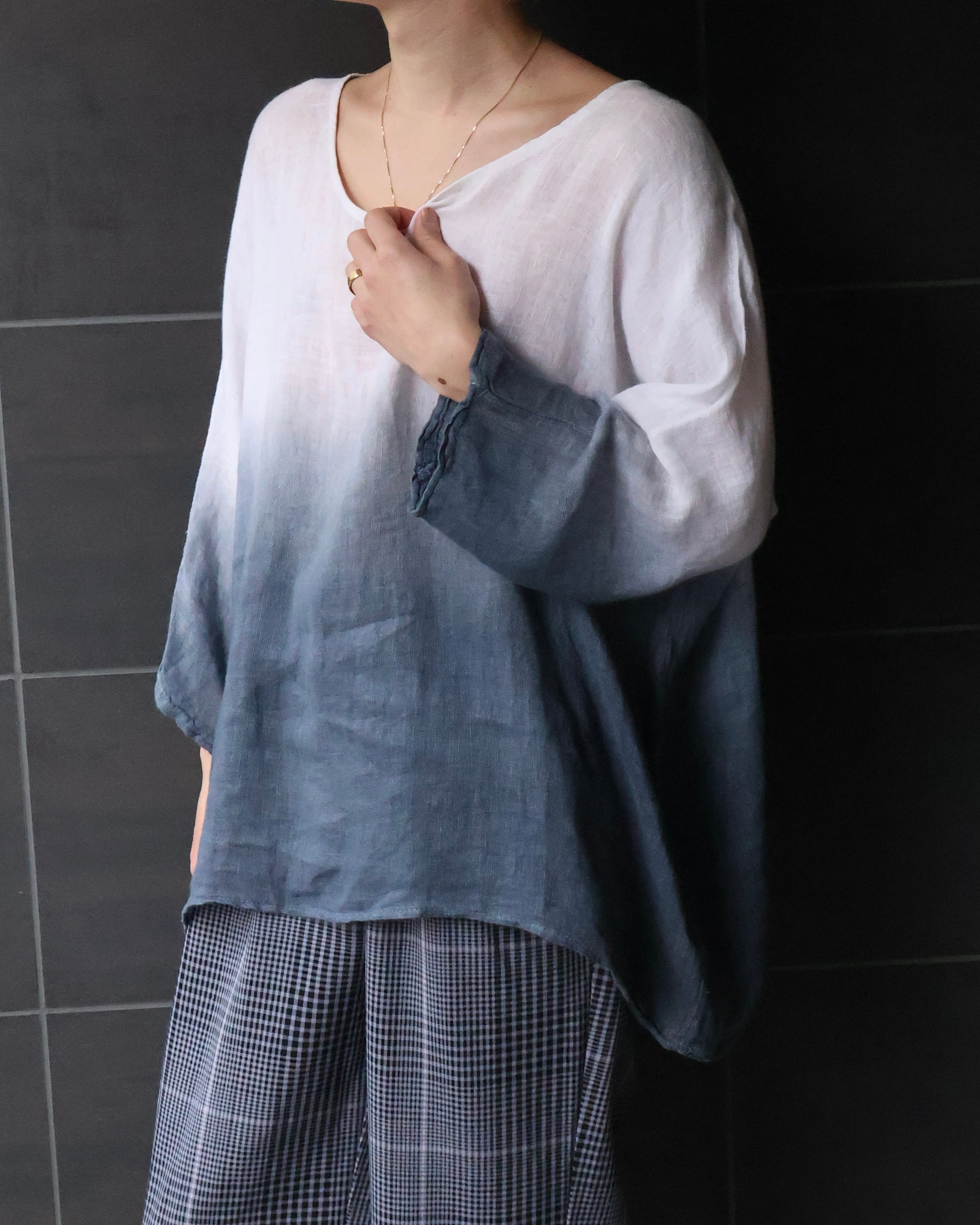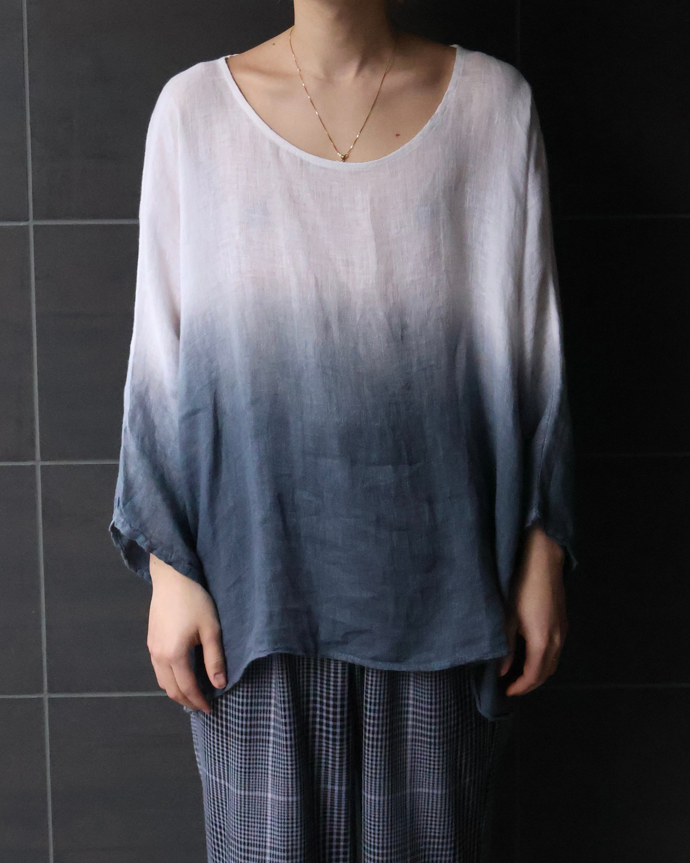 グラデーション、素材、シルエット全てgoodなリネントップス。インナーとしても、シャツの上からレイヤードとしても活躍する1着。