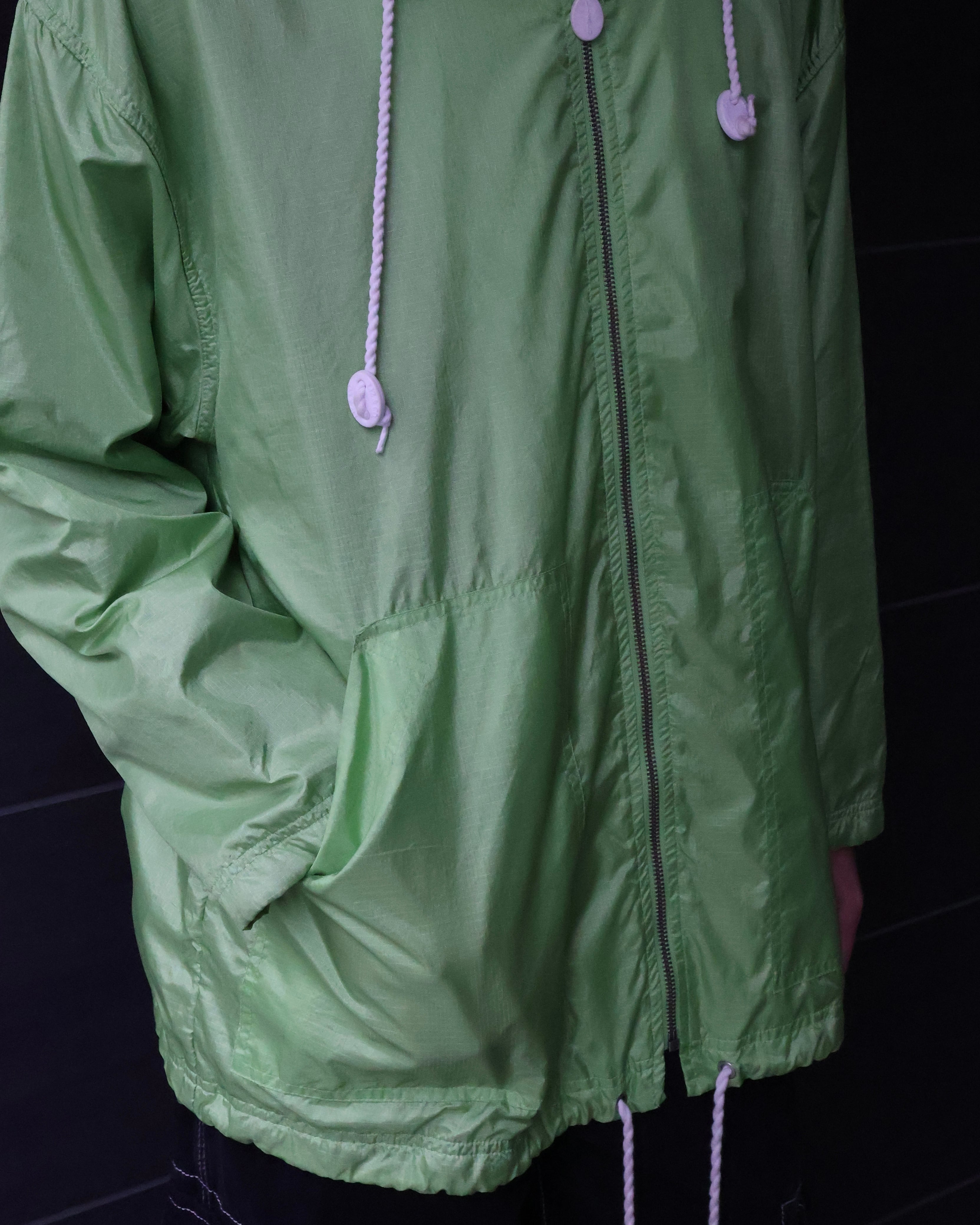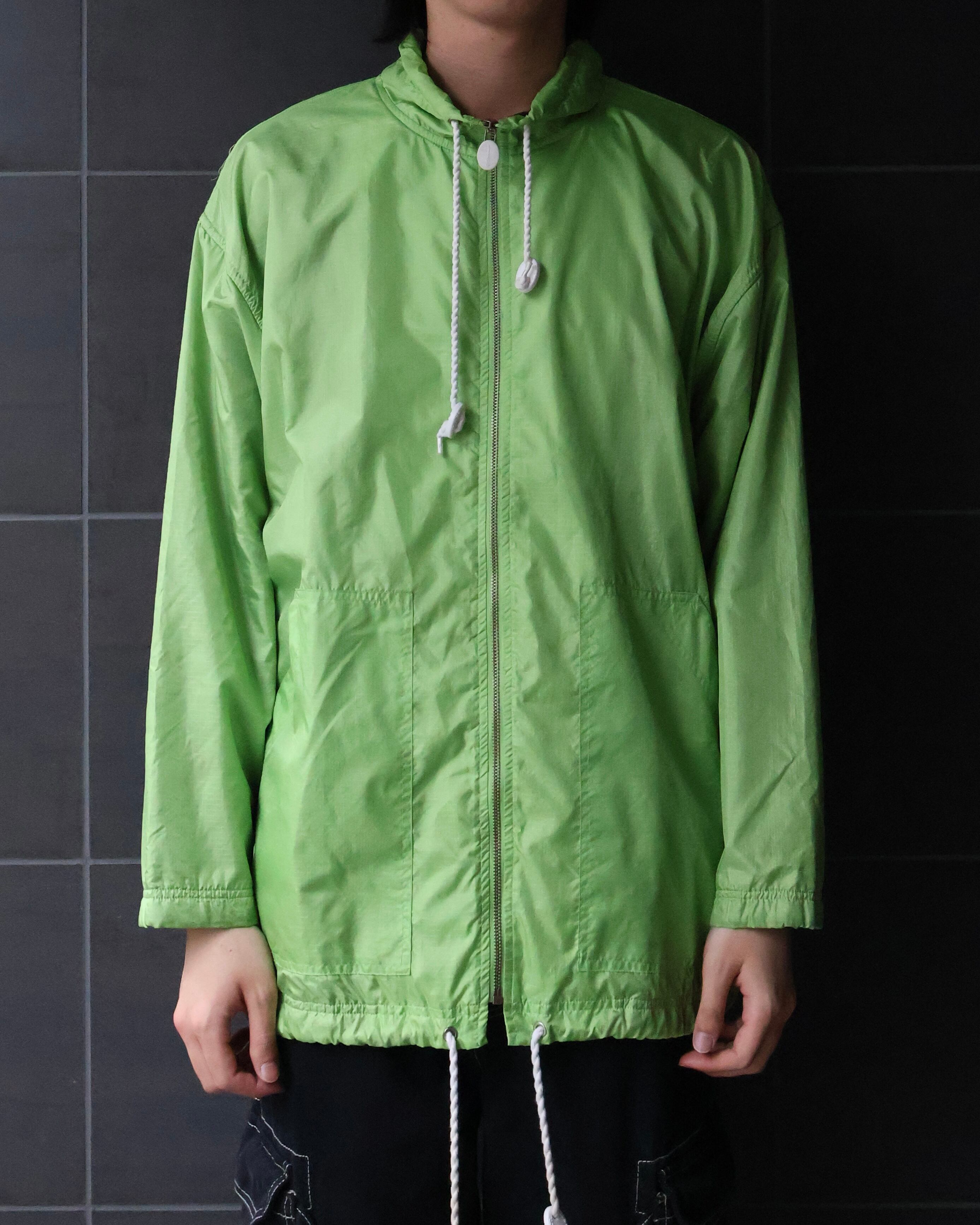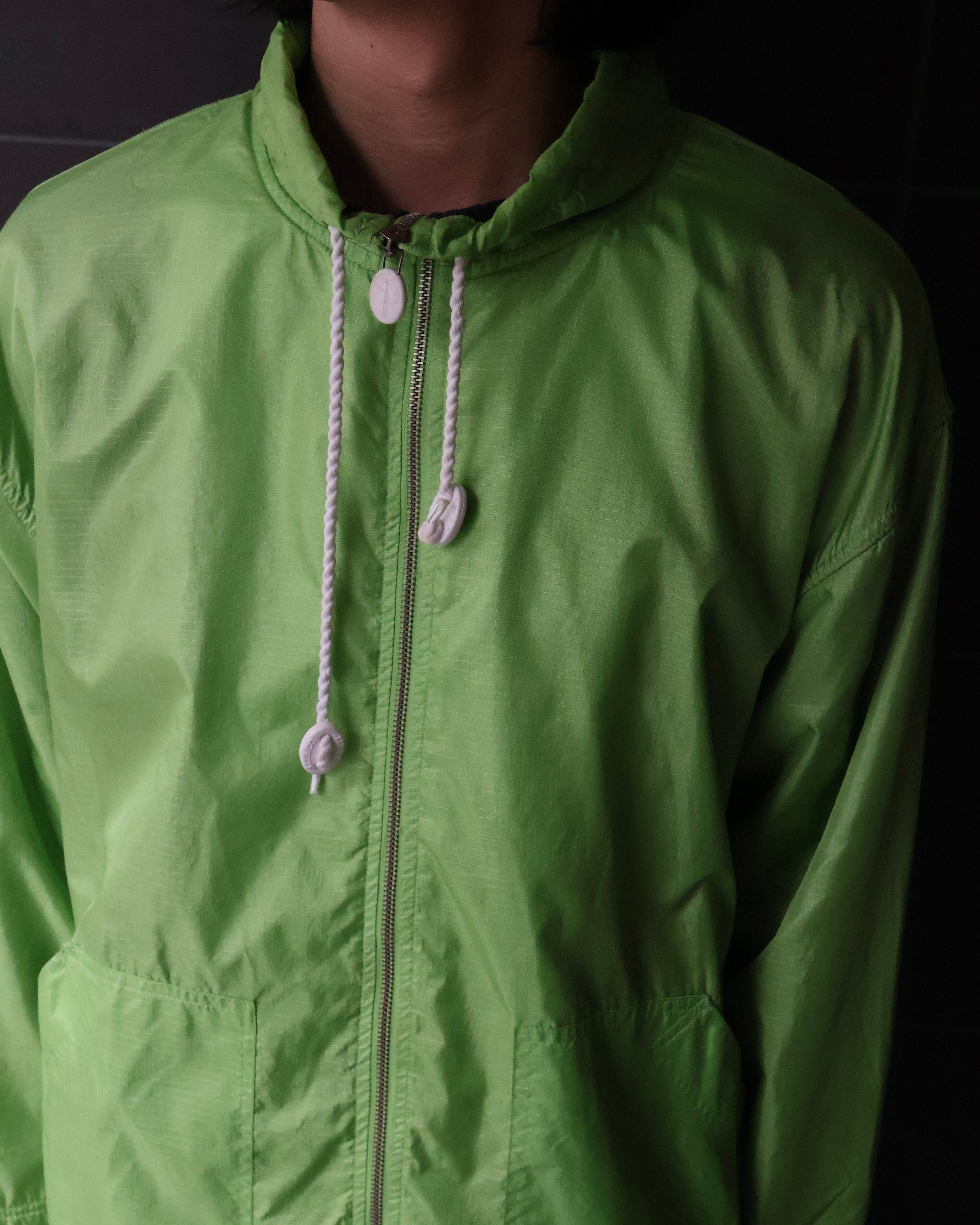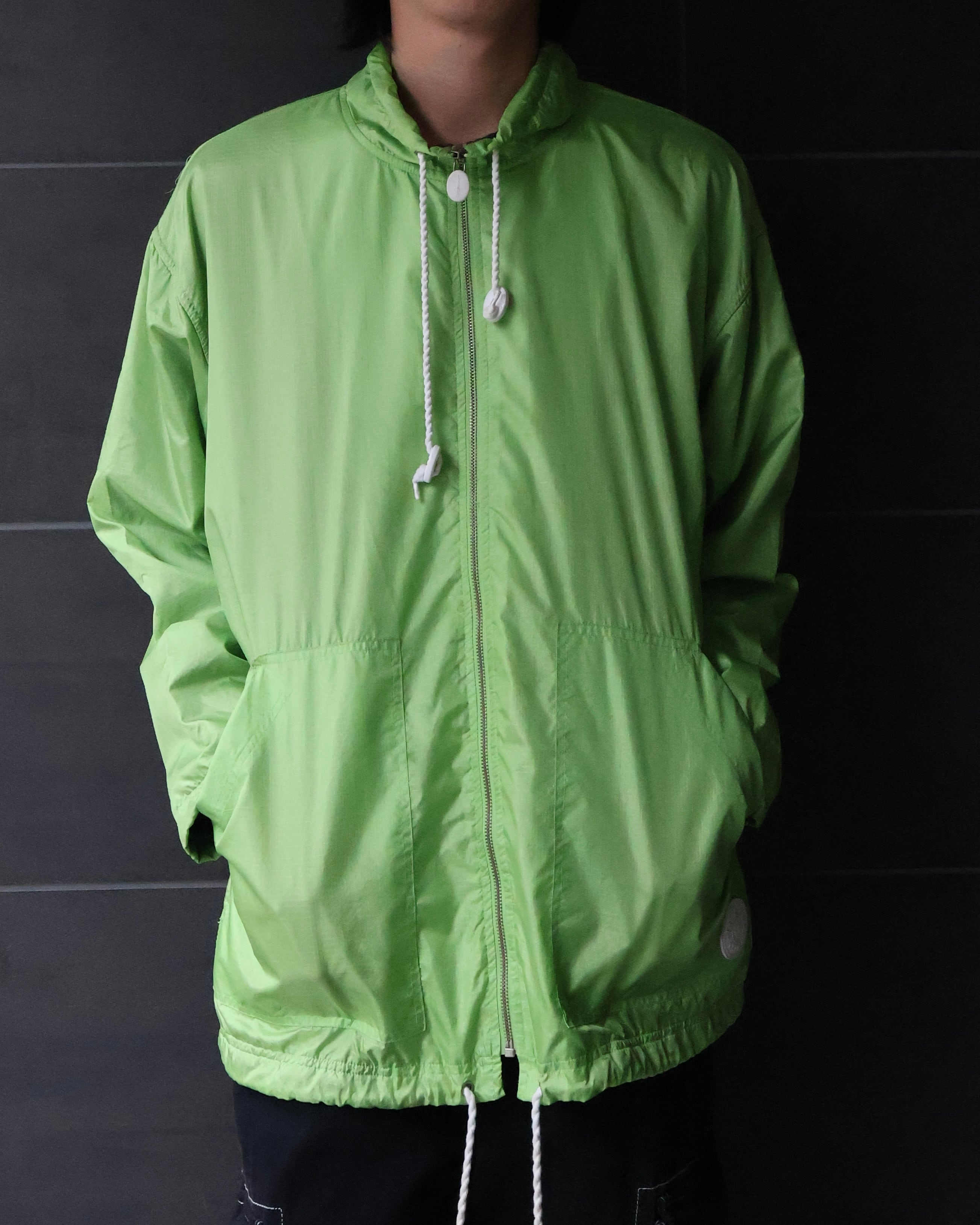 明るいグリーンが印象的なナイロンジャケット。落ち着いた色味のパンツやクリーンなパンツとの相性がgoodな1着。