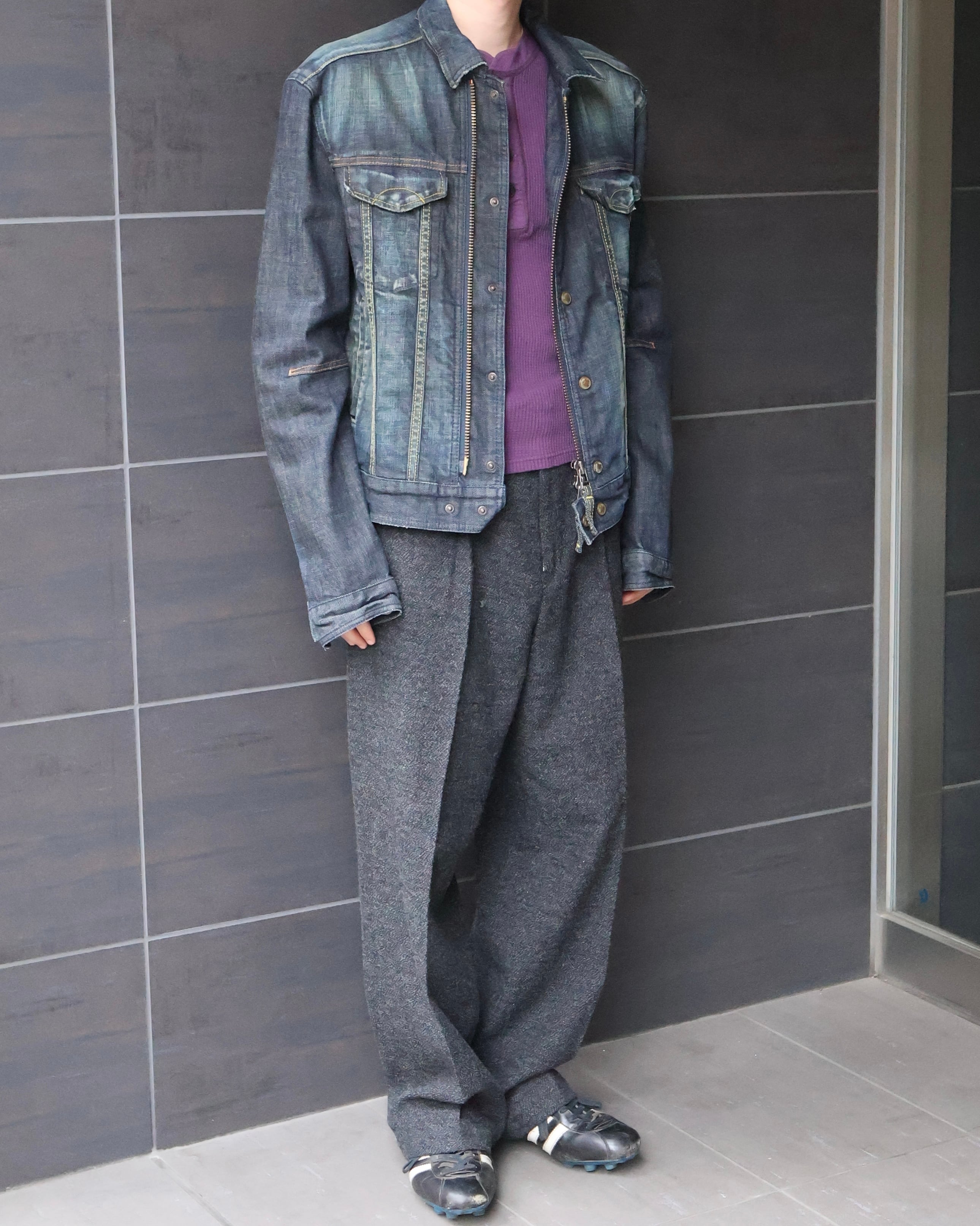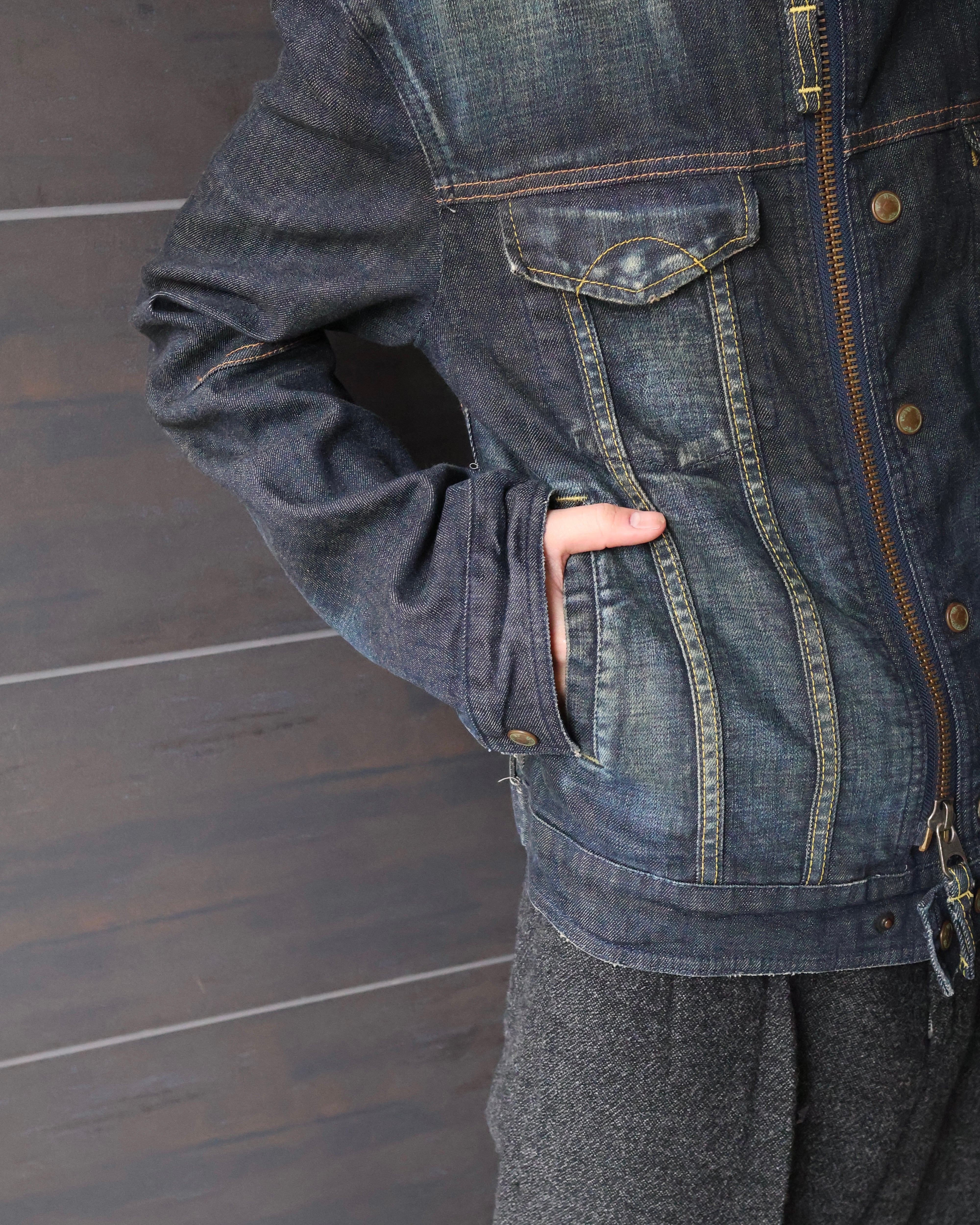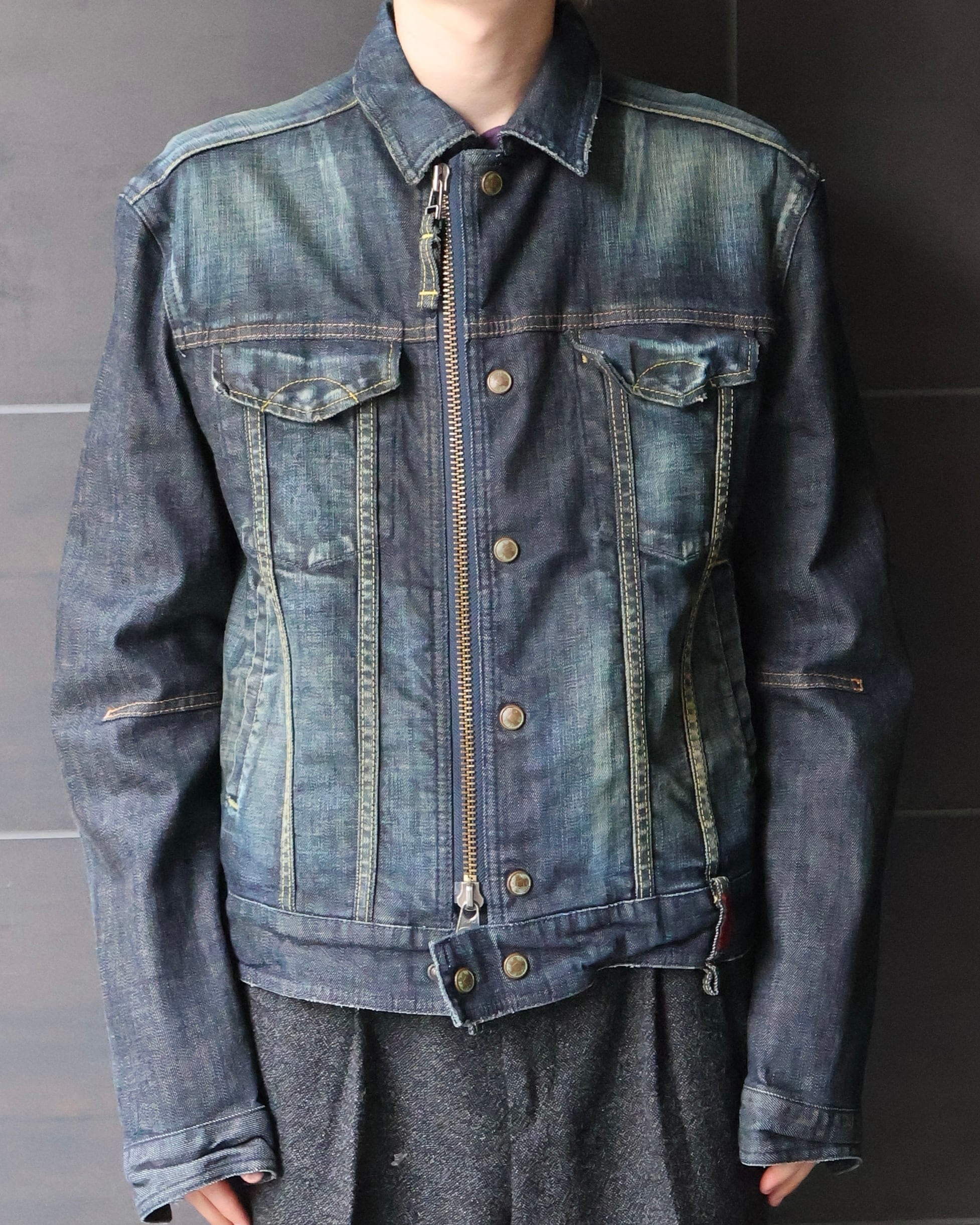 フェード加工が良い味を出しているダブルジップとスナップの2way仕様のデニムジャケット