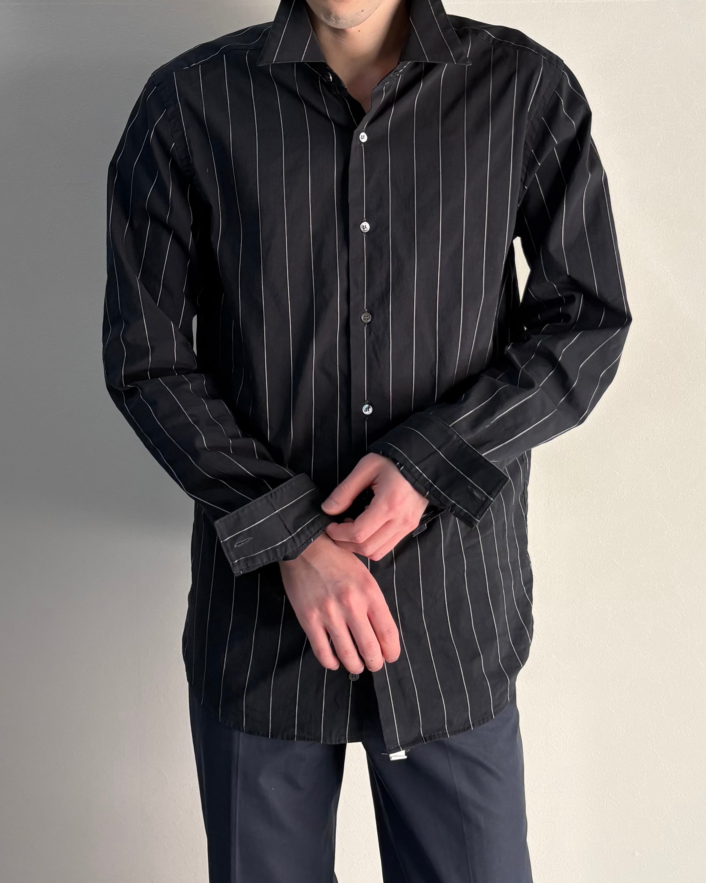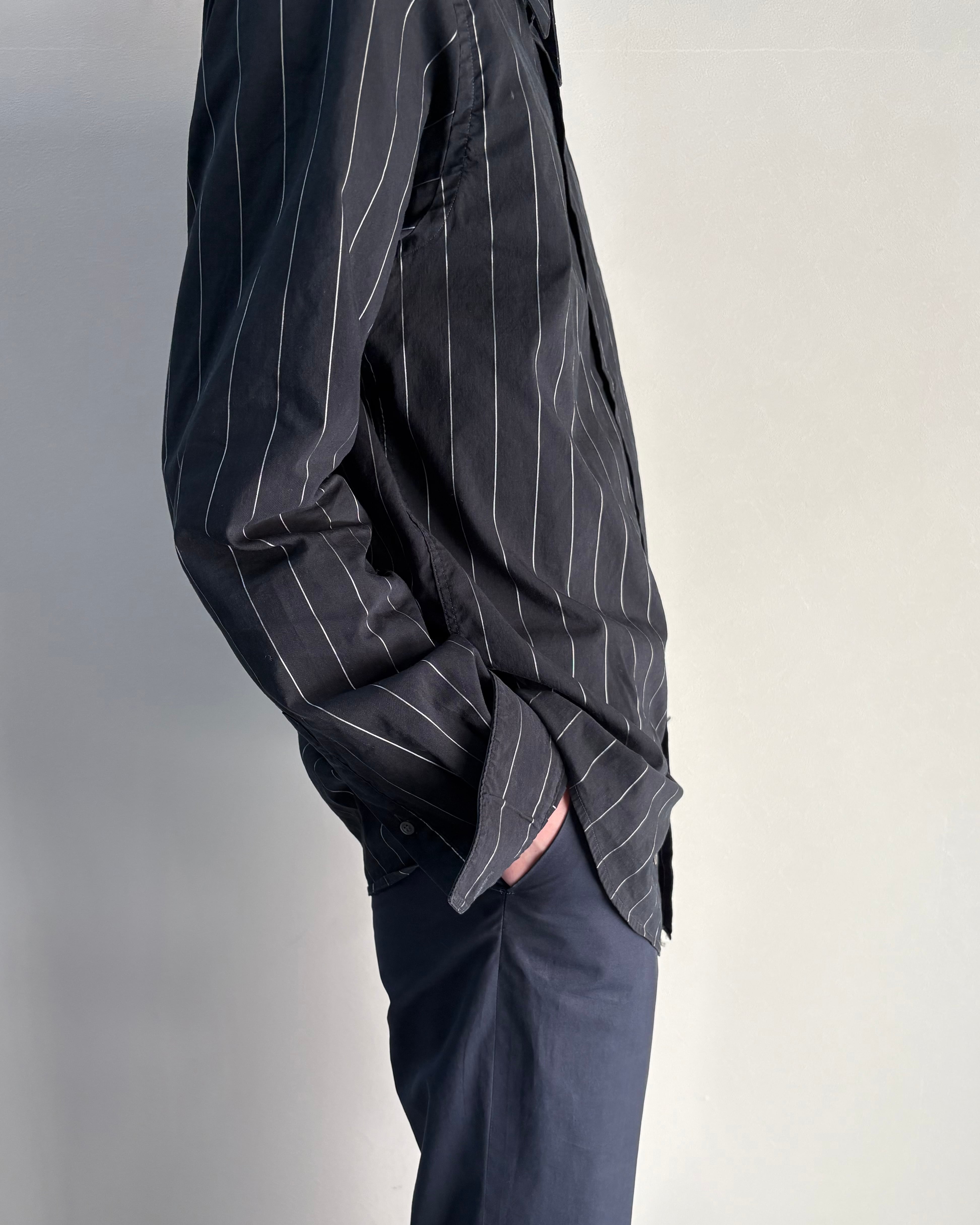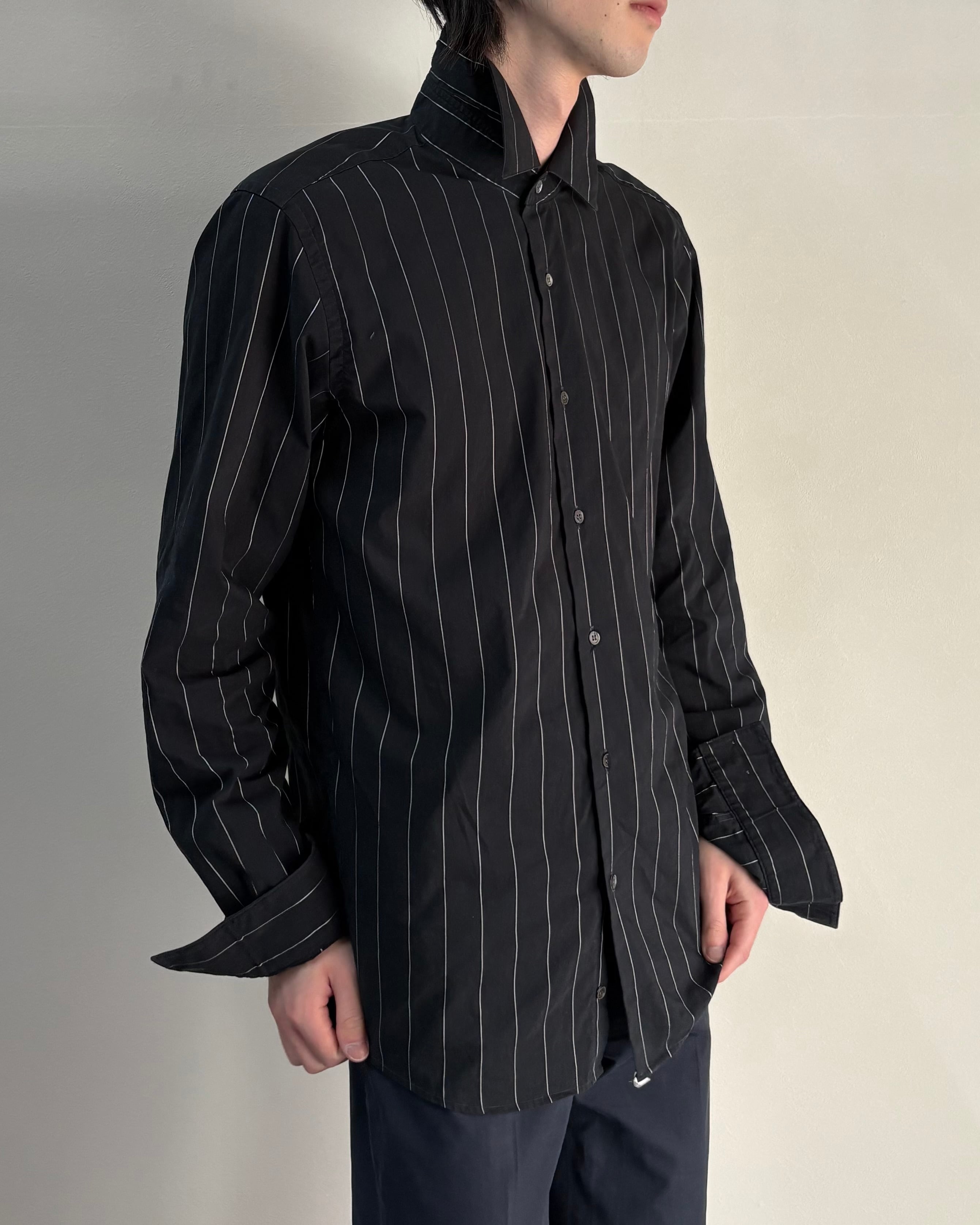 形や色柄はベーシックながらも、光沢感のあるストライプがDiorらしい雰囲気を醸し出してくれている1着。シャツを1枚で羽織った際の物足りなさを光沢のあるストライプが解消してくれる。インナーとしても1枚としても優秀なシャツ。