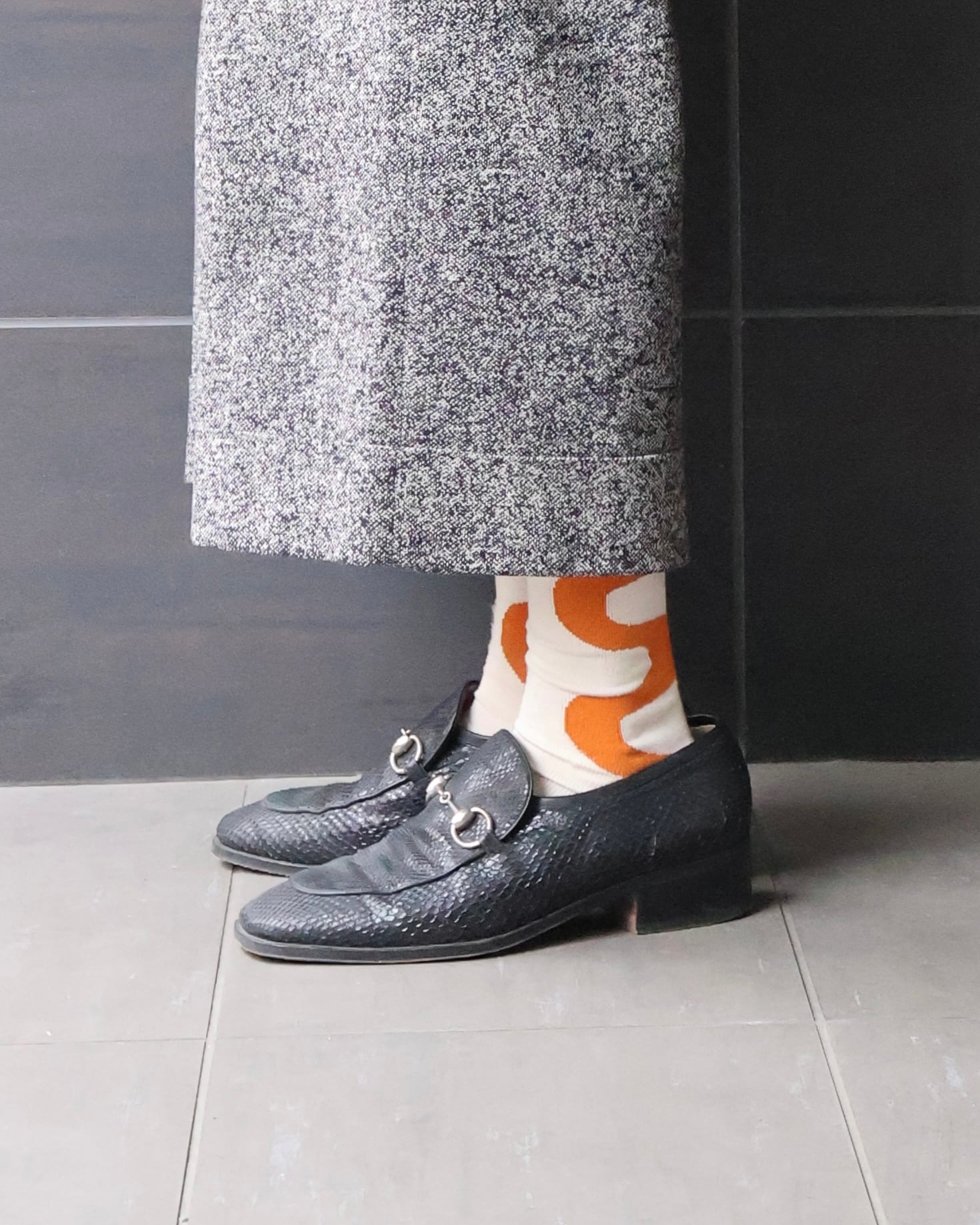GUCCIのパイソン柄ホースビットローファー