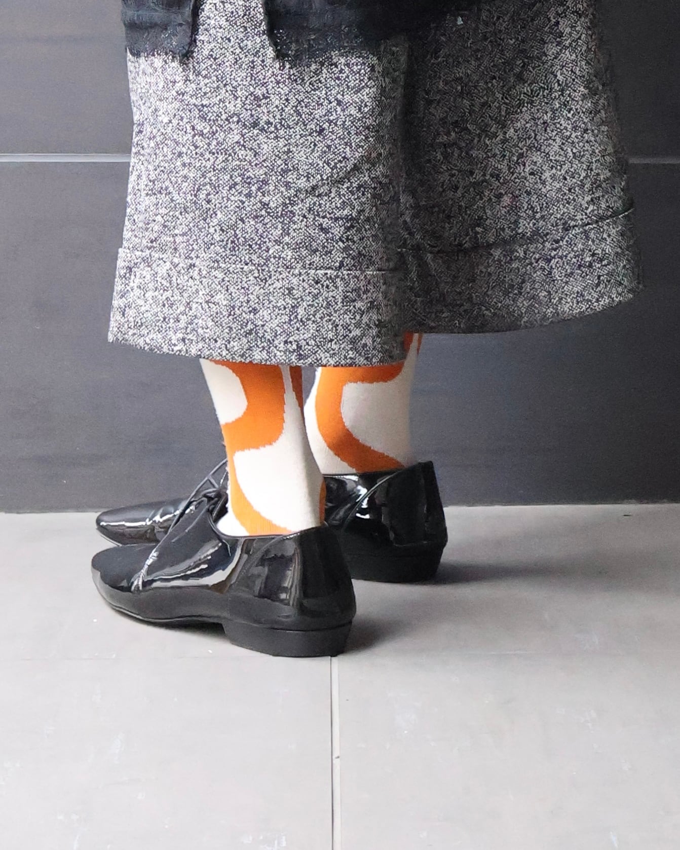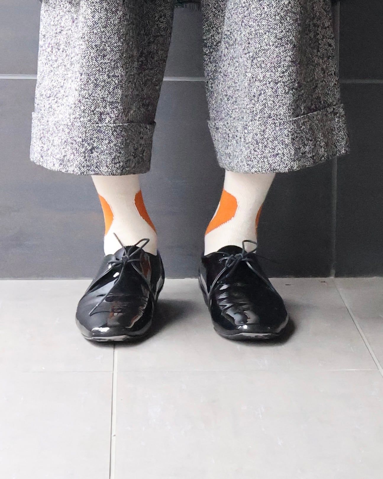光沢の強いエナメル素材が特徴で、足元に圧倒的な存在感をプラスする一足。
