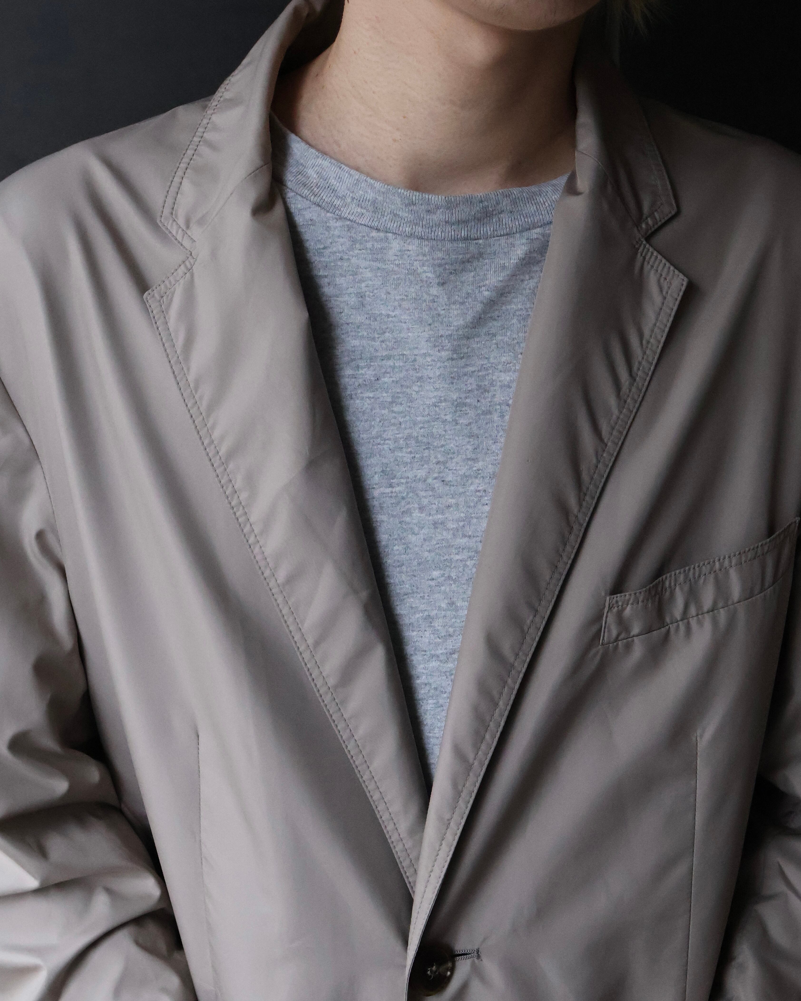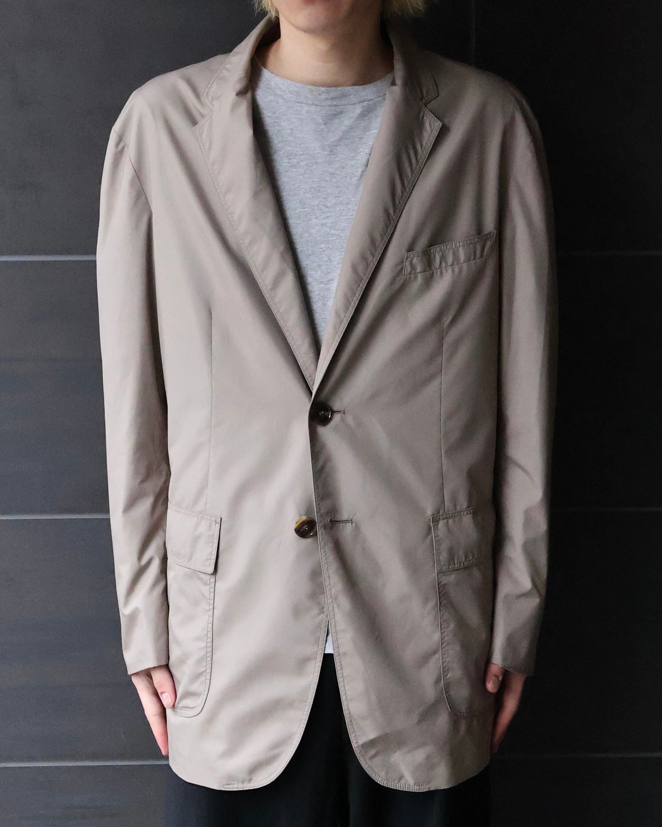 軽やかなベージュトーンが際立つテーラードジャケット。クラシックなラペルデザインをベースにしながら、柔らかな生地感とリラックスしたシルエットにより、堅さを排した仕上がり。