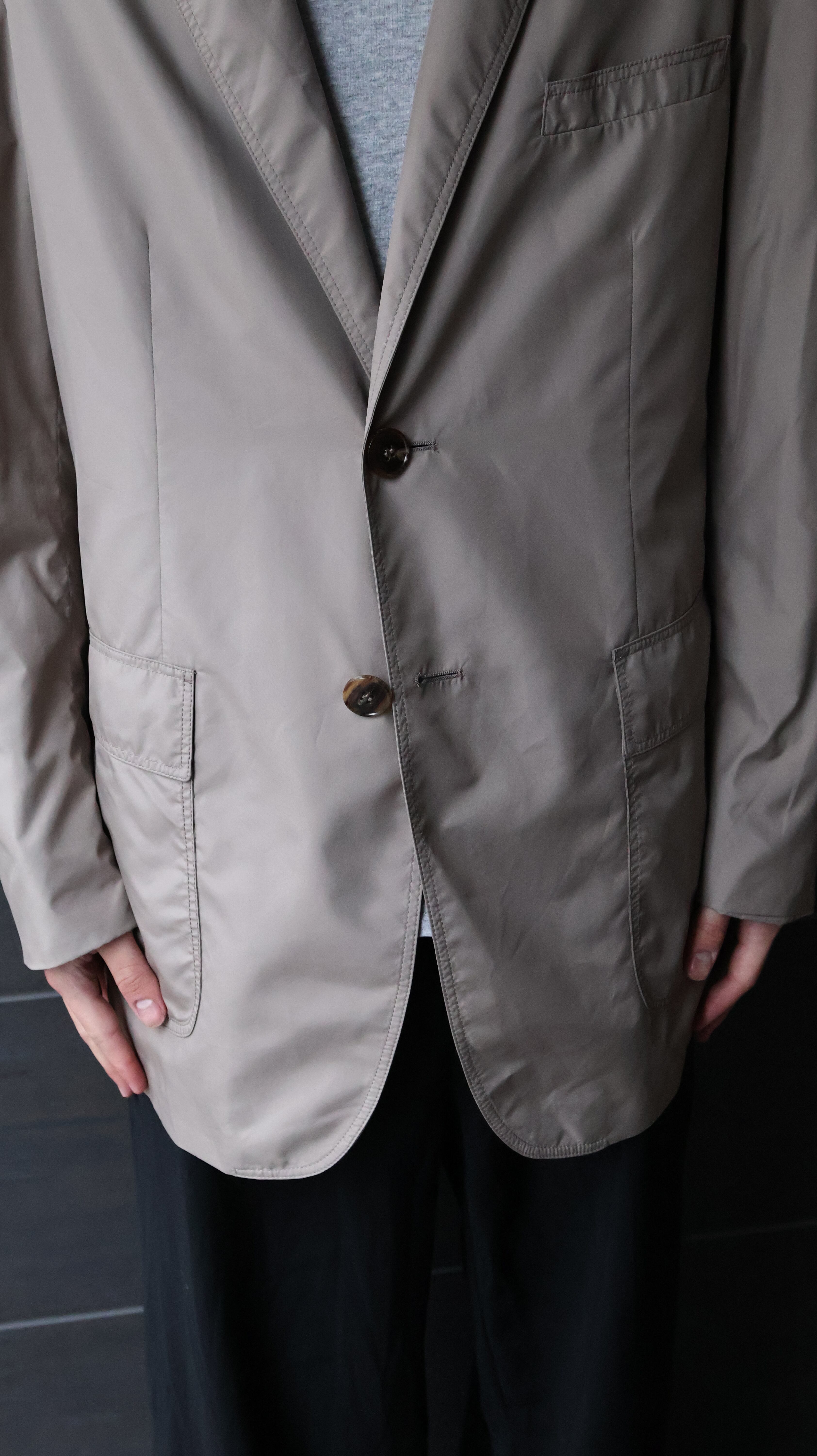 パッチポケットやナチュラルショルダーの仕様が、フォーマルとカジュアルの境界を曖昧にし、幅広いスタイリングに適応できる一枚。