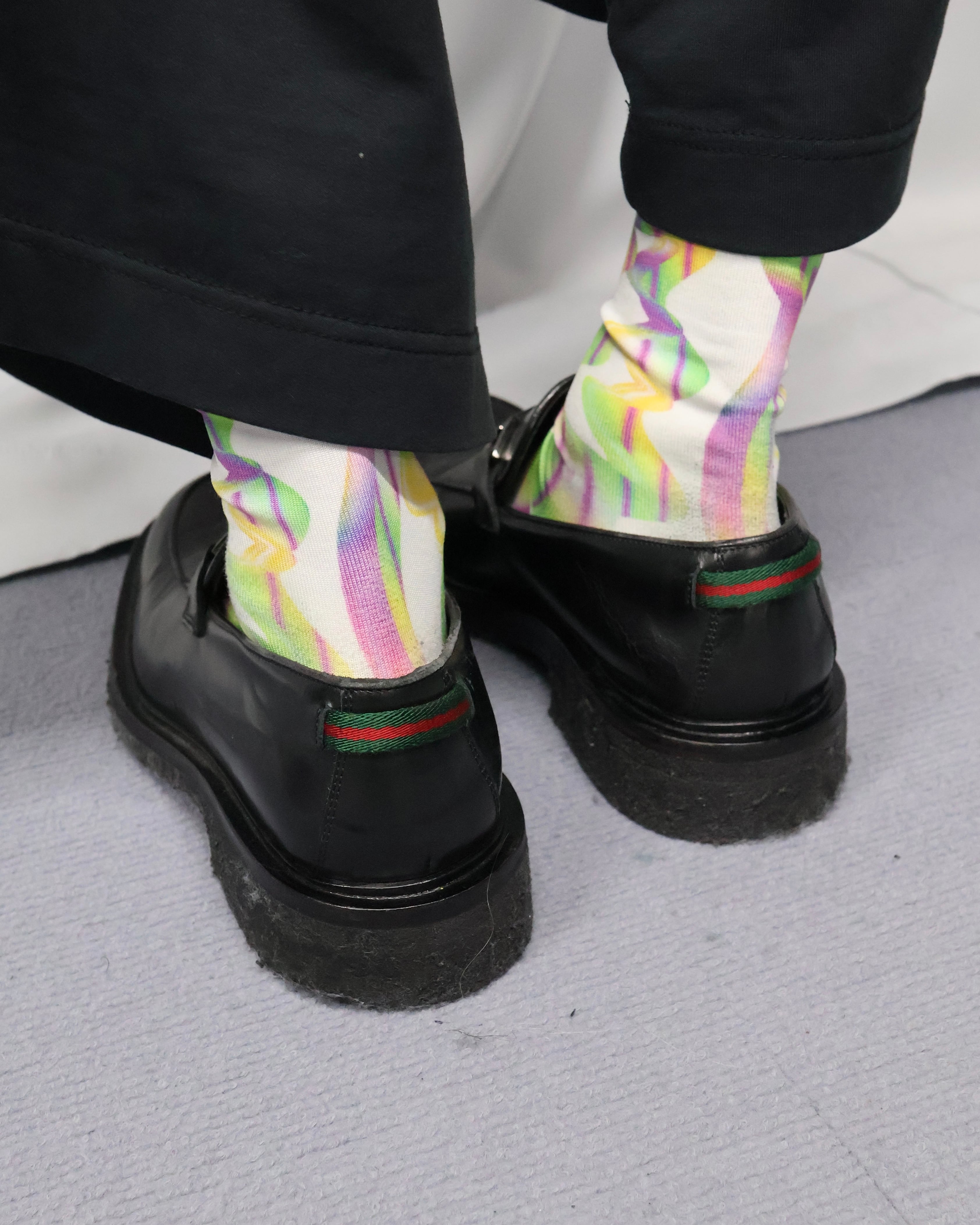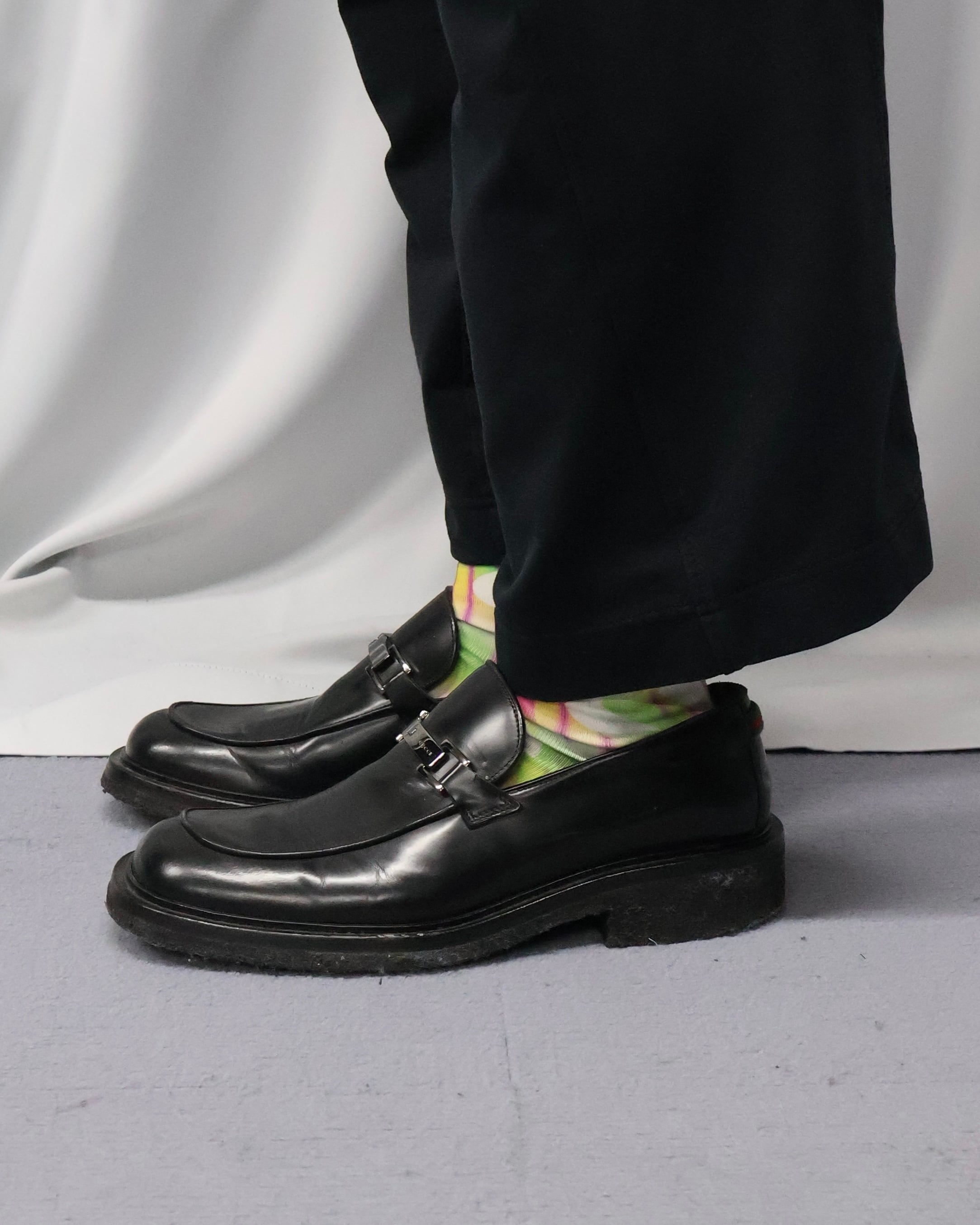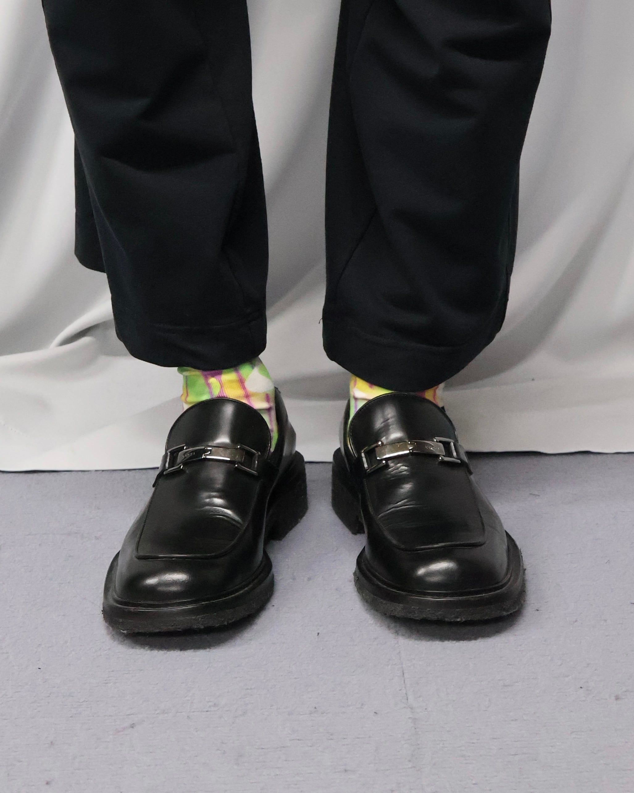 ソールに厚みがあり、重厚感と存在感があるGUCCIのレザーシューズ。鈍い光沢感とボリューム感が、クラシックにもカジュアルなコーディネートの下半身にも合うようなバランスで、薄いローファーやレースアップとの使い分けもできスタイルアップも狙える、万能なシューズ。