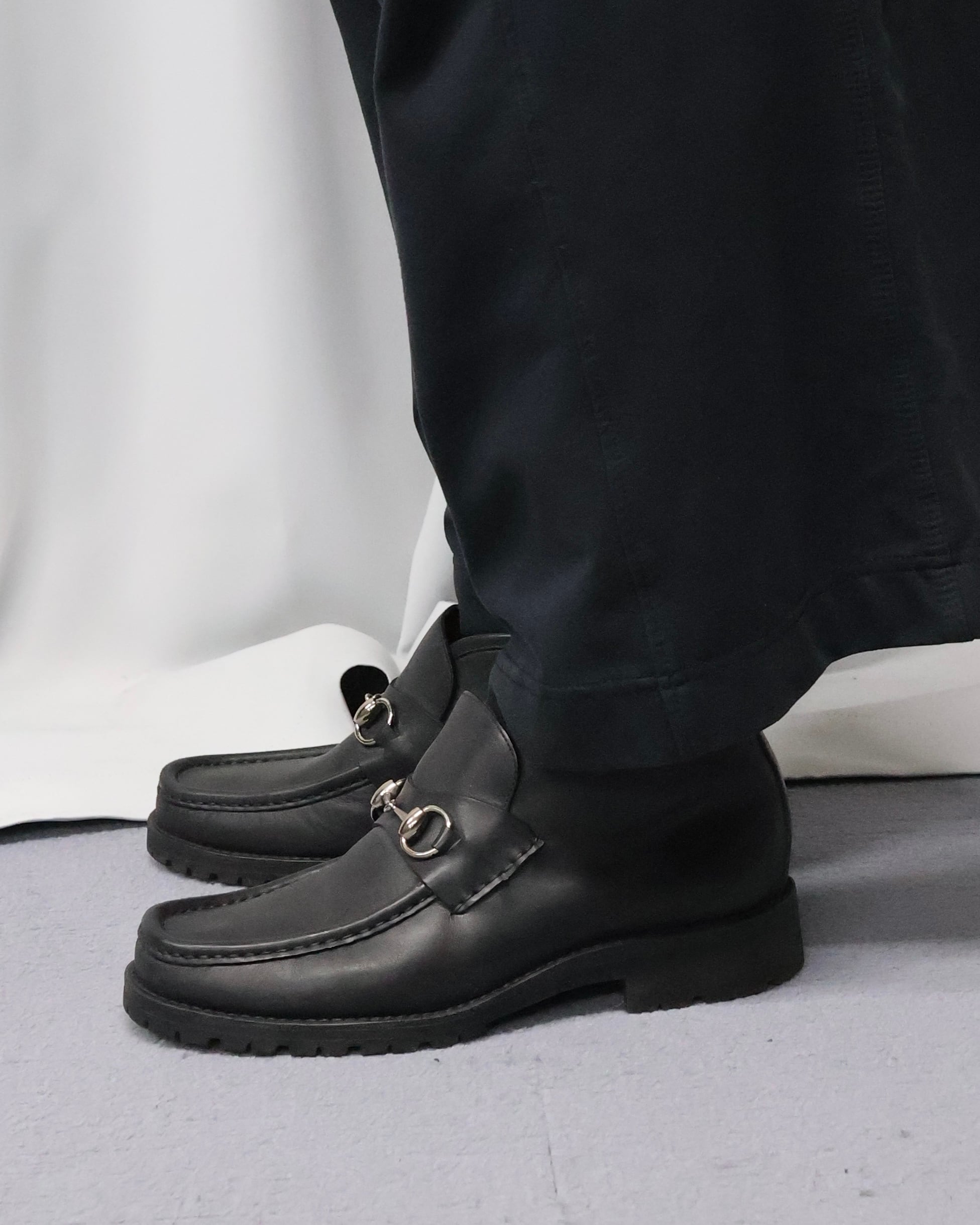 グッチのアイコニックなホースビットのエンブレムがあしらわれた、コンパクトでミニマルな佇まいのシューズ。様々な下半身に対応できる汎用性の高さと、単品での存在感の大きさが魅力で、一足いい革靴をお求めの方にお勧めしたいアイテム。