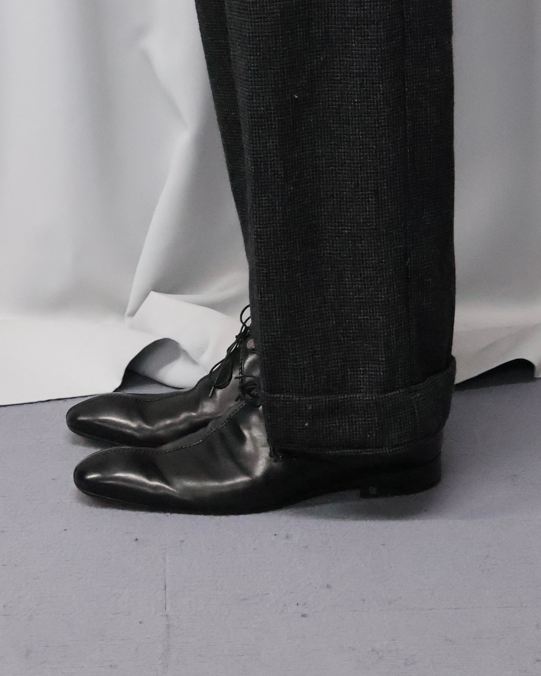 ブランドらしい、ファッションによりすぎない、フォーマルとクラシックの中間を行くような、下半身のクラシックを作るのにふさわしいアイテム。ヴィンテージやレギュラーでは作り出せない高級感を演出し、スラックスからデニムまで幅広く合わせられ、かつ存在感はありつつもコーデの邪魔をしないような、お淑やかさもあるような、そんな一足。