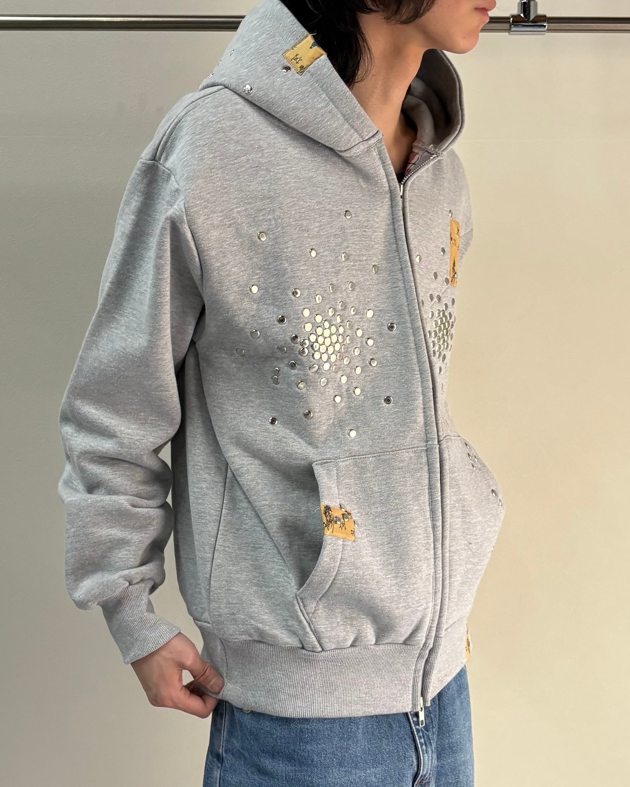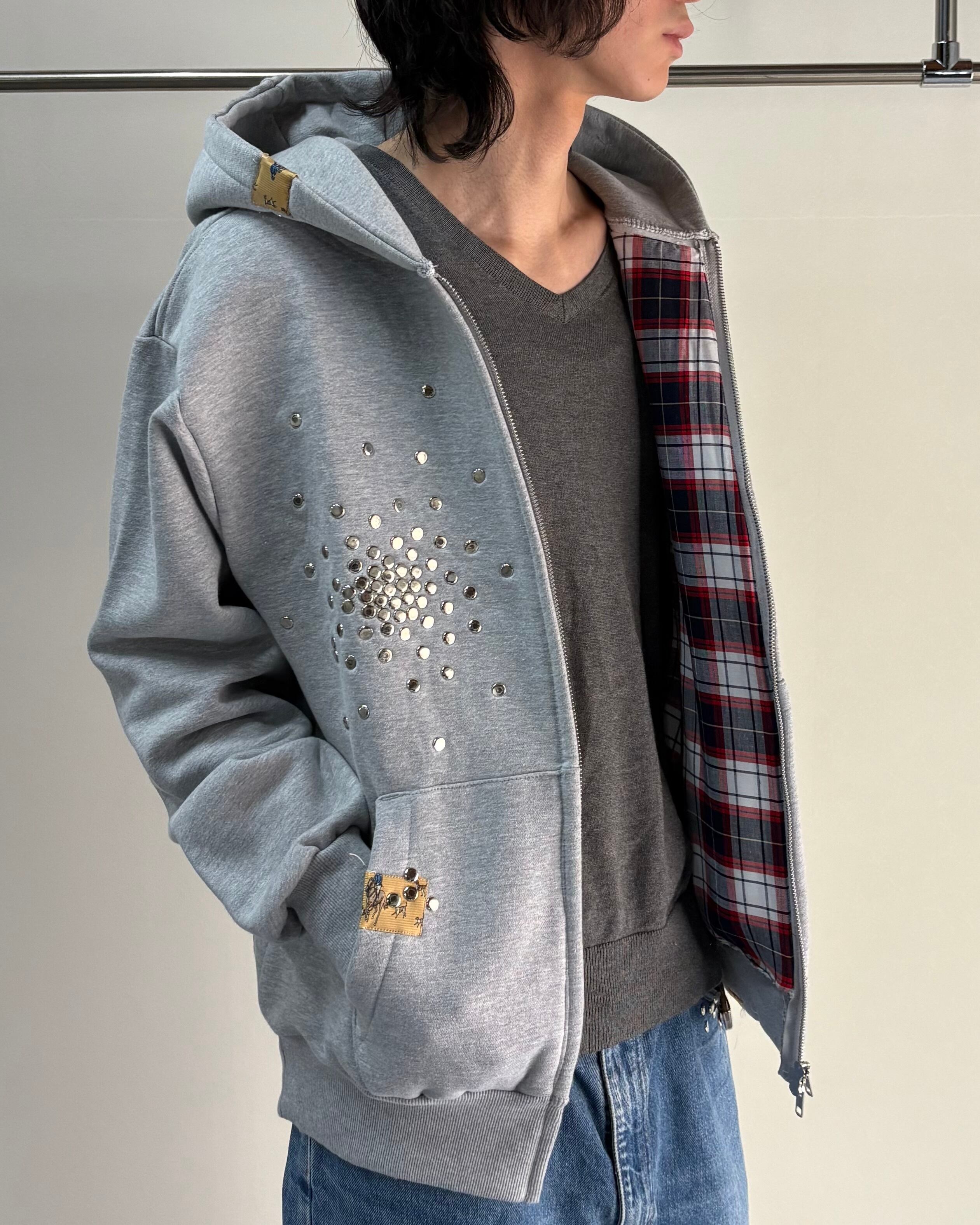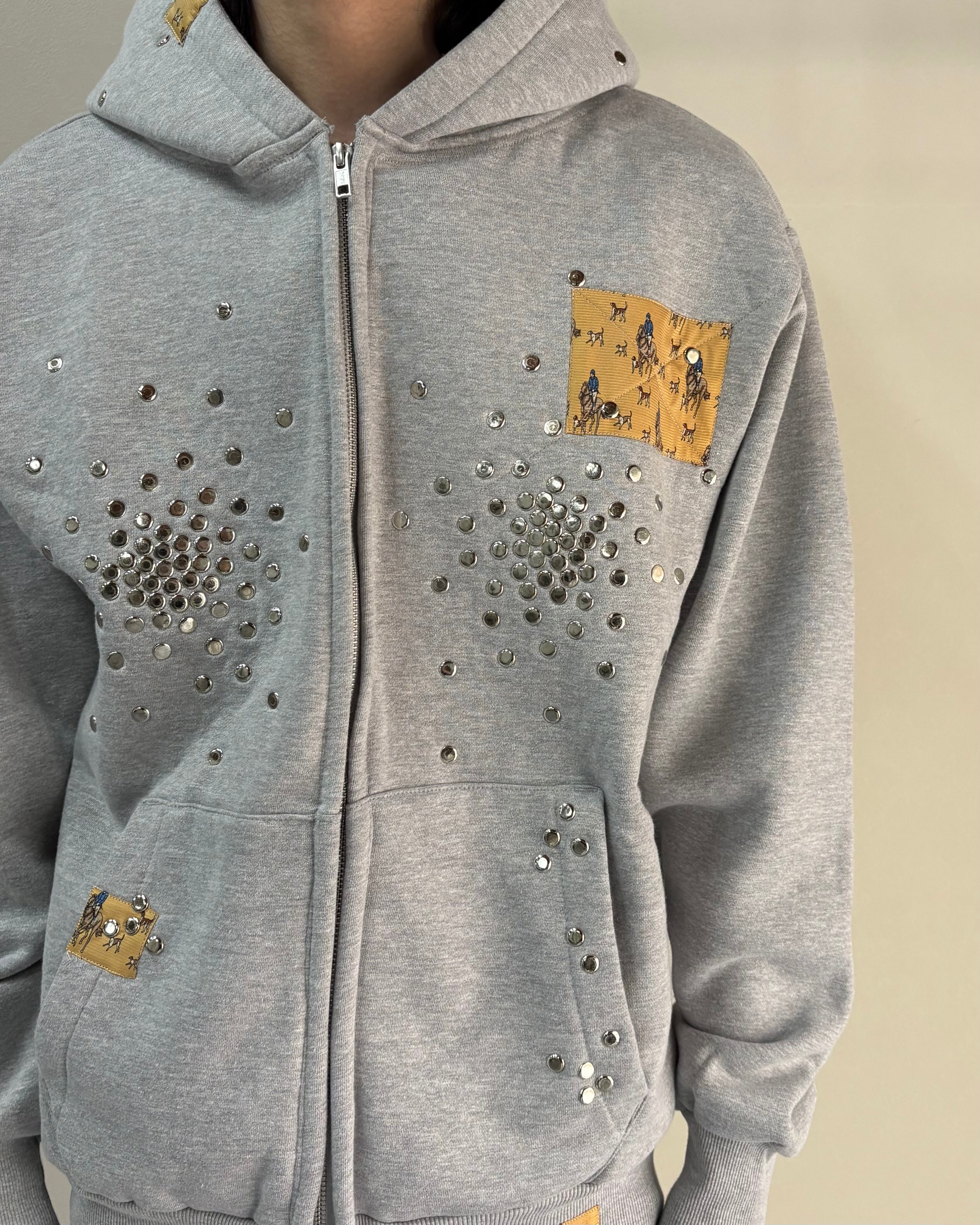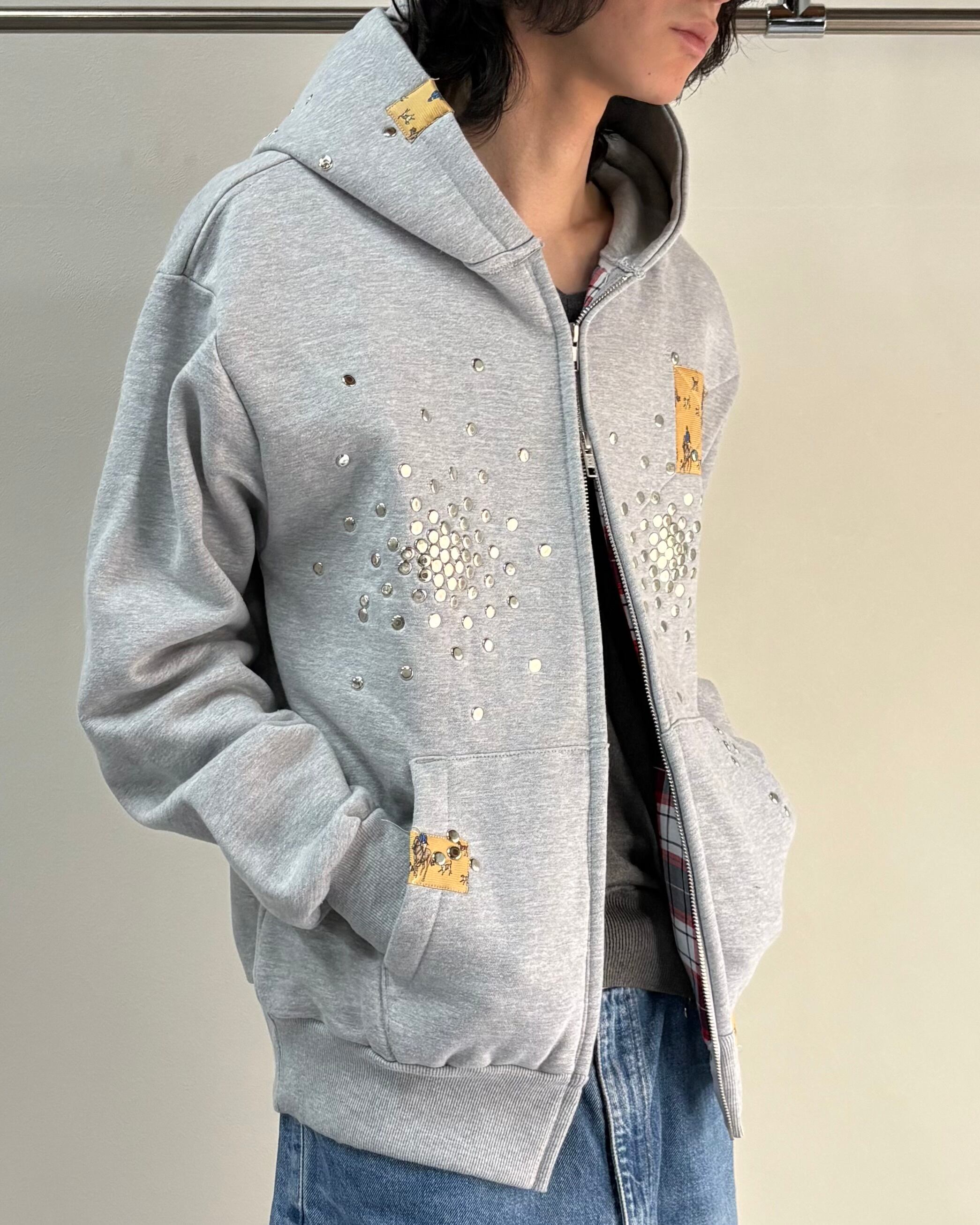 【Hannah Creak】Studded Hoodie Double Zip Grey
