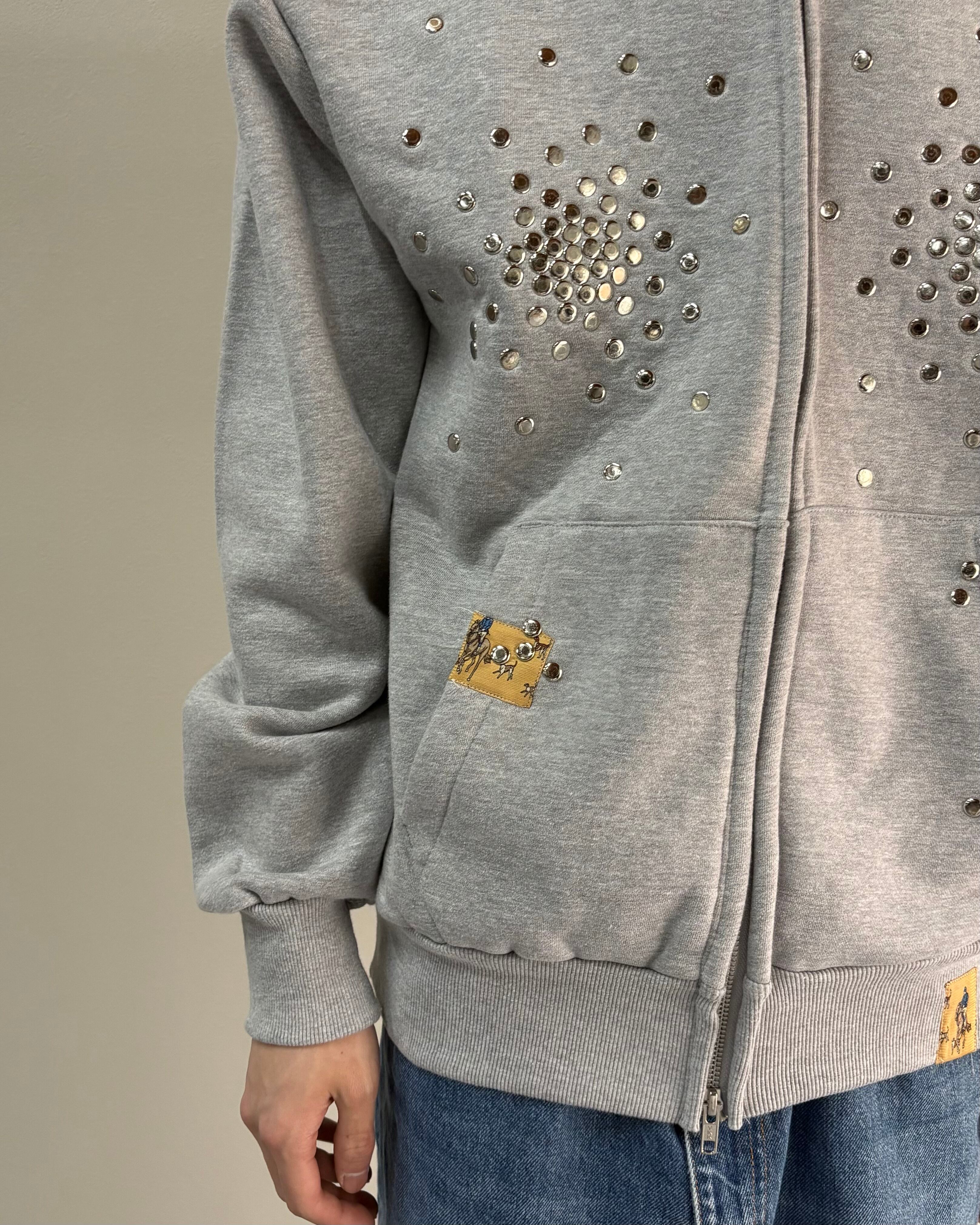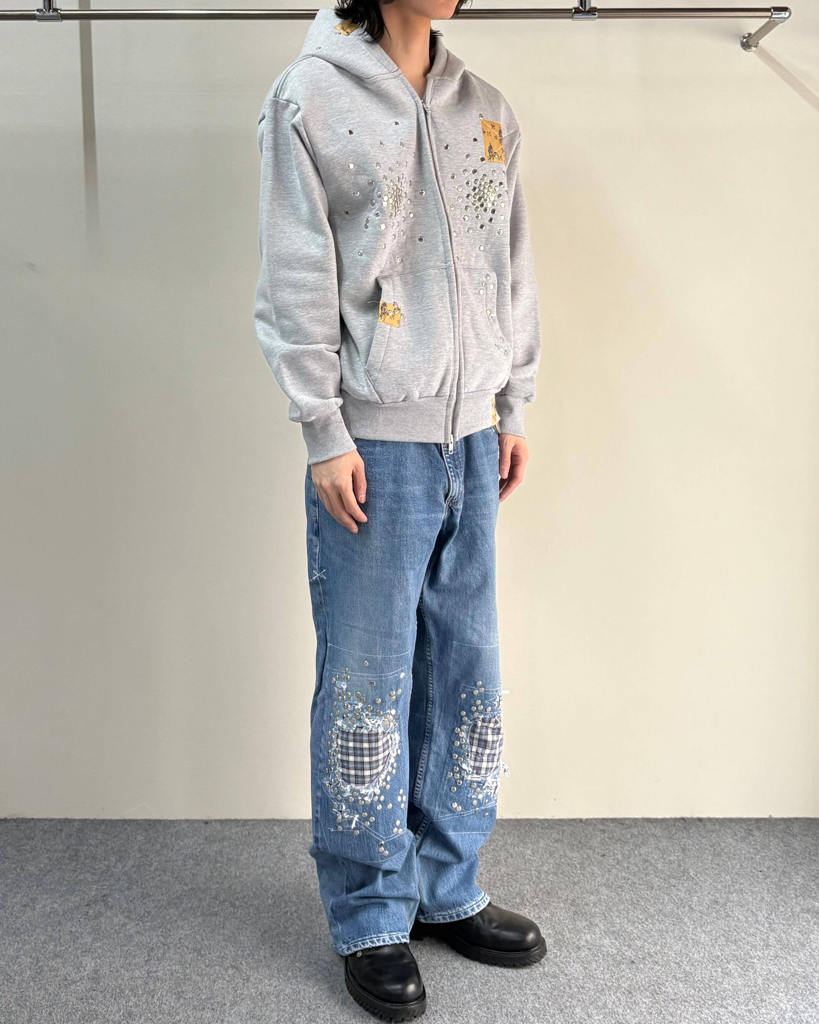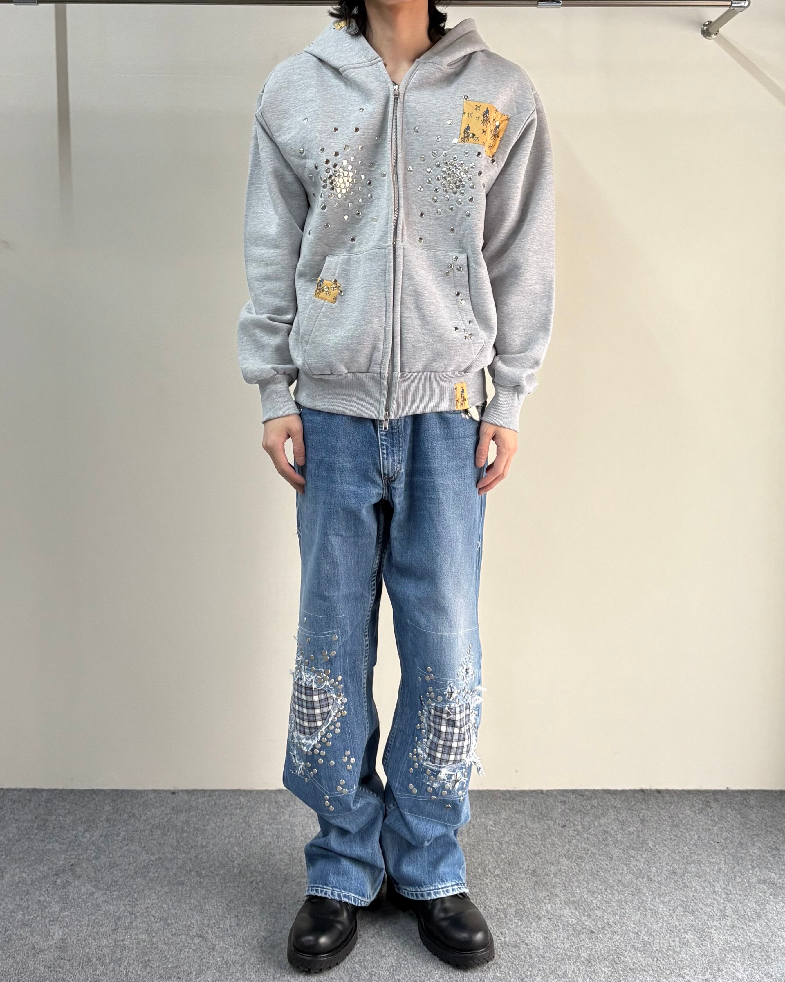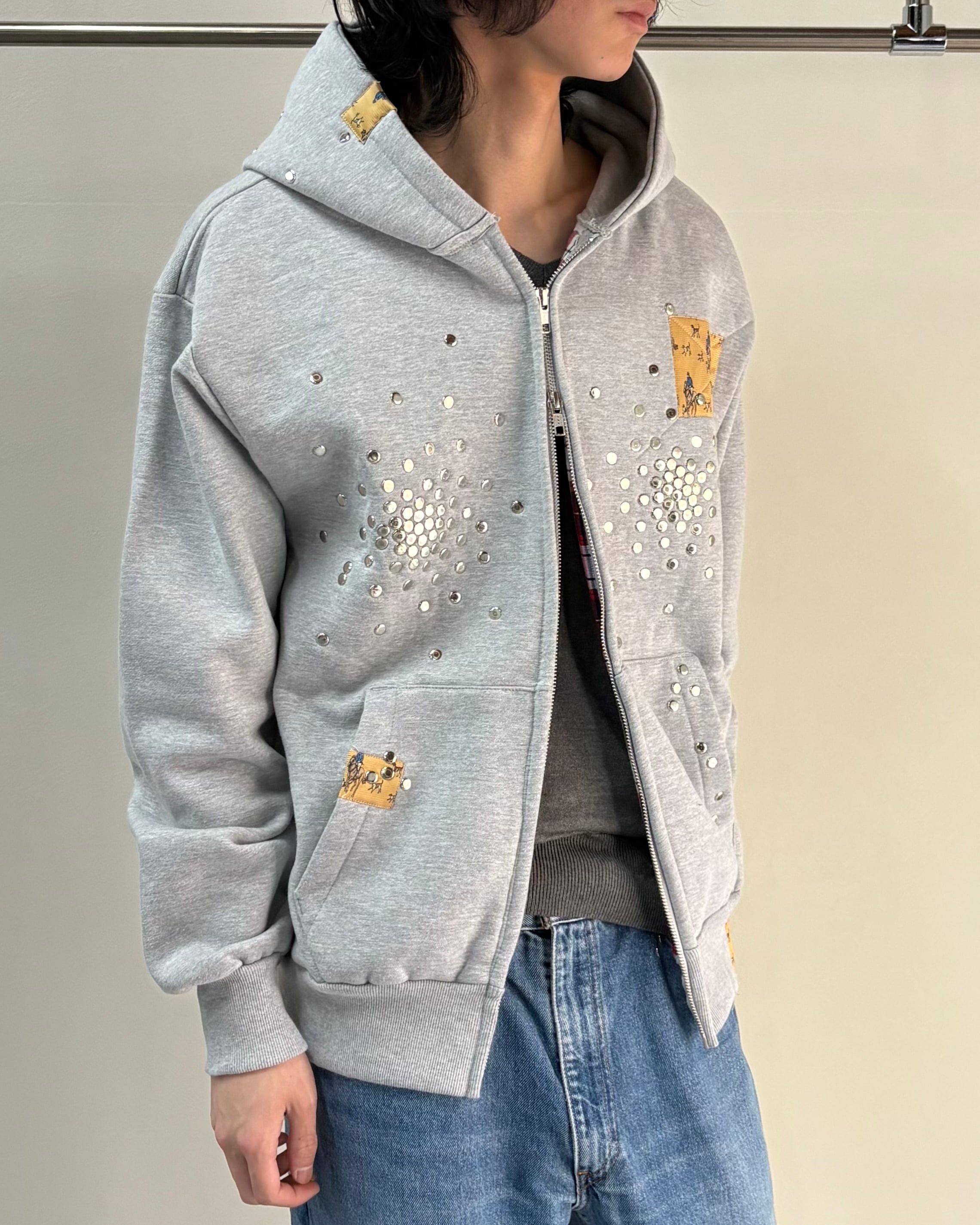 【Hannah Creak】Studded Hoodie Double Zip Grey