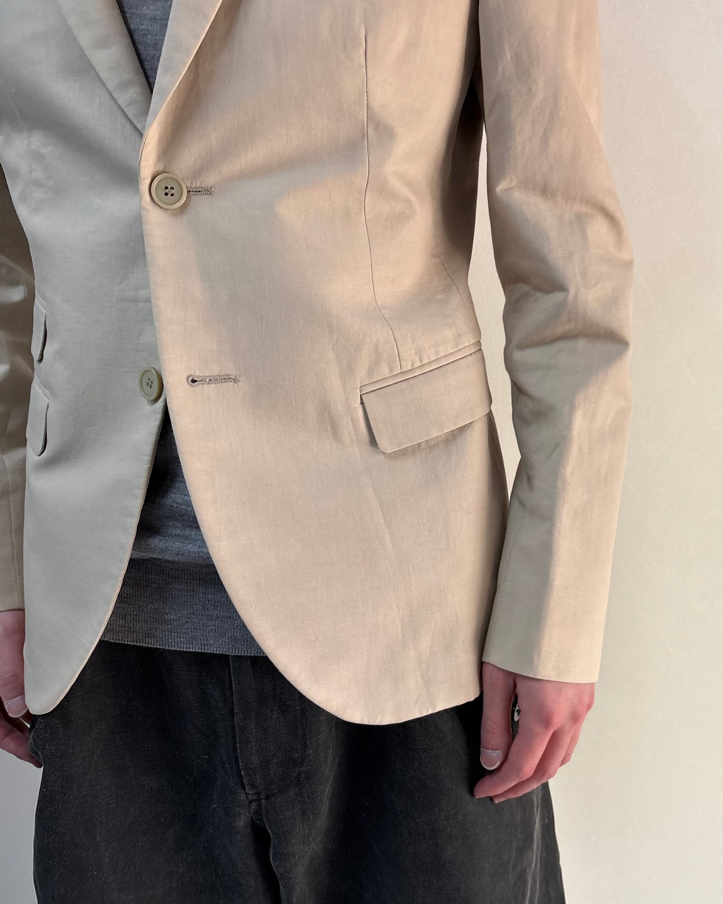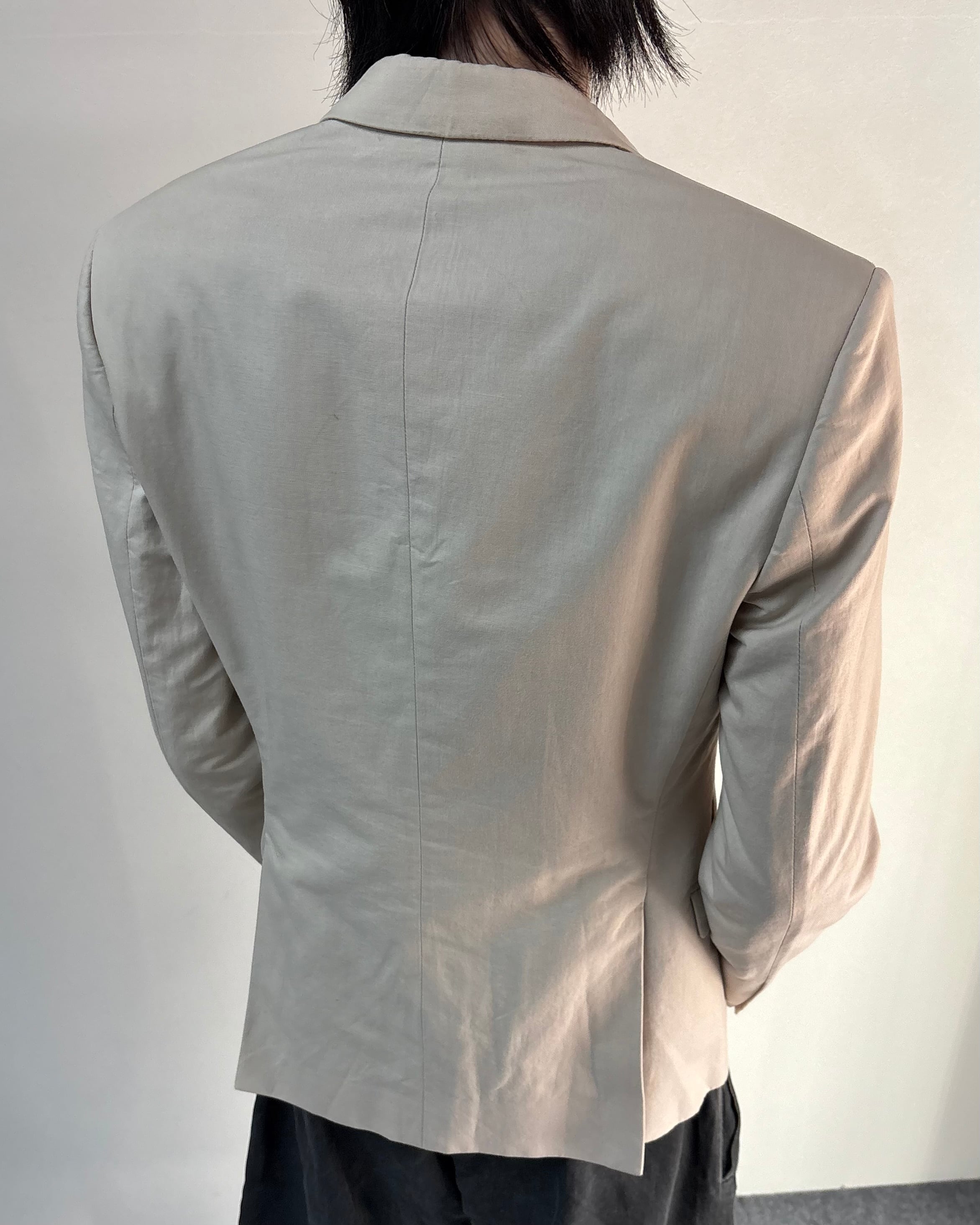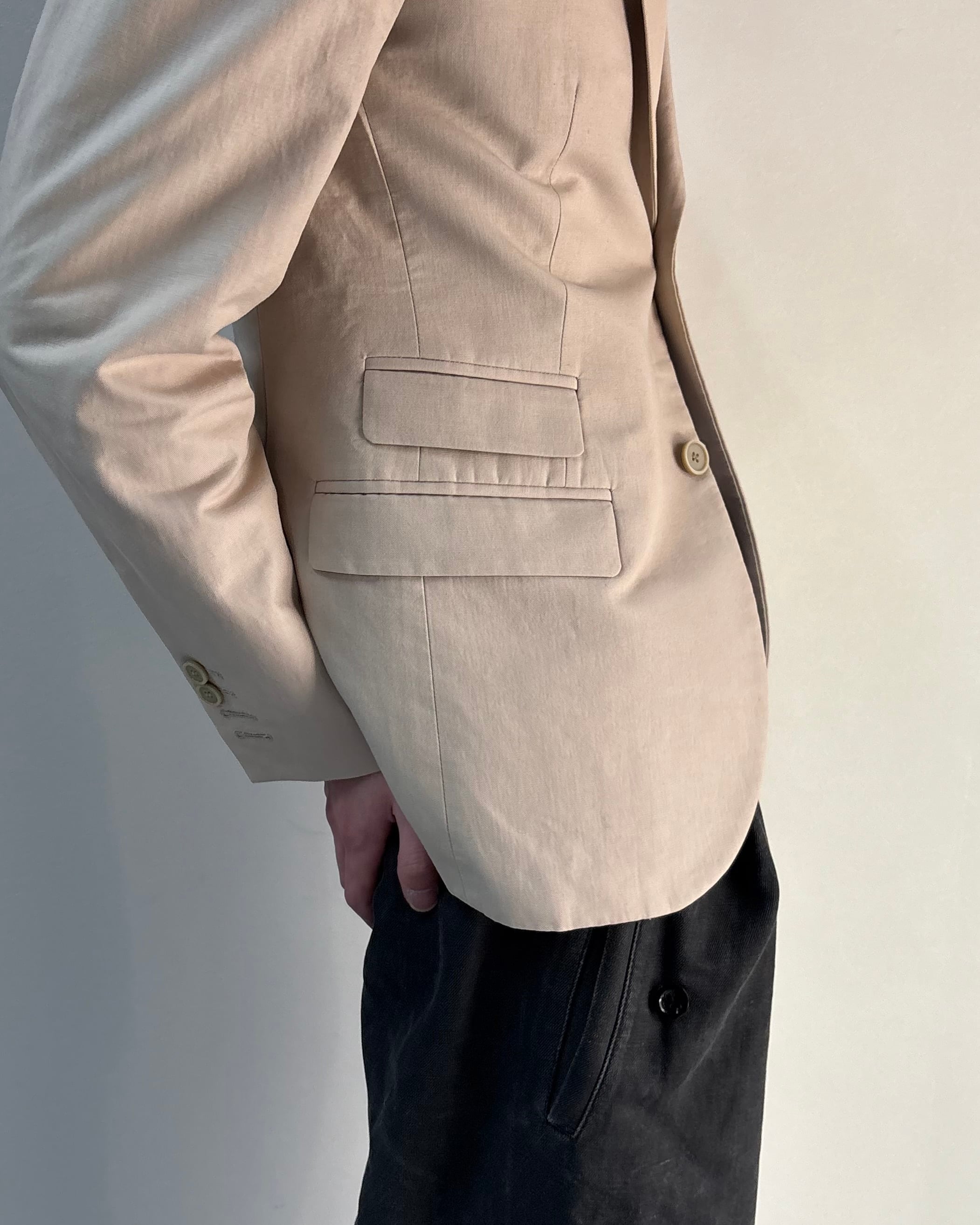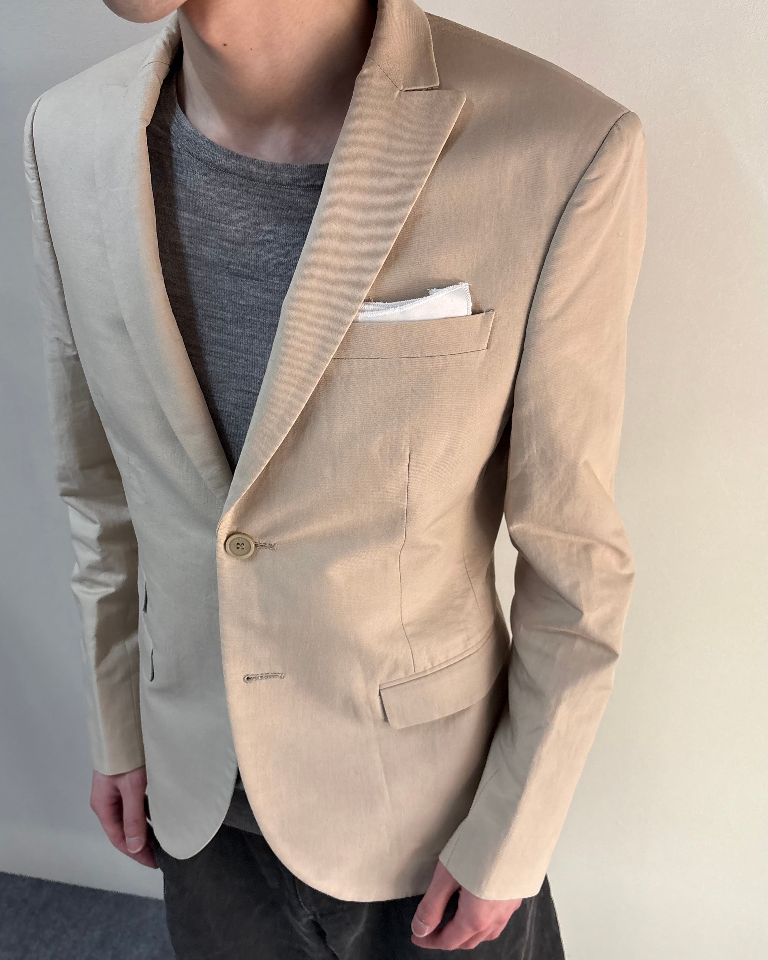 肌触りの良い感触の素材から、テーラードといった硬い印象を色の塩梅によりどこか柔らかさを引き出せる1着