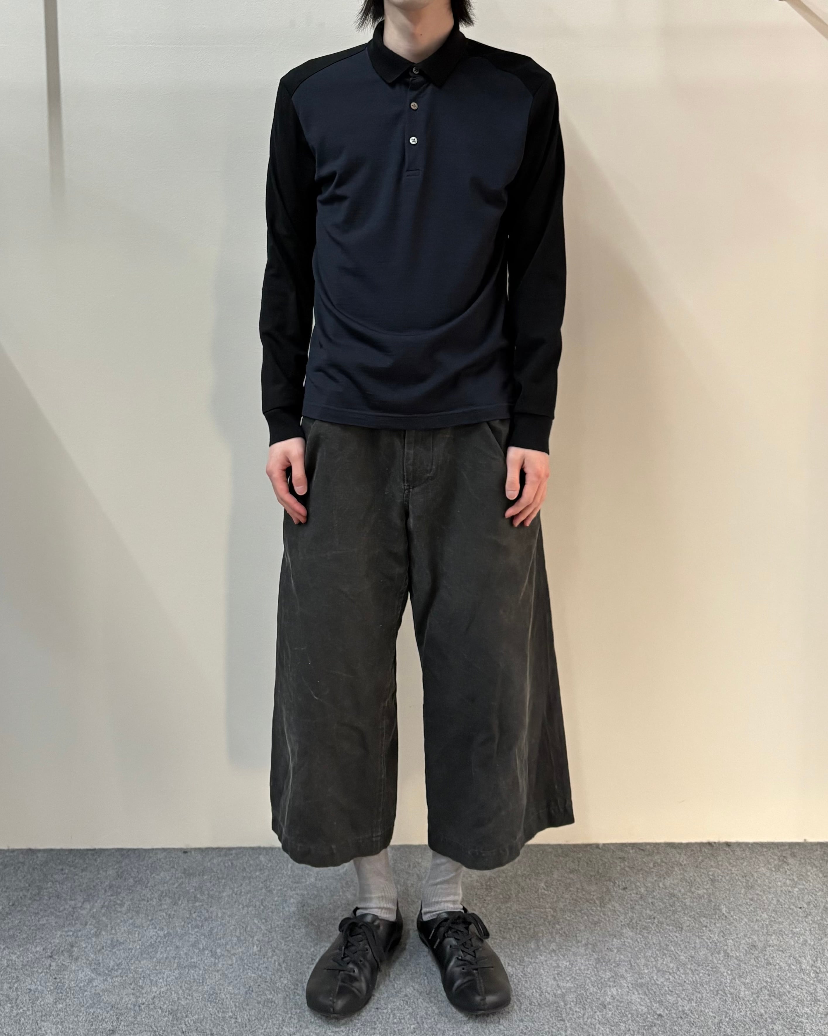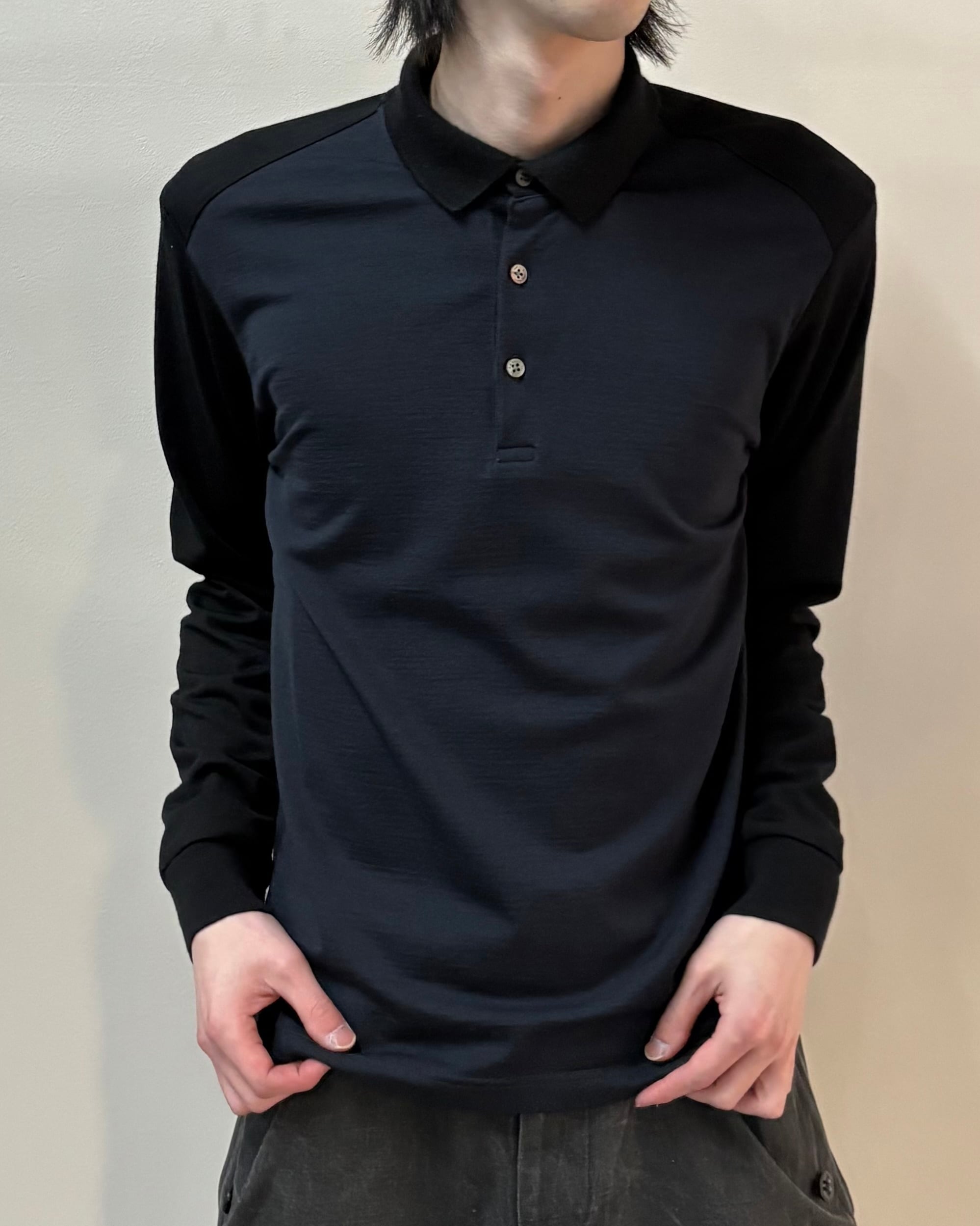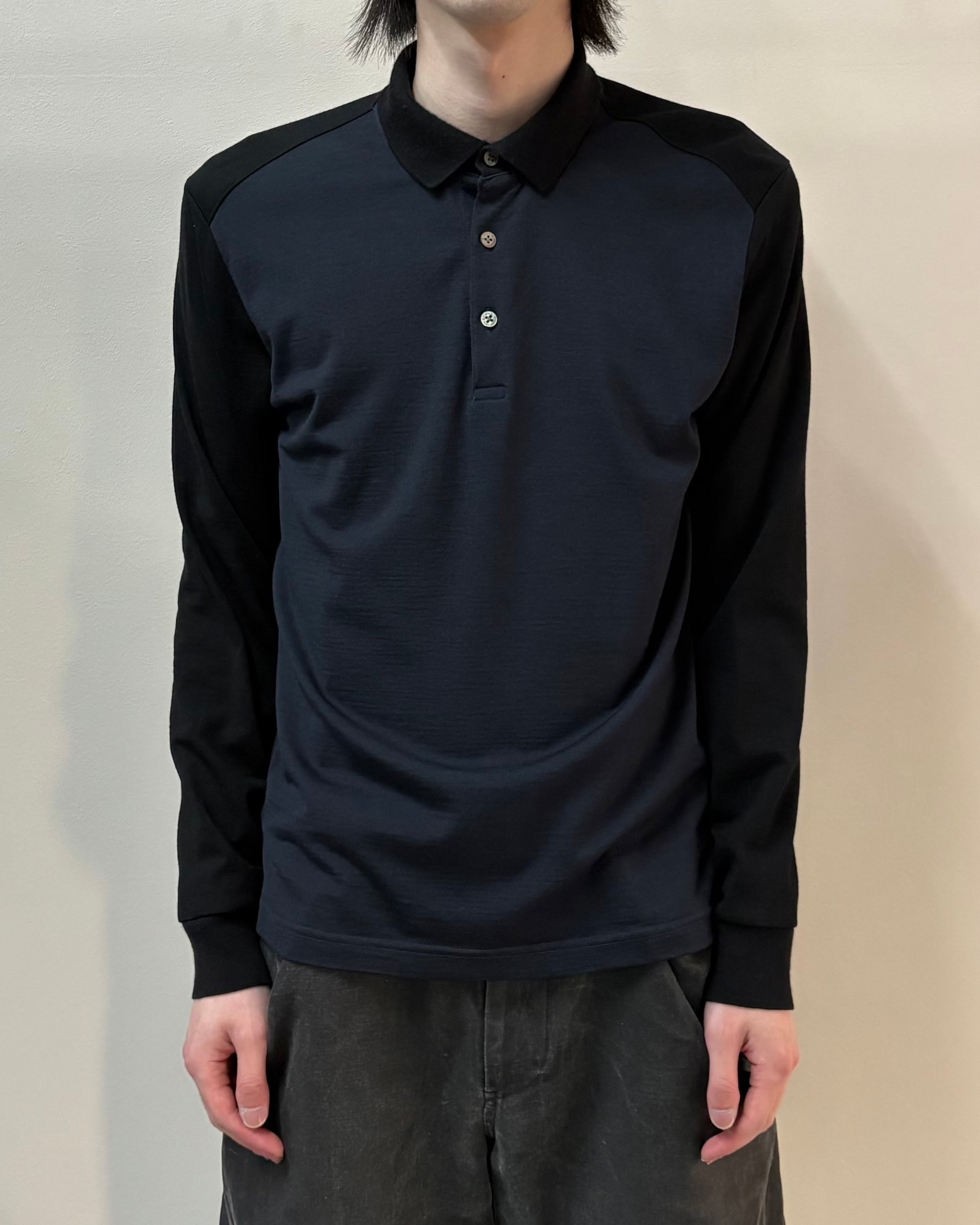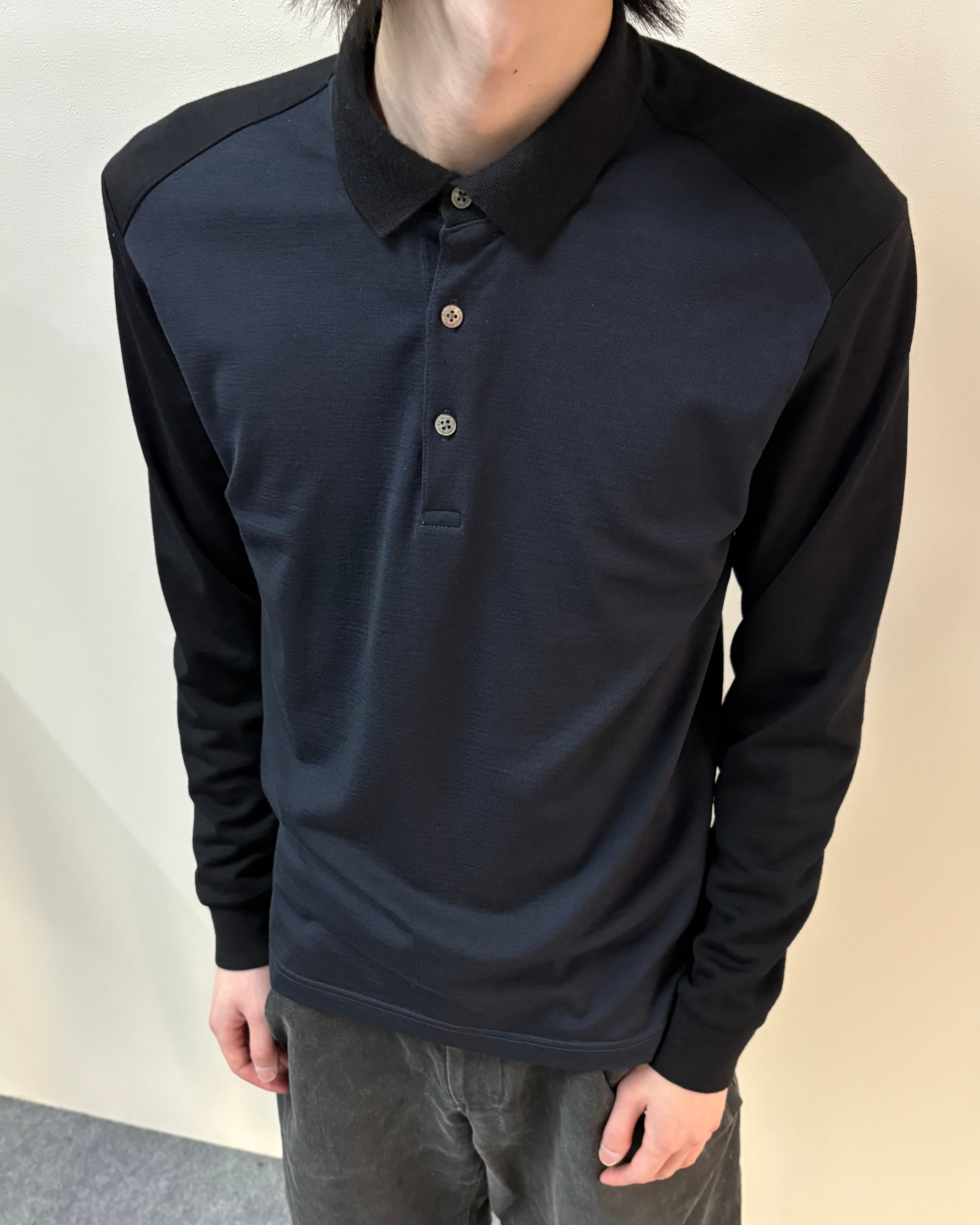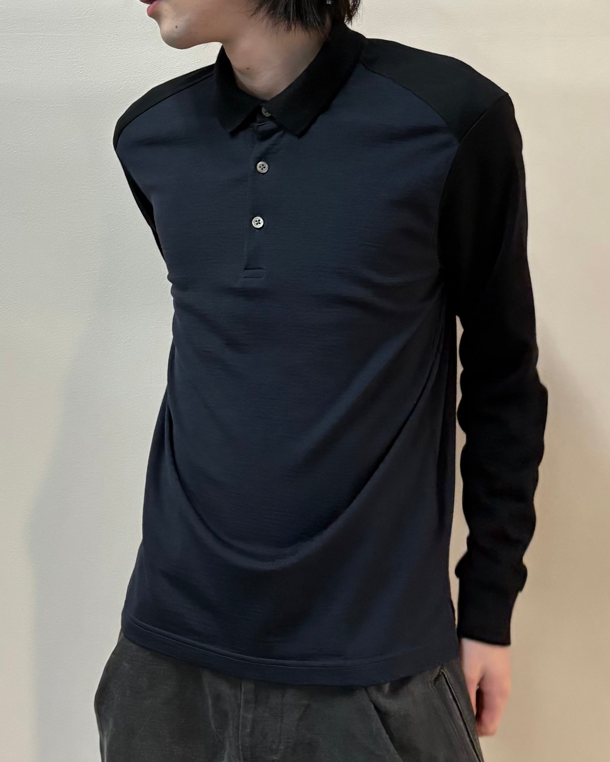 身頃と袖で切り替えられたバイカラーが特徴のニットポロ