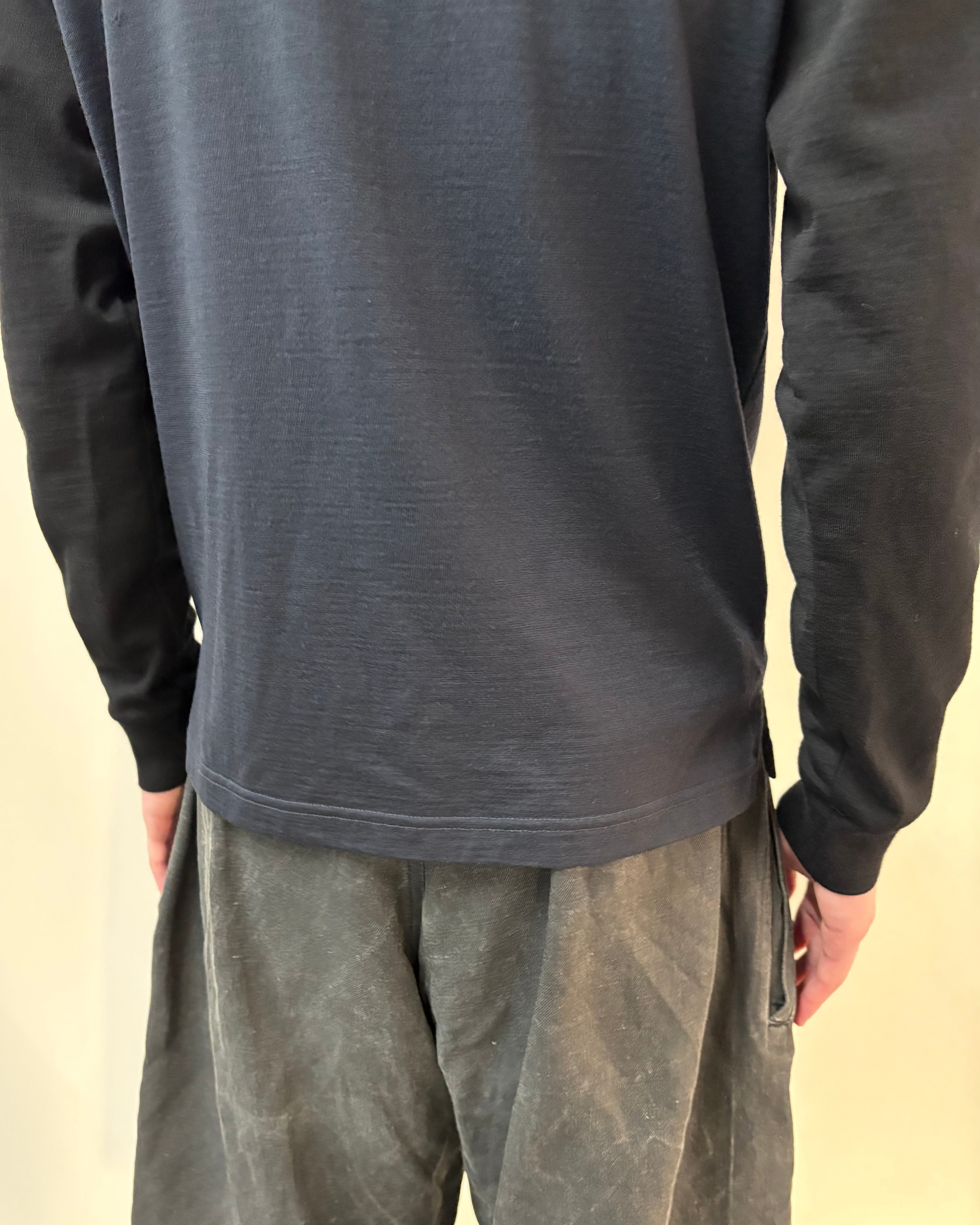 程よくコンパクトなサイズ感でインナー使いから1枚で着ても様になるアイテム。カジュアルからクラシックなスタイルまで幅広く対応可能。