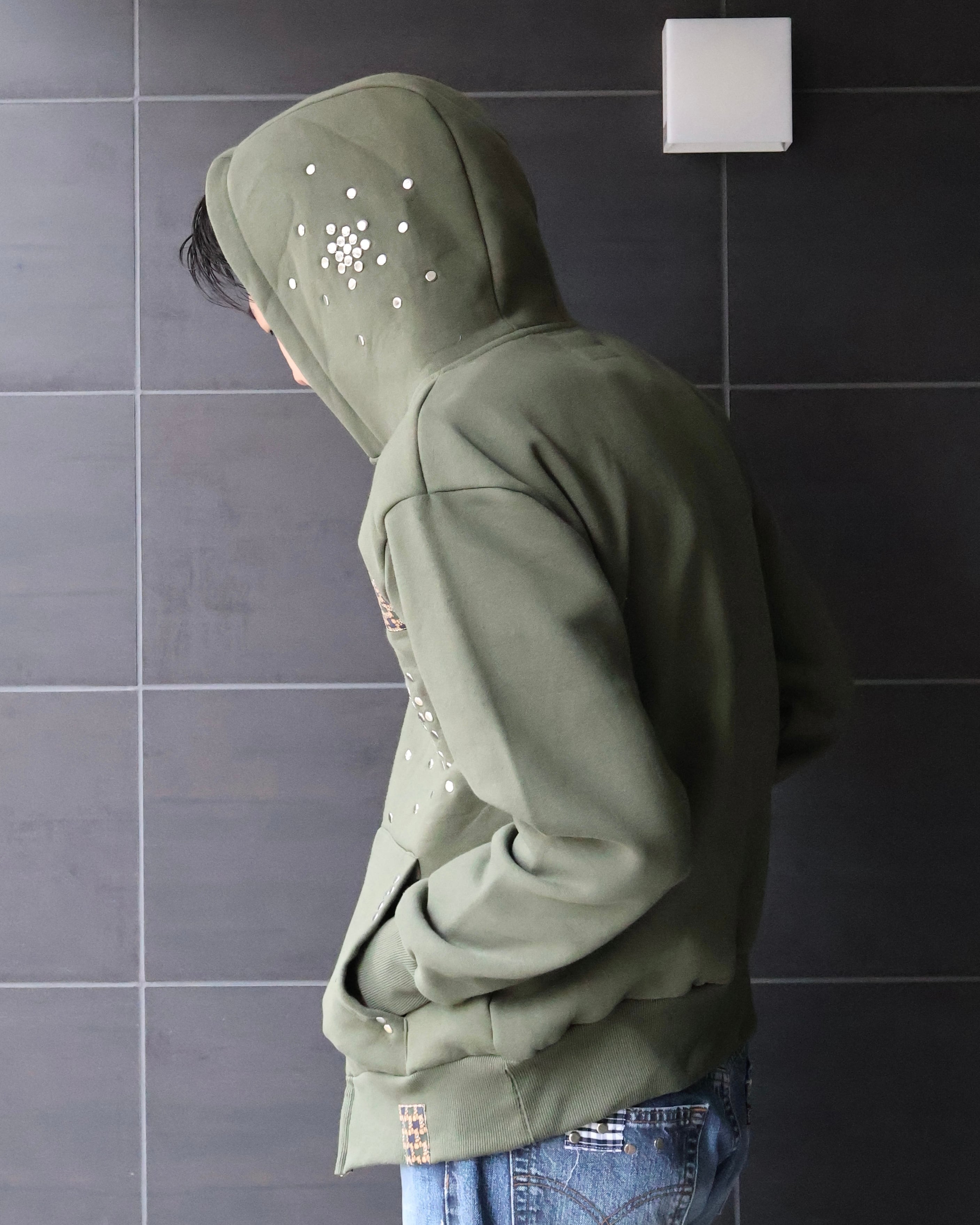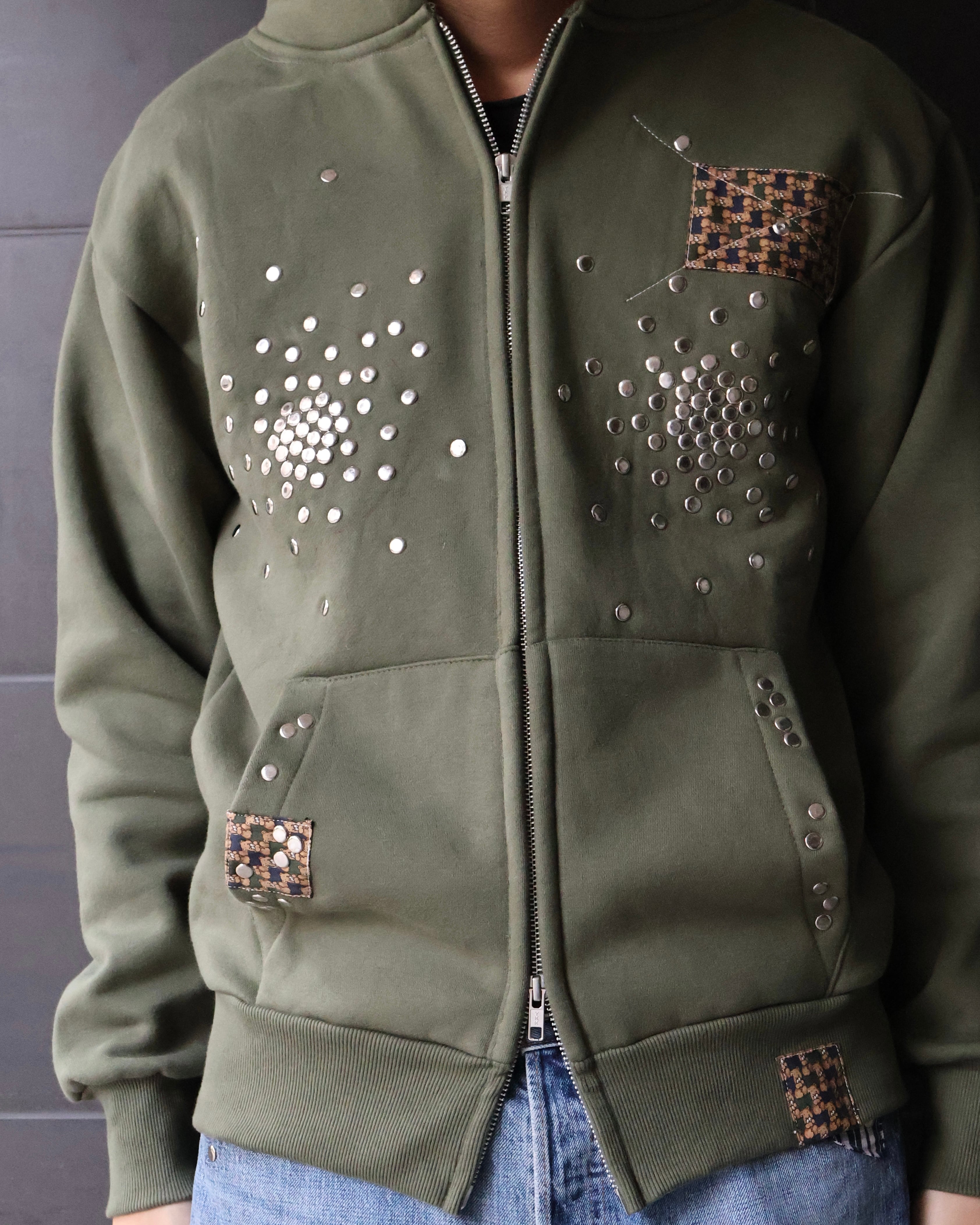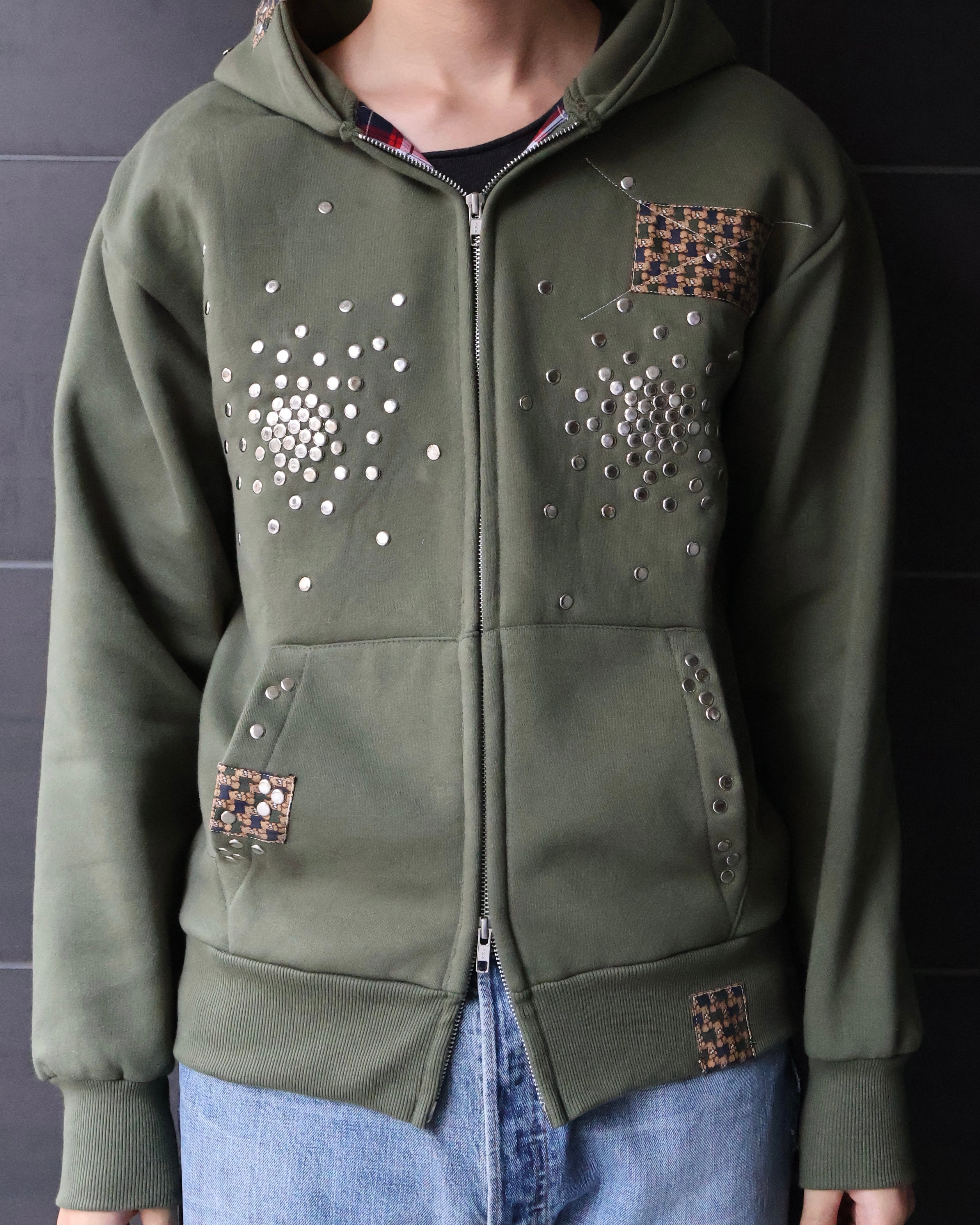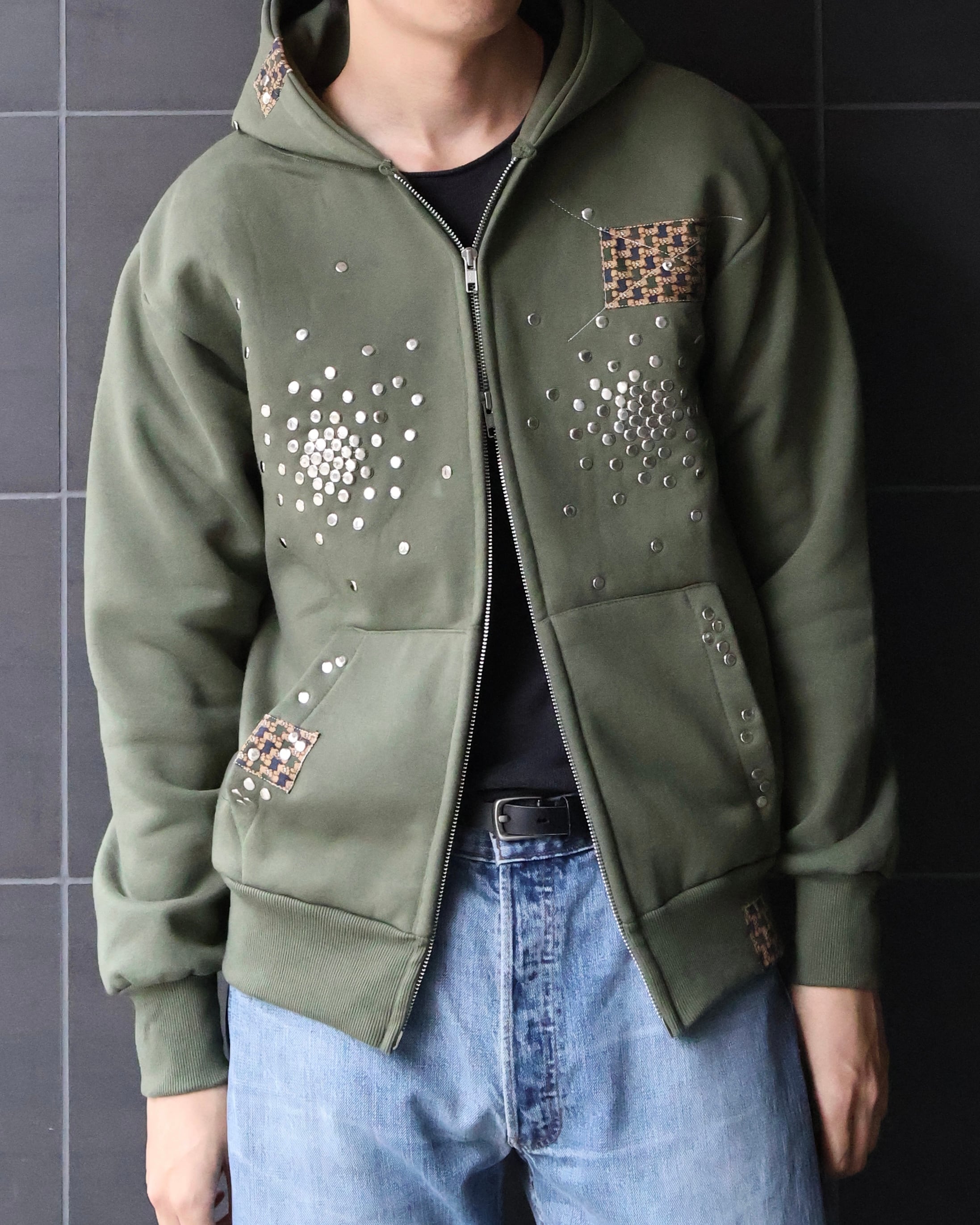 【Hannah Creak】Studded Hoodie Double Zip Khaki
