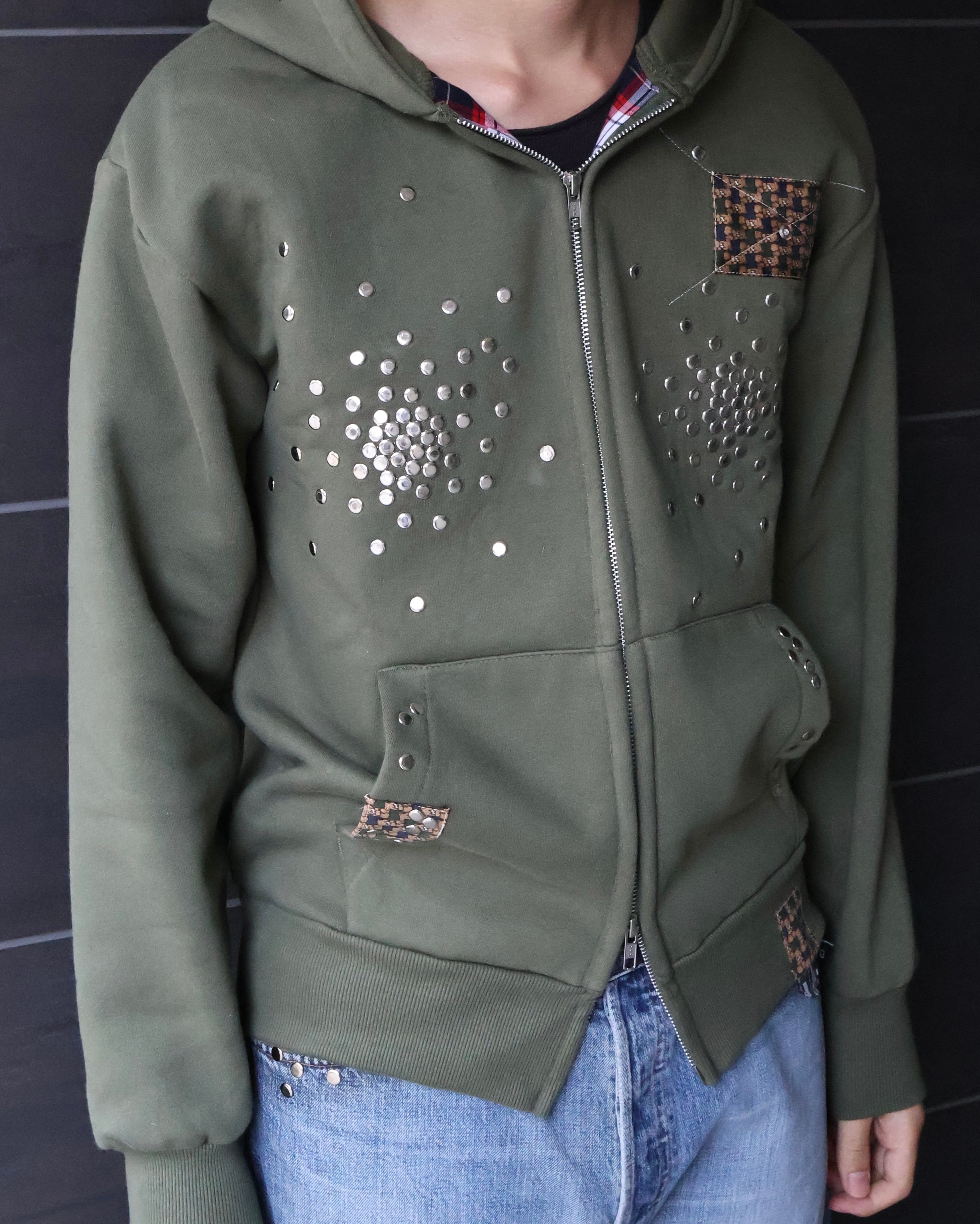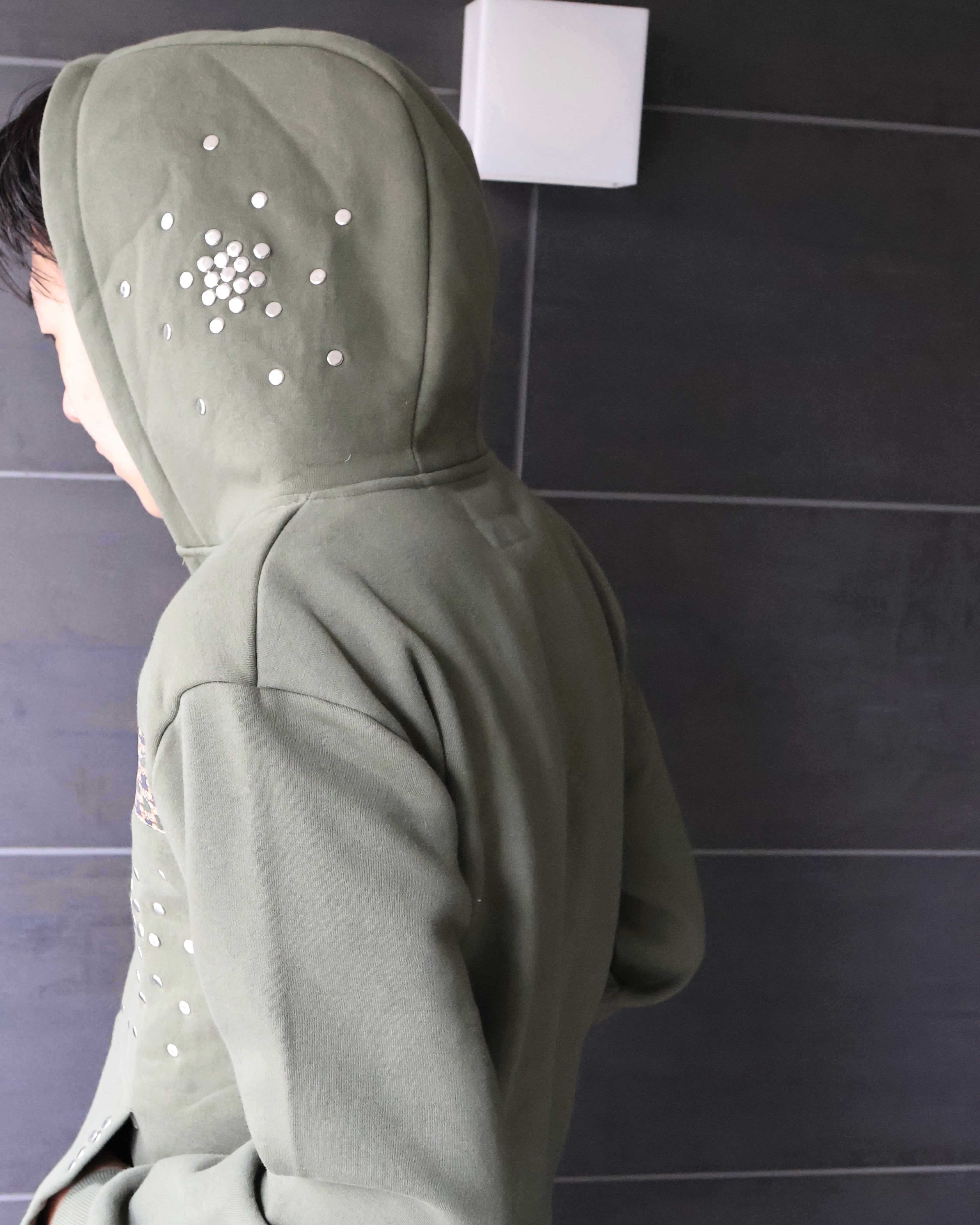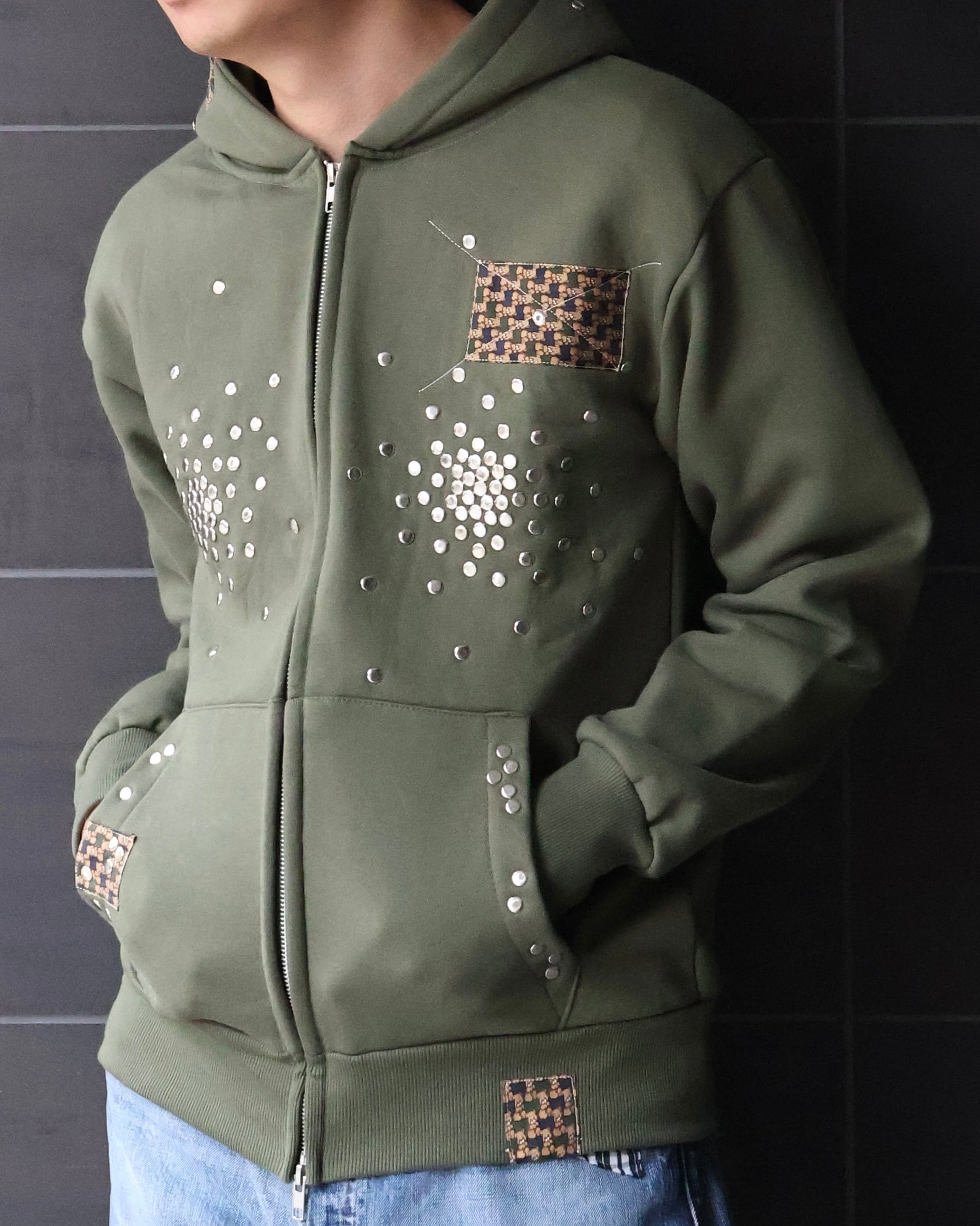 【Hannah Creak】Studded Hoodie Double Zip Khaki