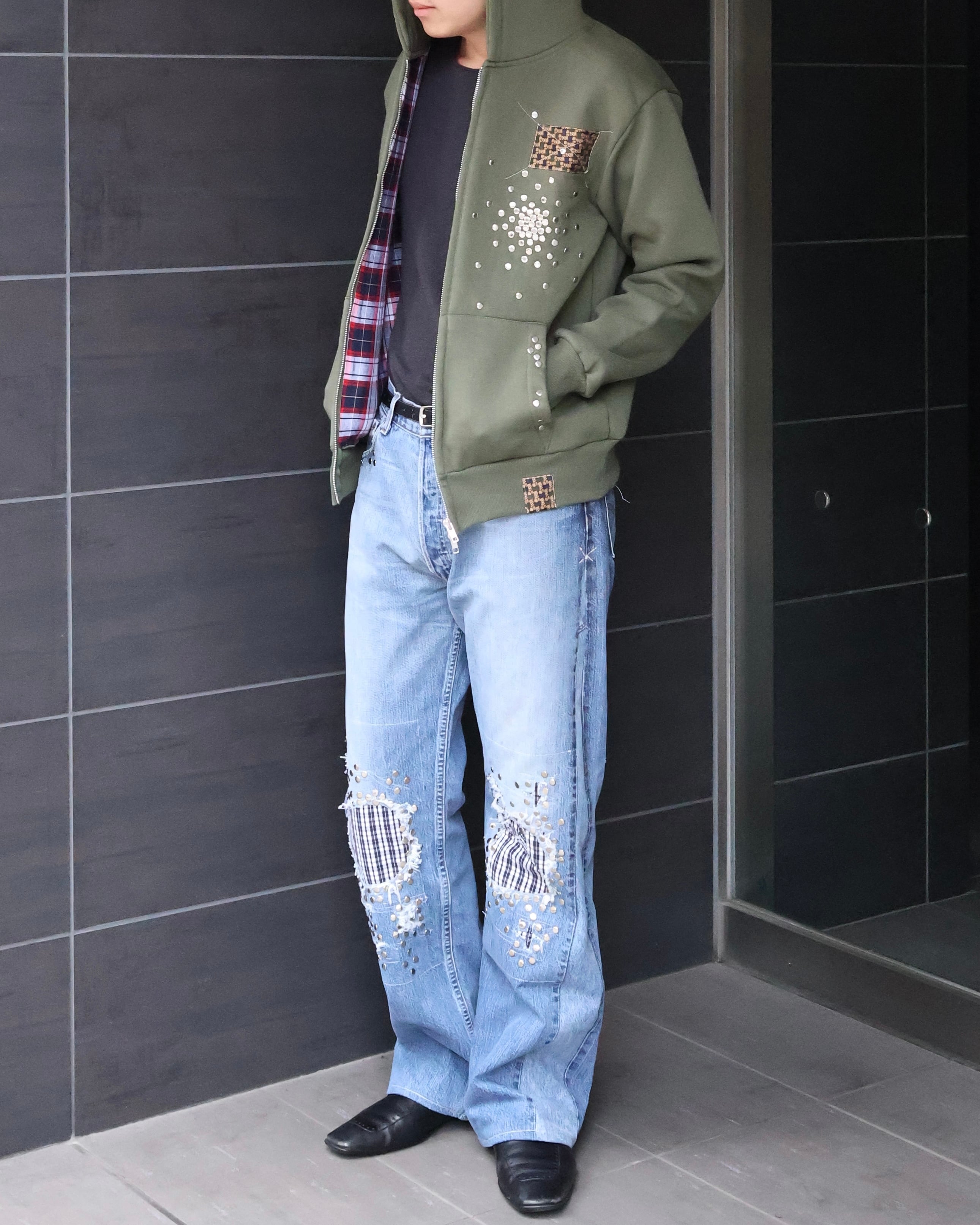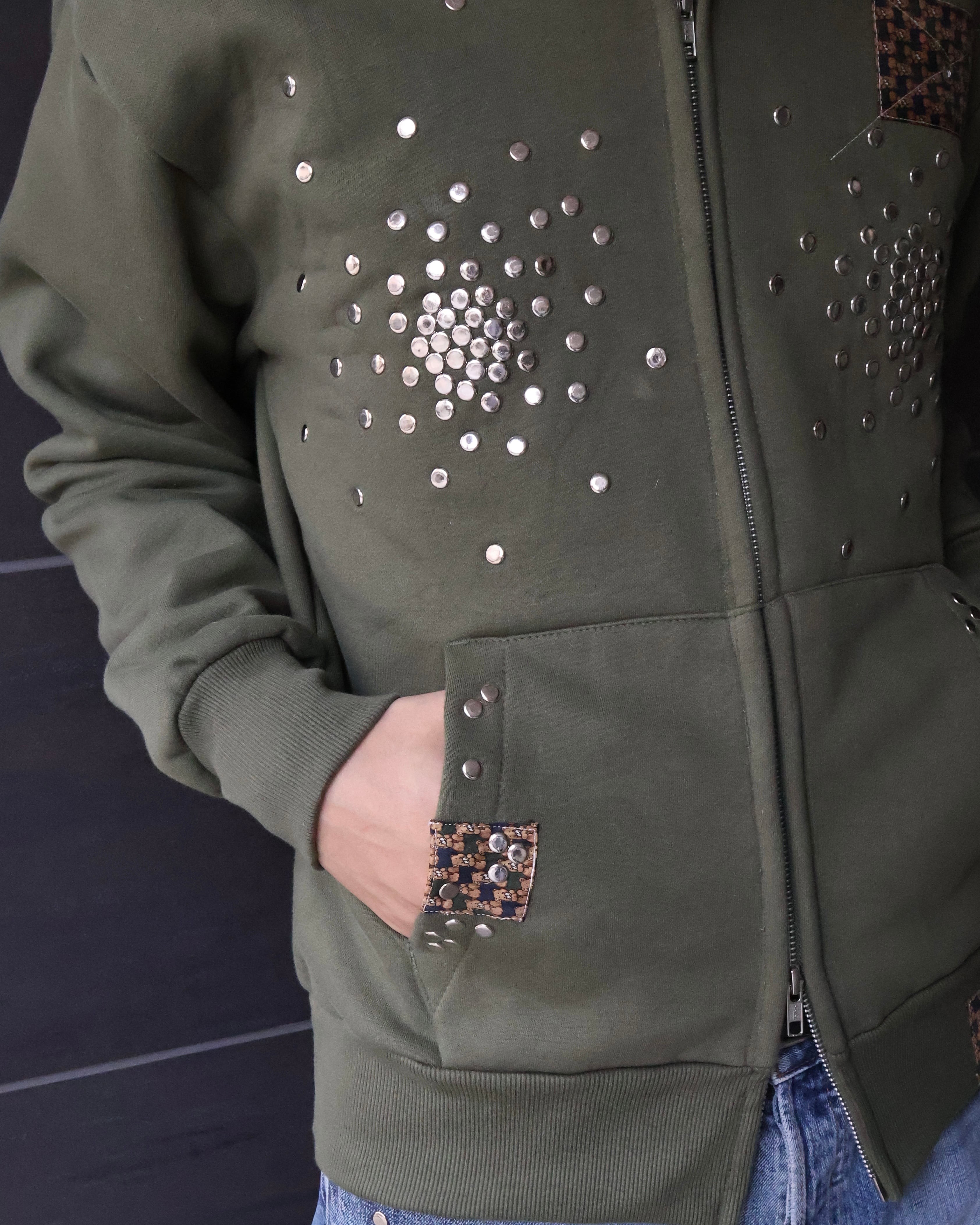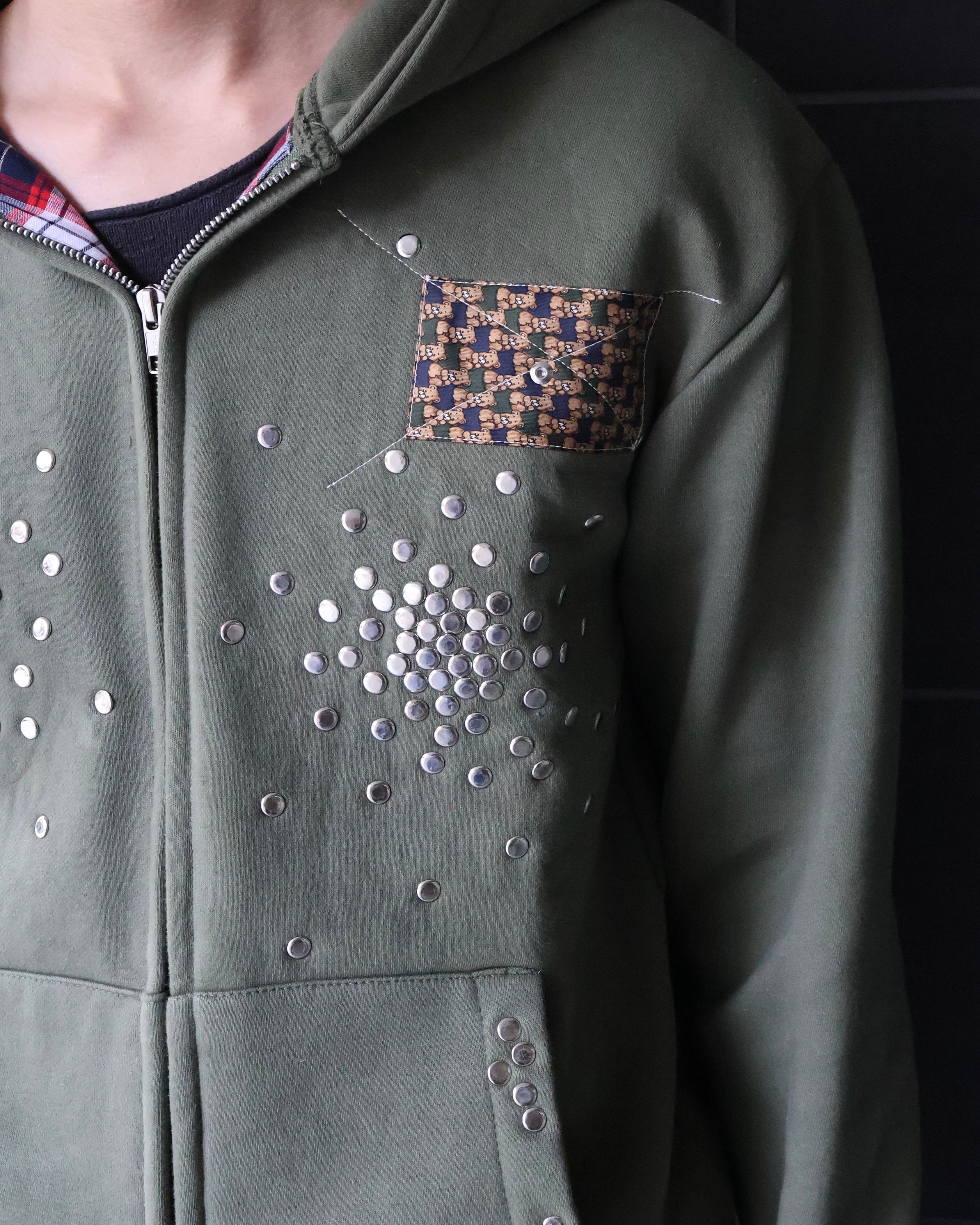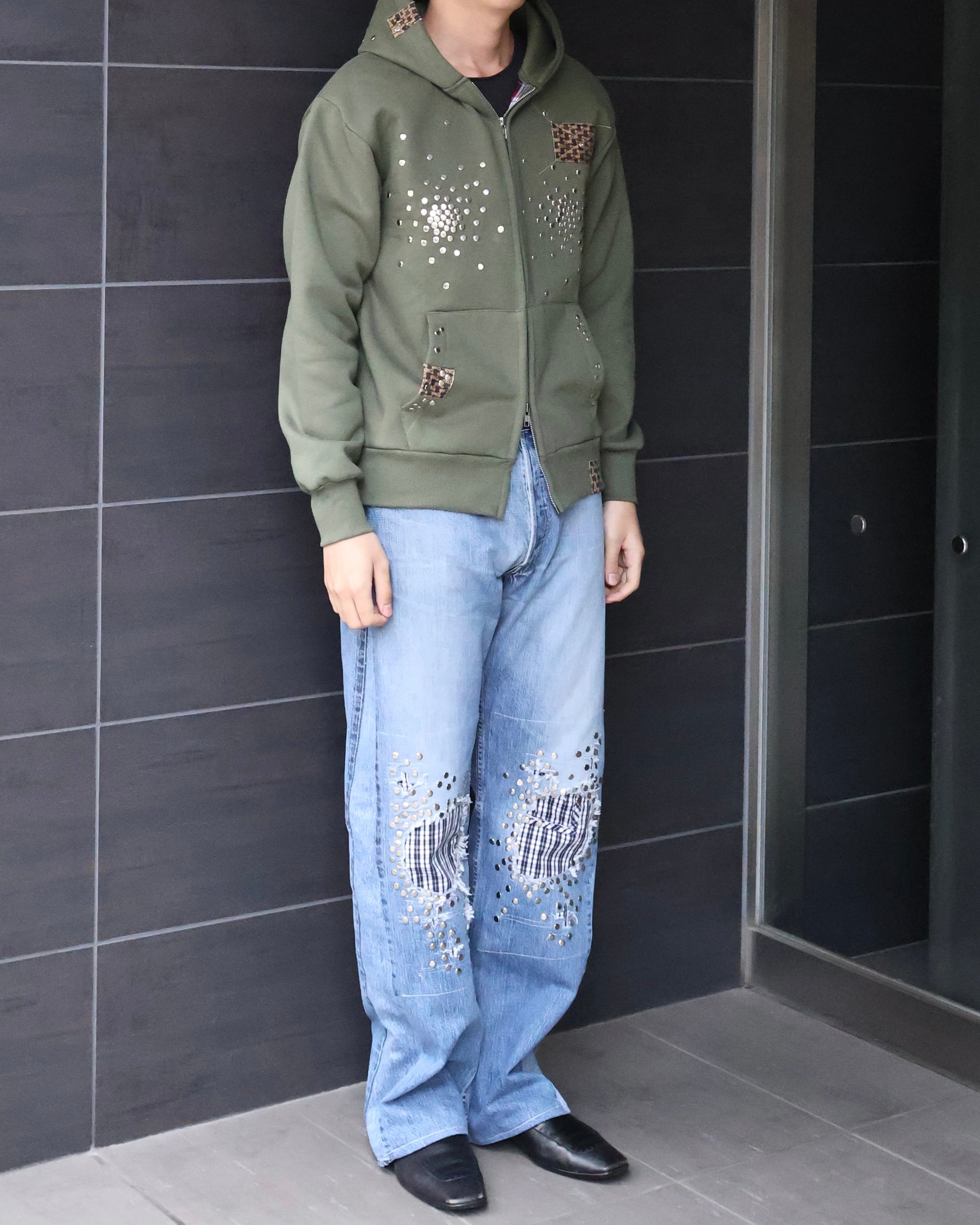 【Hannah Creak】Studded Hoodie Double Zip Khaki