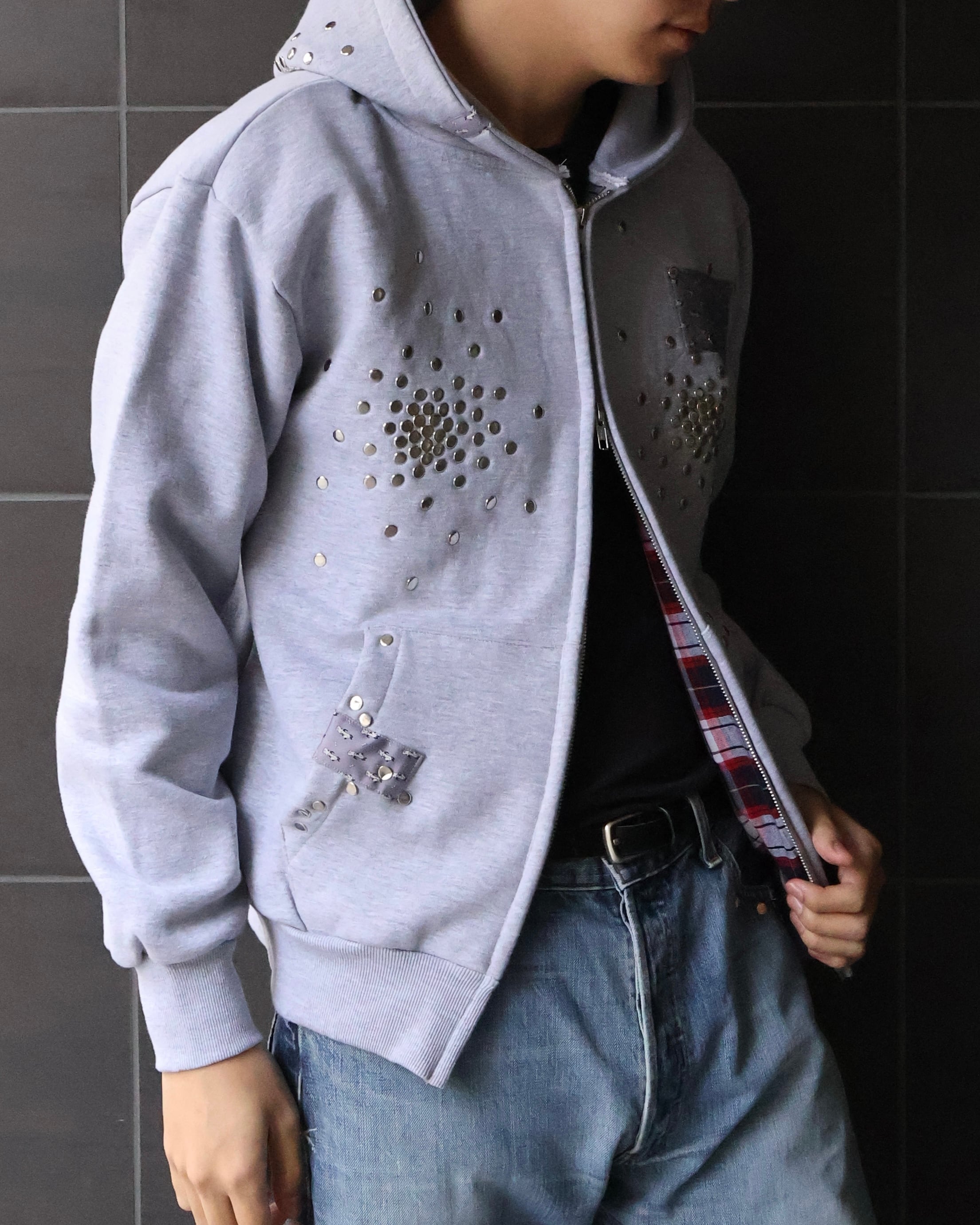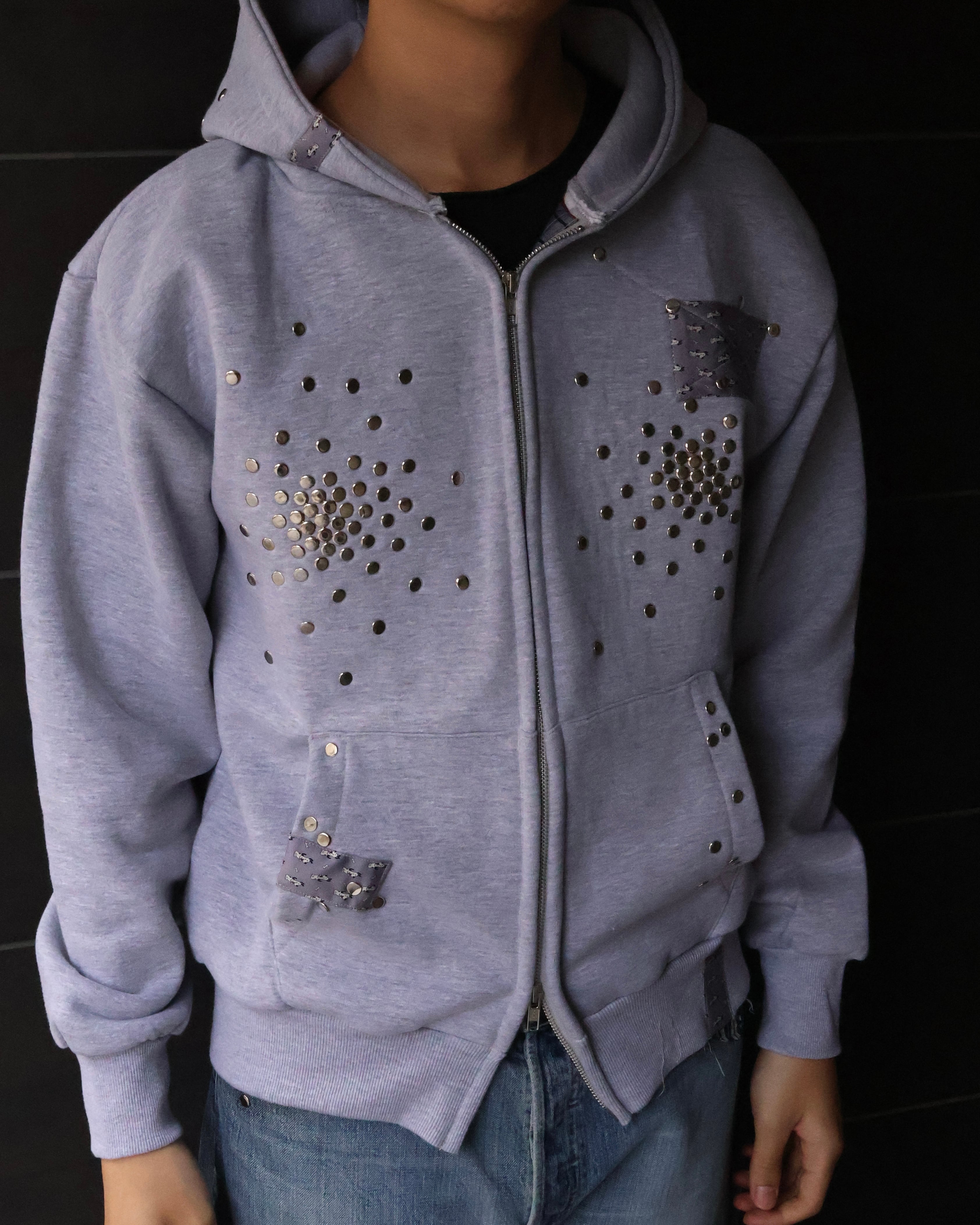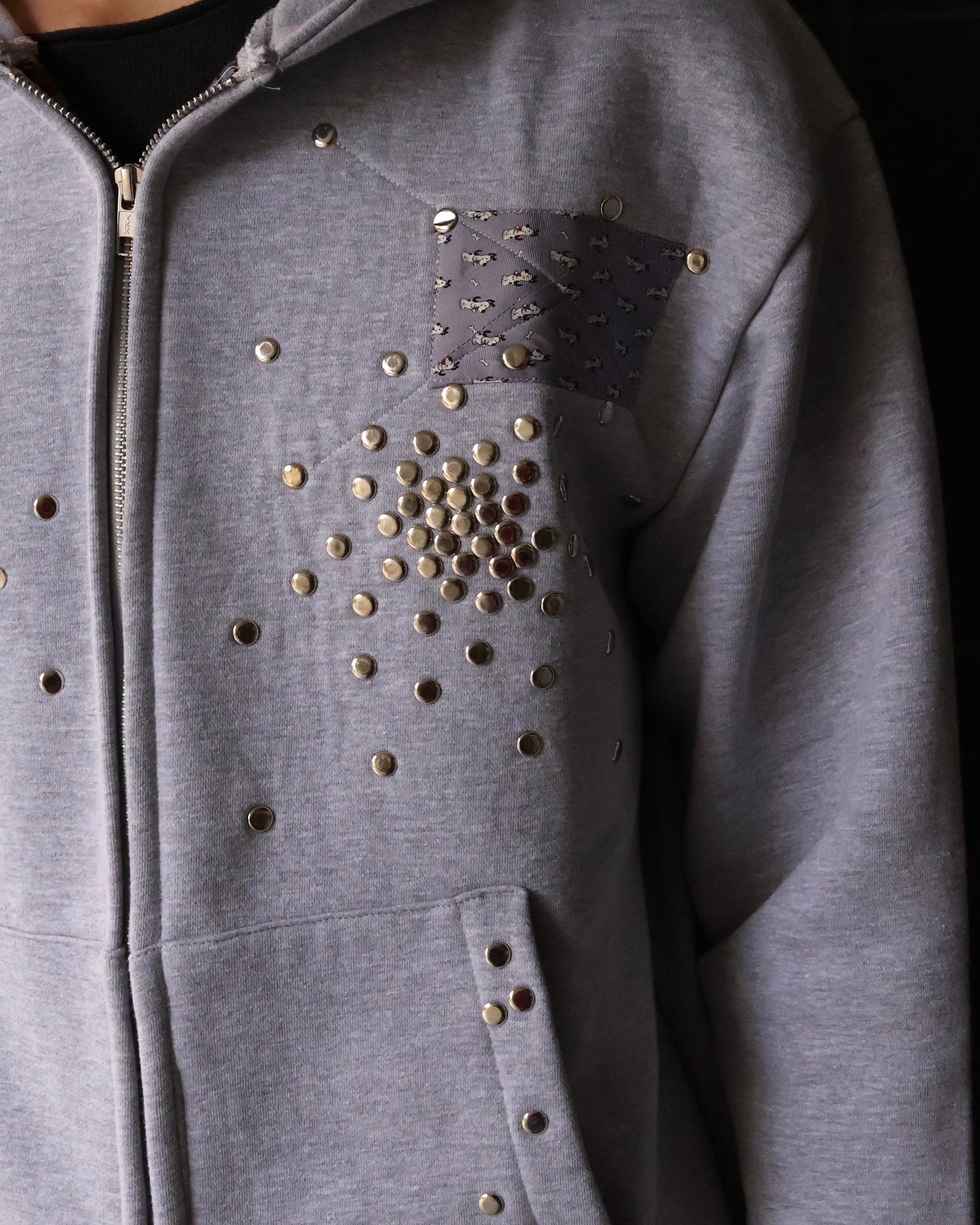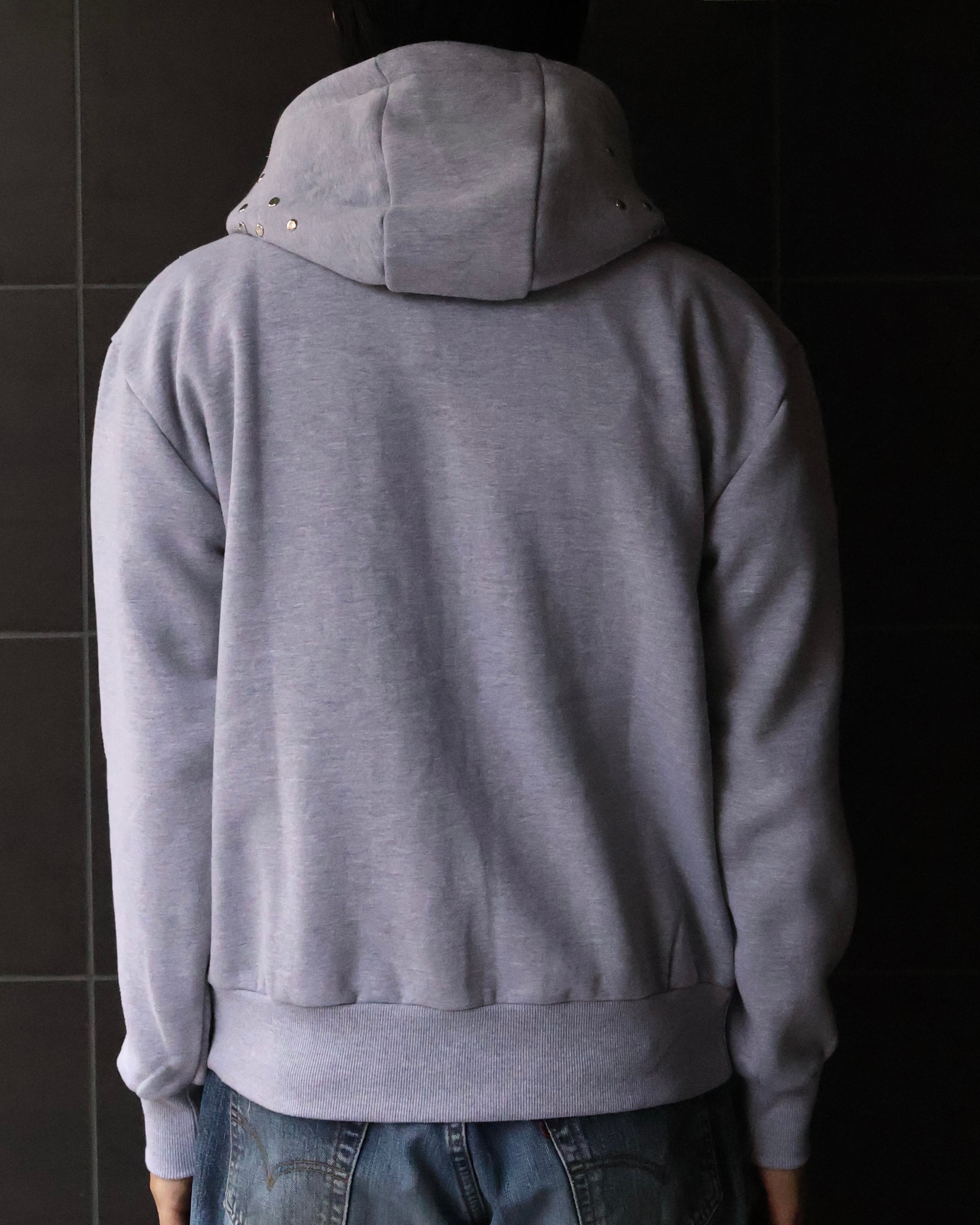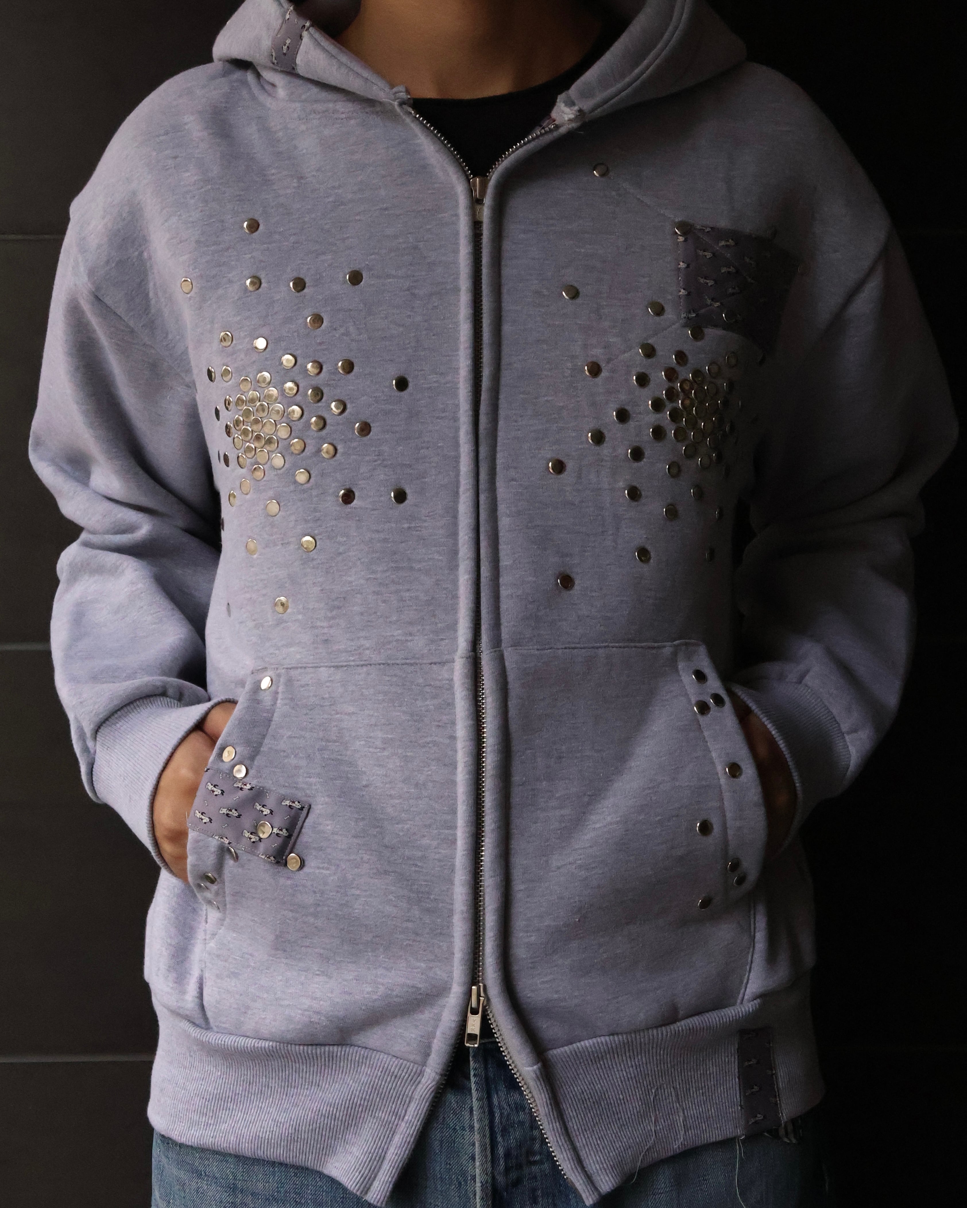 【Hannah Creak】Studded Hoodie Double zip Grey