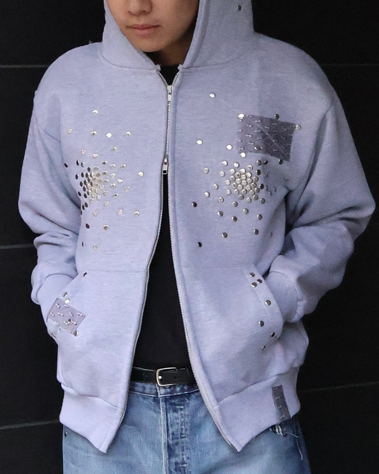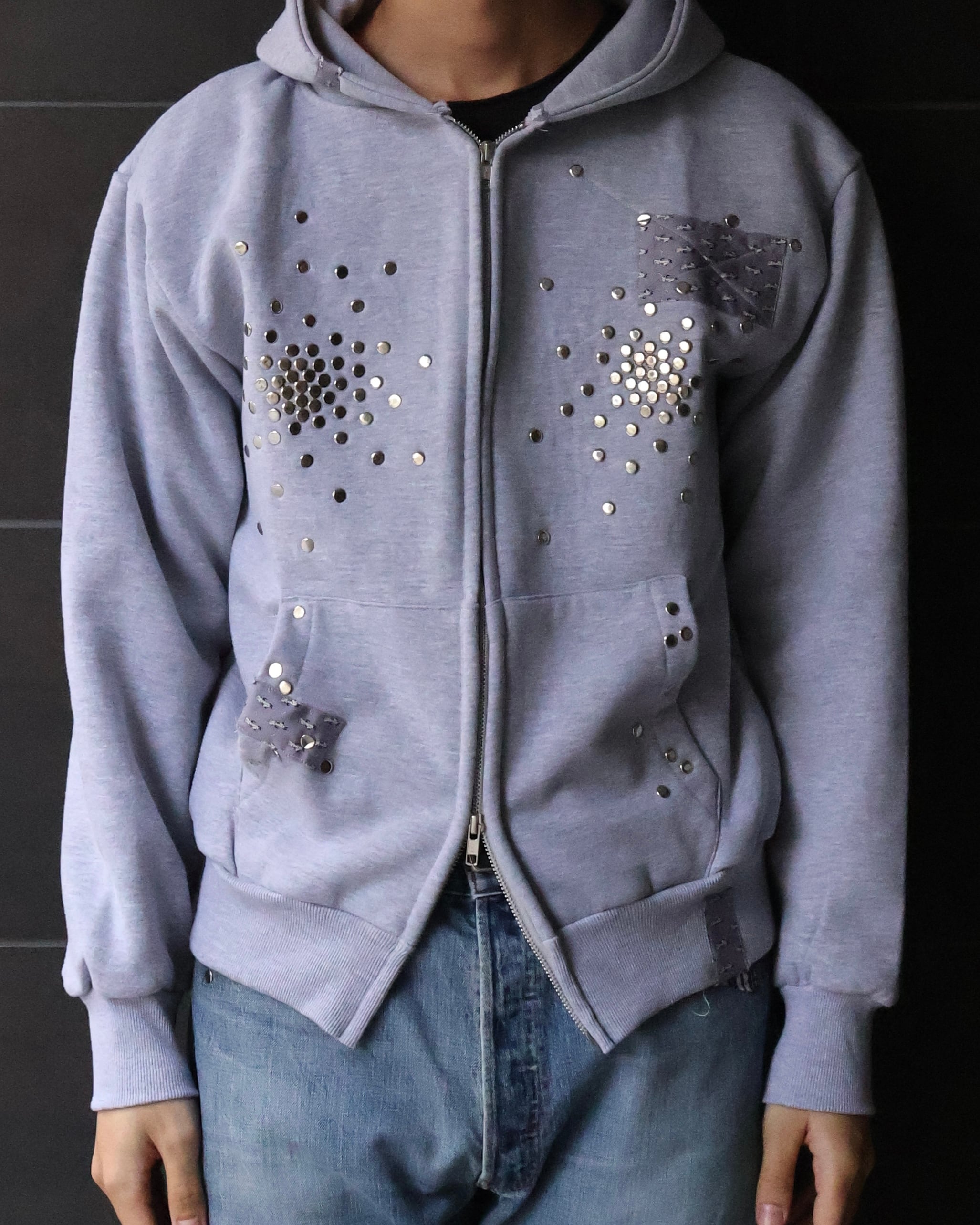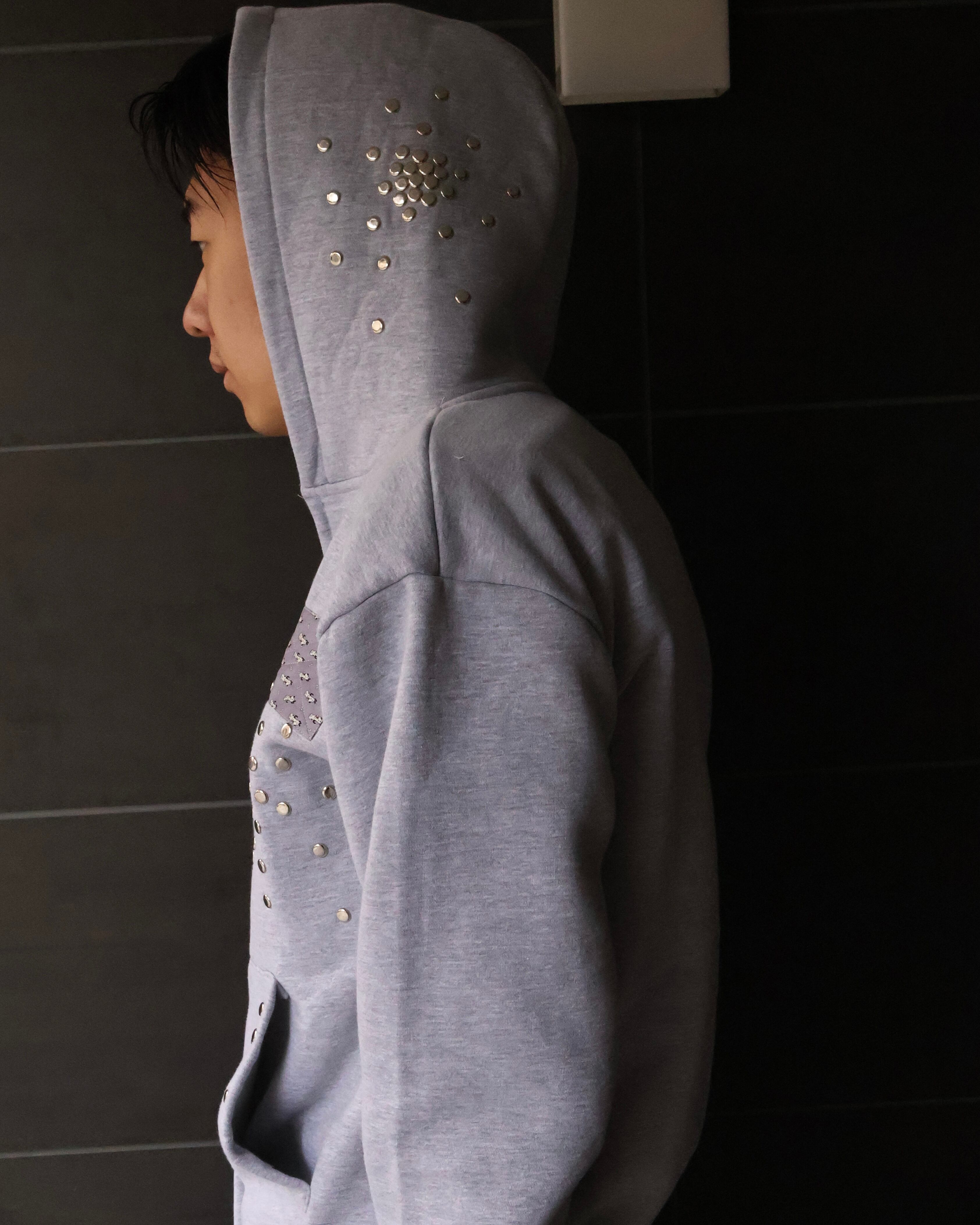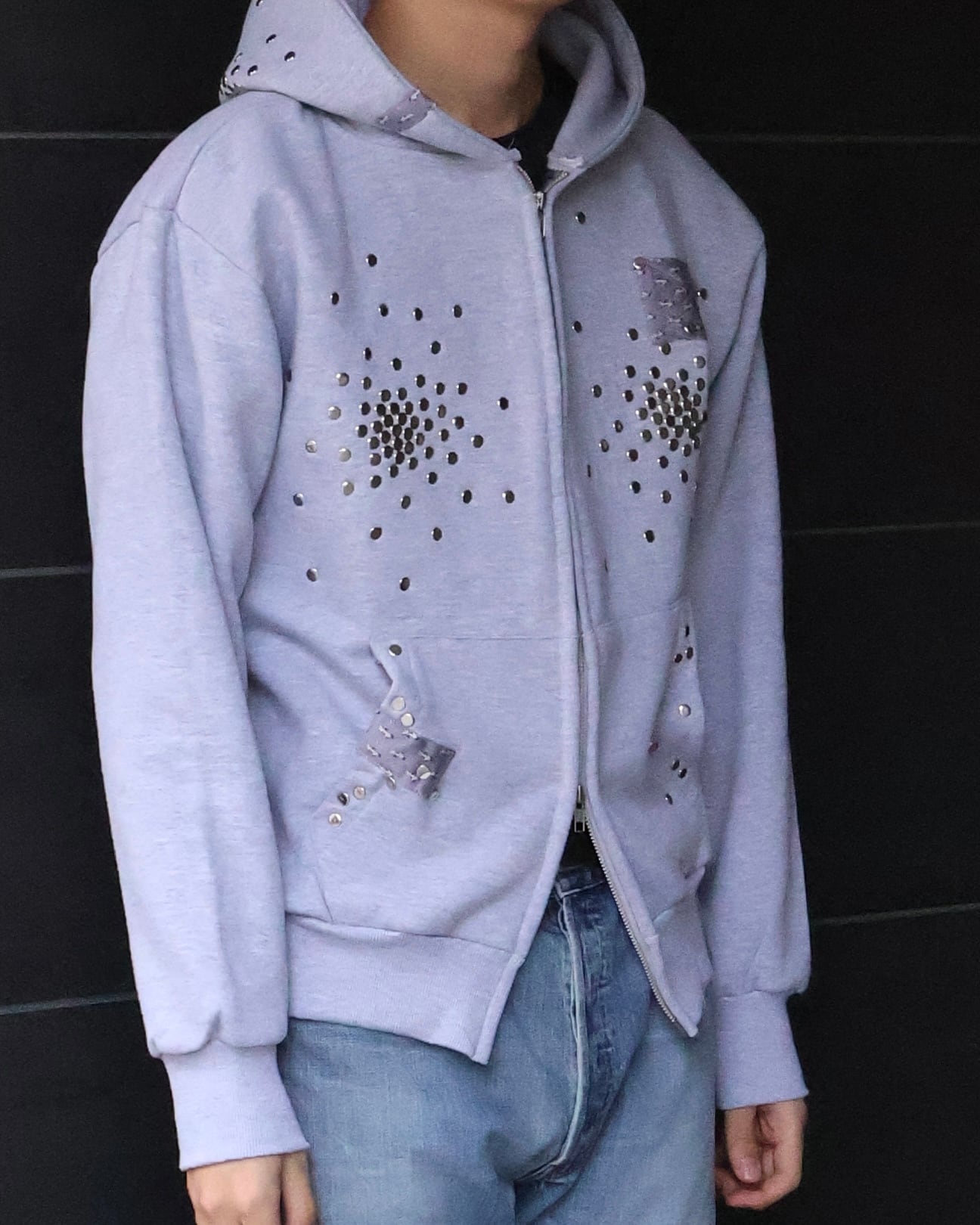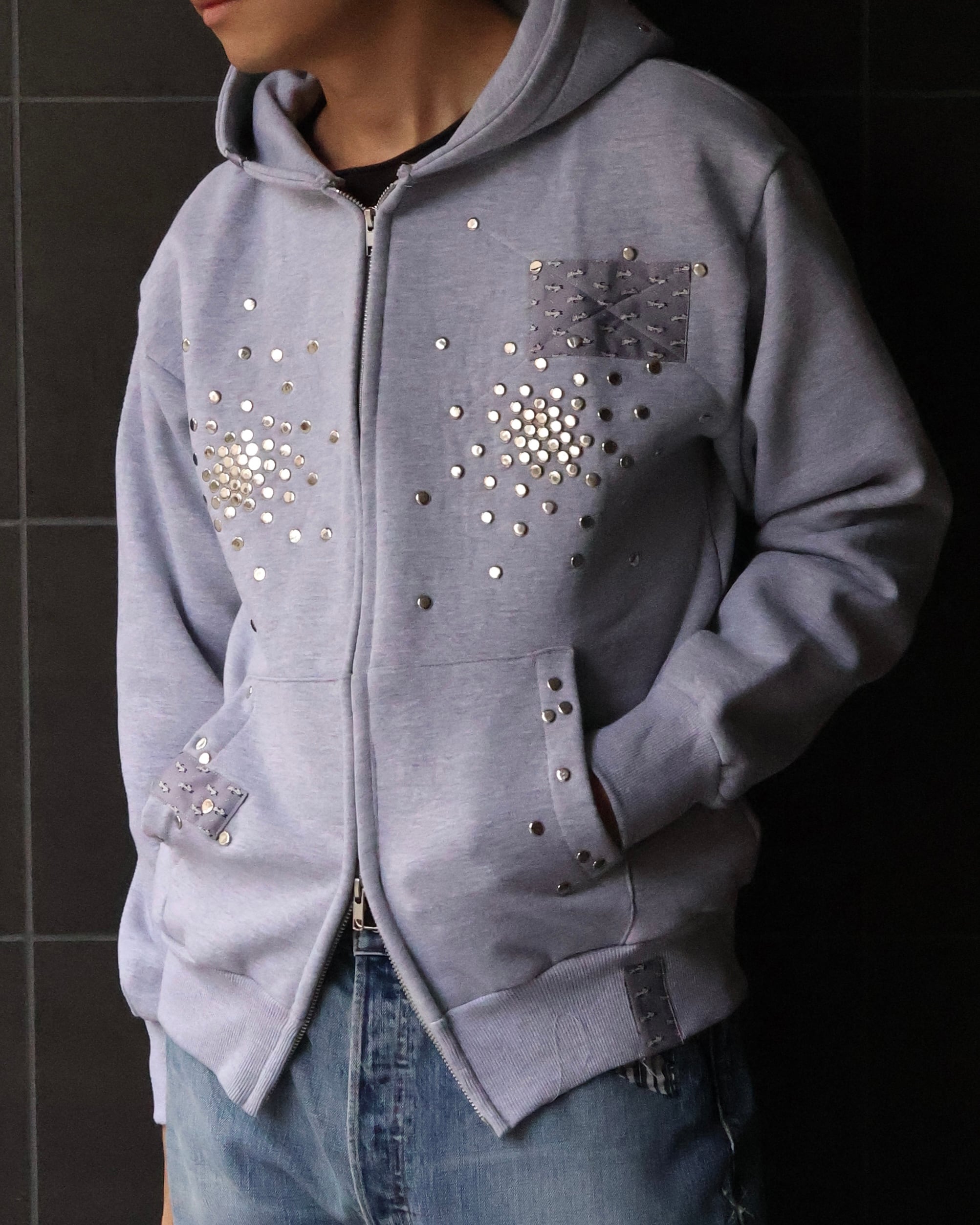【Hannah Creak】Studded Hoodie Double zip Grey