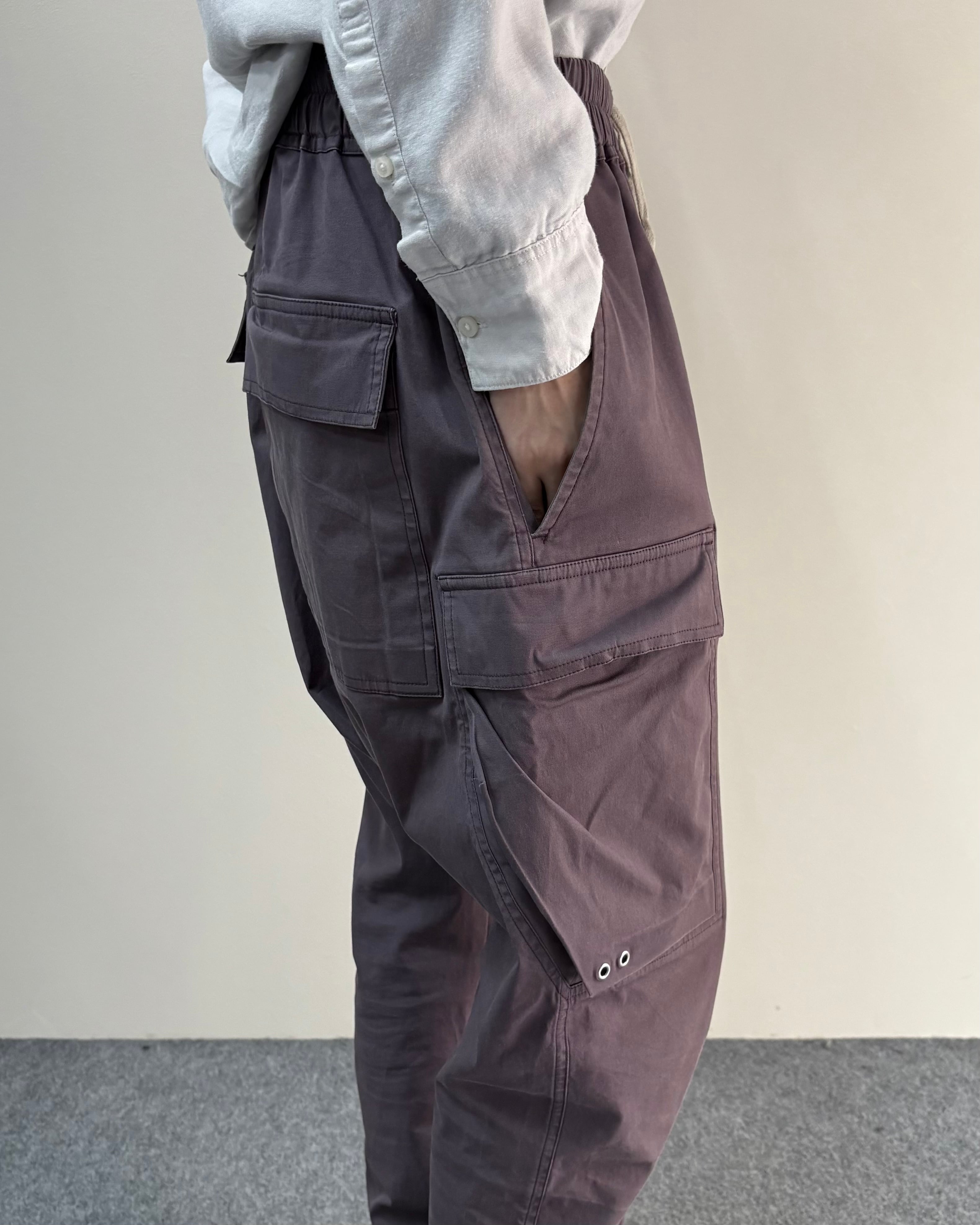 リックオウエンスらしい退廃的かつ構築的なシルエットが際立つ、2021AWシーズンのサルエルパンツ。深めに設定された股上とゆとりのあるヒップラインから、裾にかけて緩やかにテーパードする独特のフォルムが特徴。モードからストリートまで幅広く対応しつつ、リックらしい世界観を感じられるアイテム。