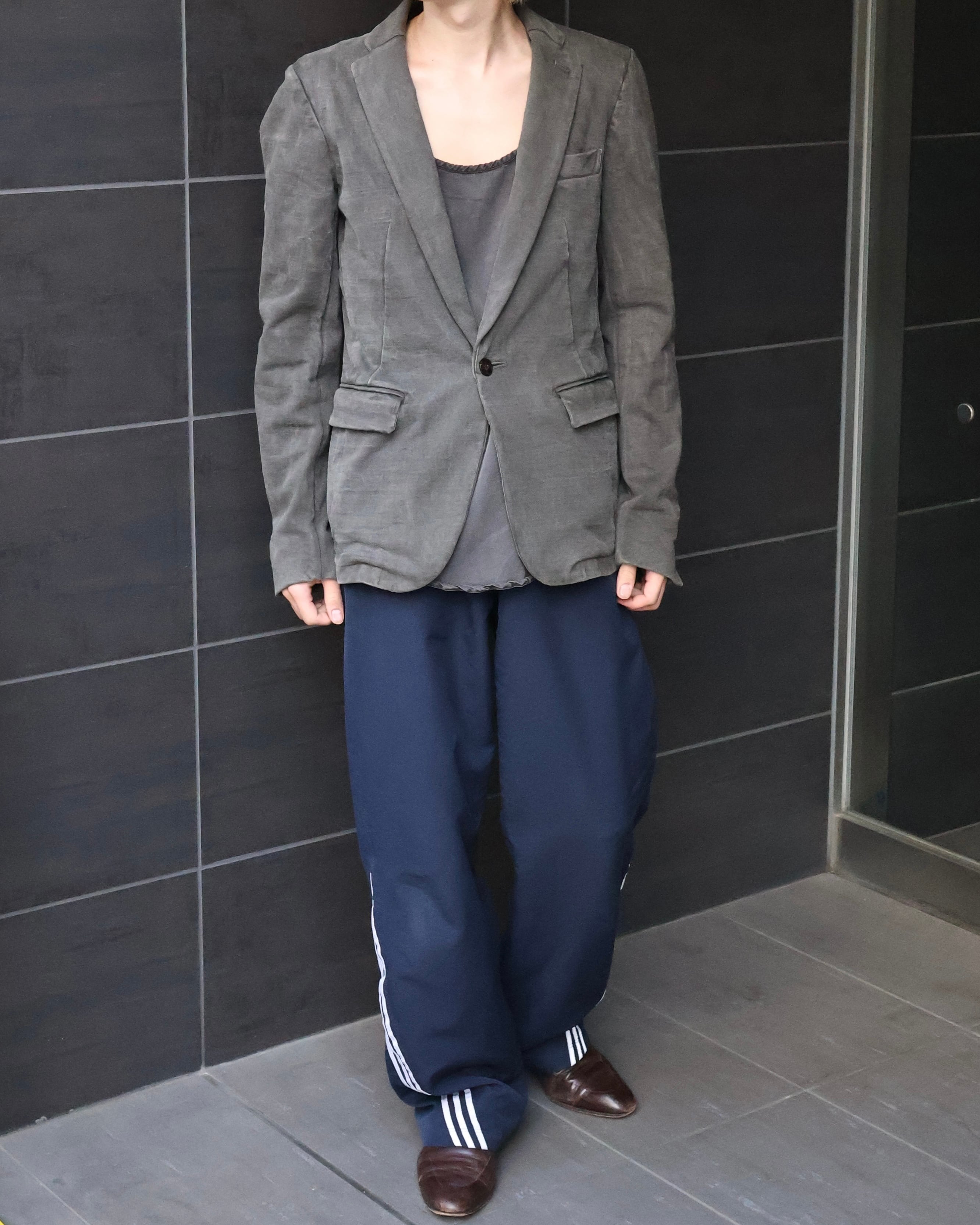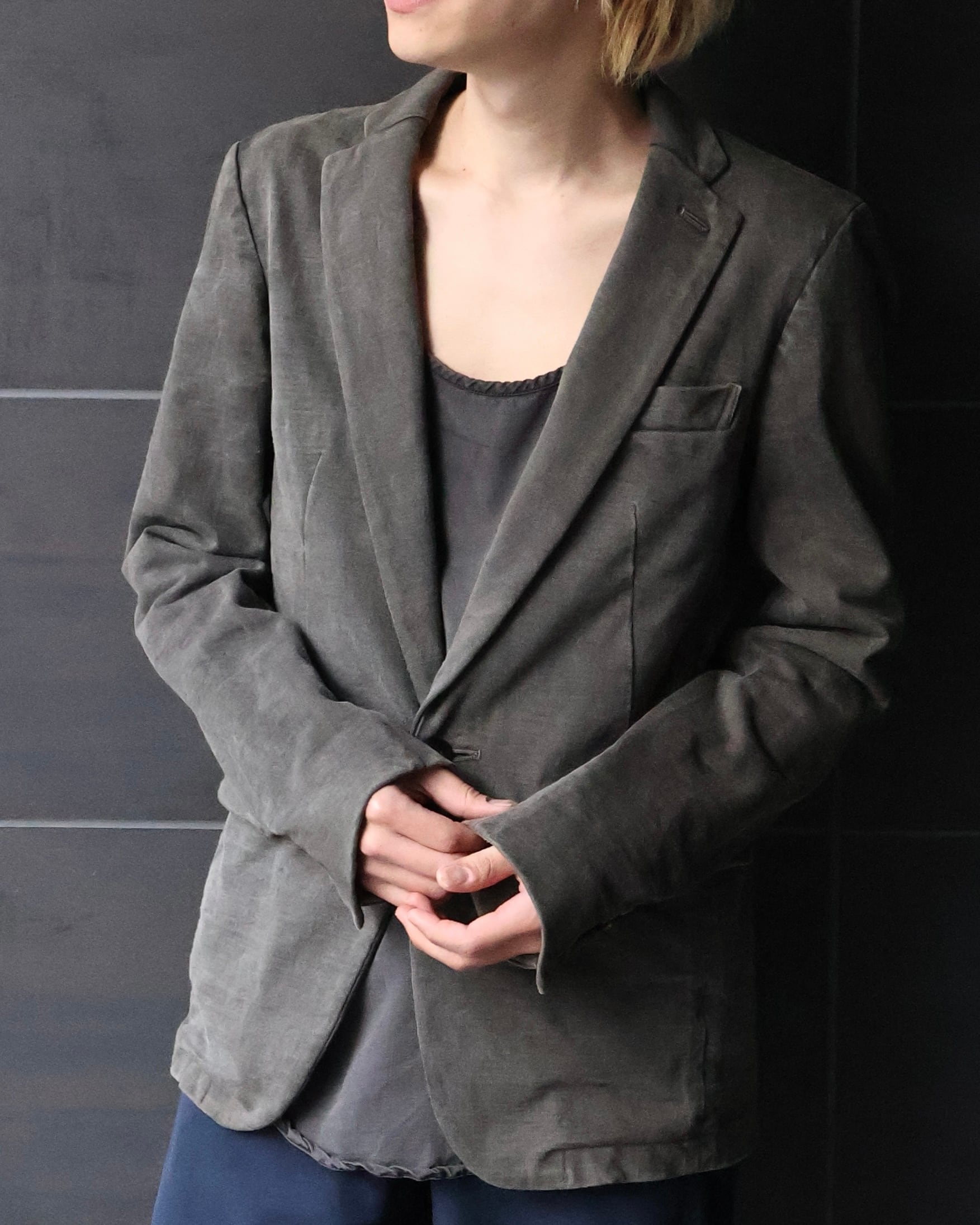 ブランドらしいコンパクトで存在感のあるテーラードジャケット。タイトなフィッティングではあるが、閉塞感のない、むしろ心地よい緊張感を演出するサイジングが見事で、下半身はショーツからフルレングスのパンツ、様々なアイテムと相性の良い汎用性の高いアイテム。
