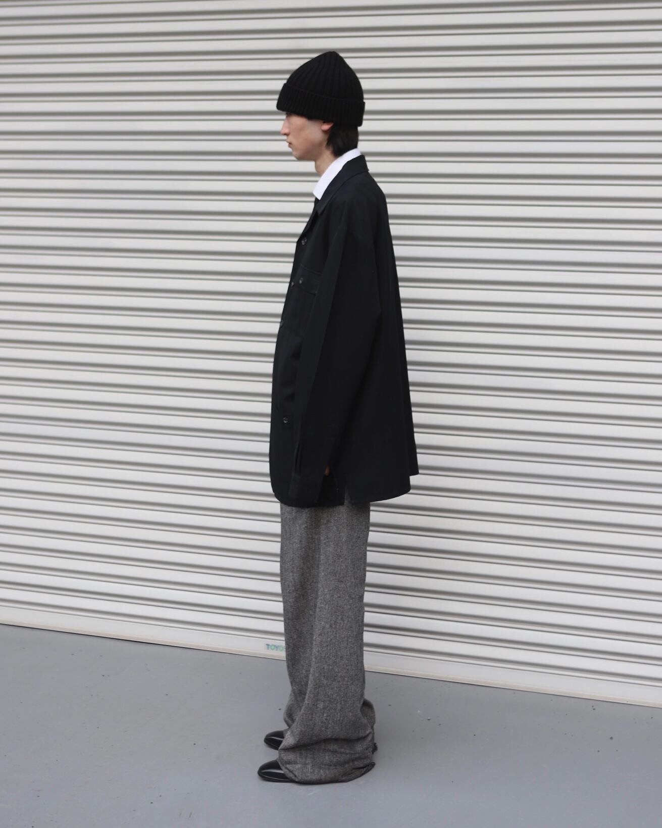 オーバーサイズシルエットの4ポケットシャツジャケット。コートなどのインナーとしても着れ、春先は軽アウターとしても使える1着。