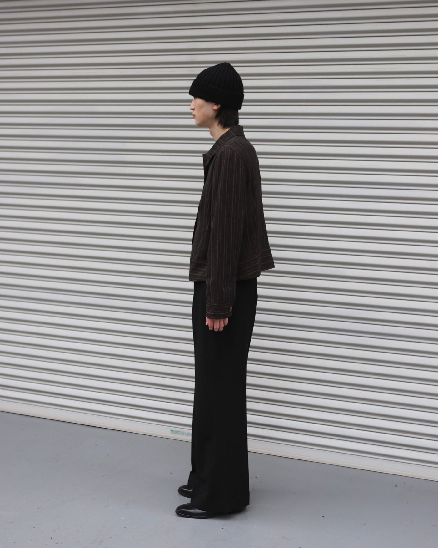 ストライプ柄、短丈のブルゾン。