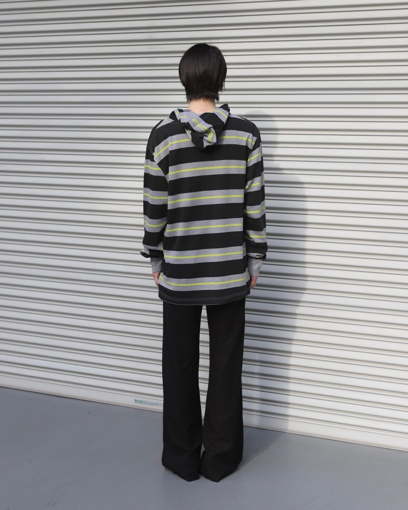 マルチカラーのボーダーフーディー。