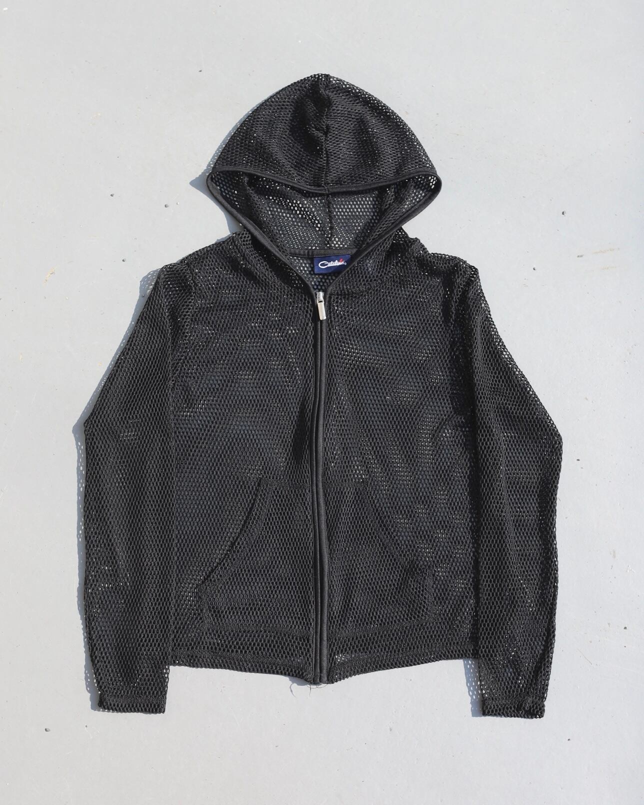 短丈のメッシュジップフーディー。