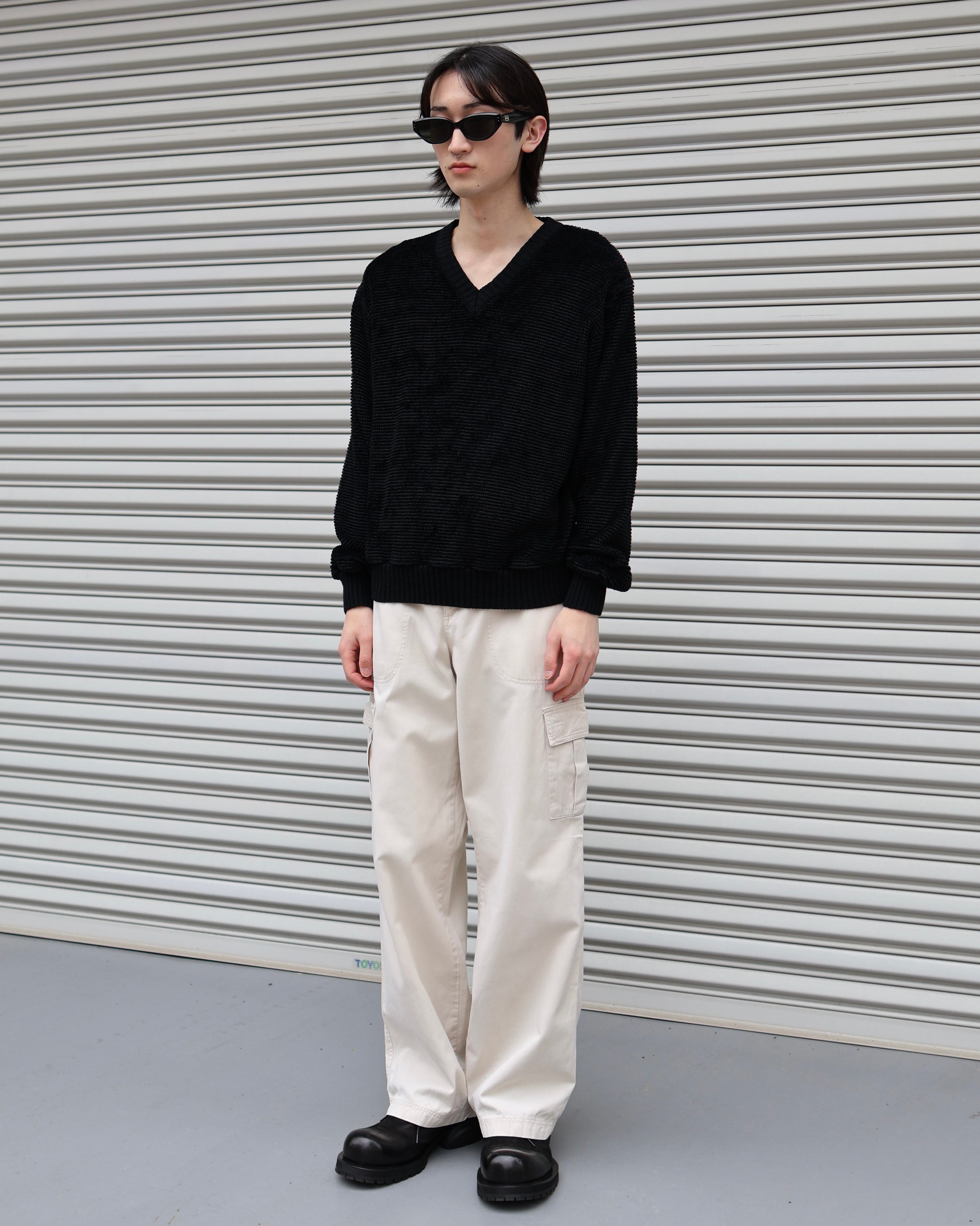 薄手の素材感で春先一枚でシンプルにキマる1着。