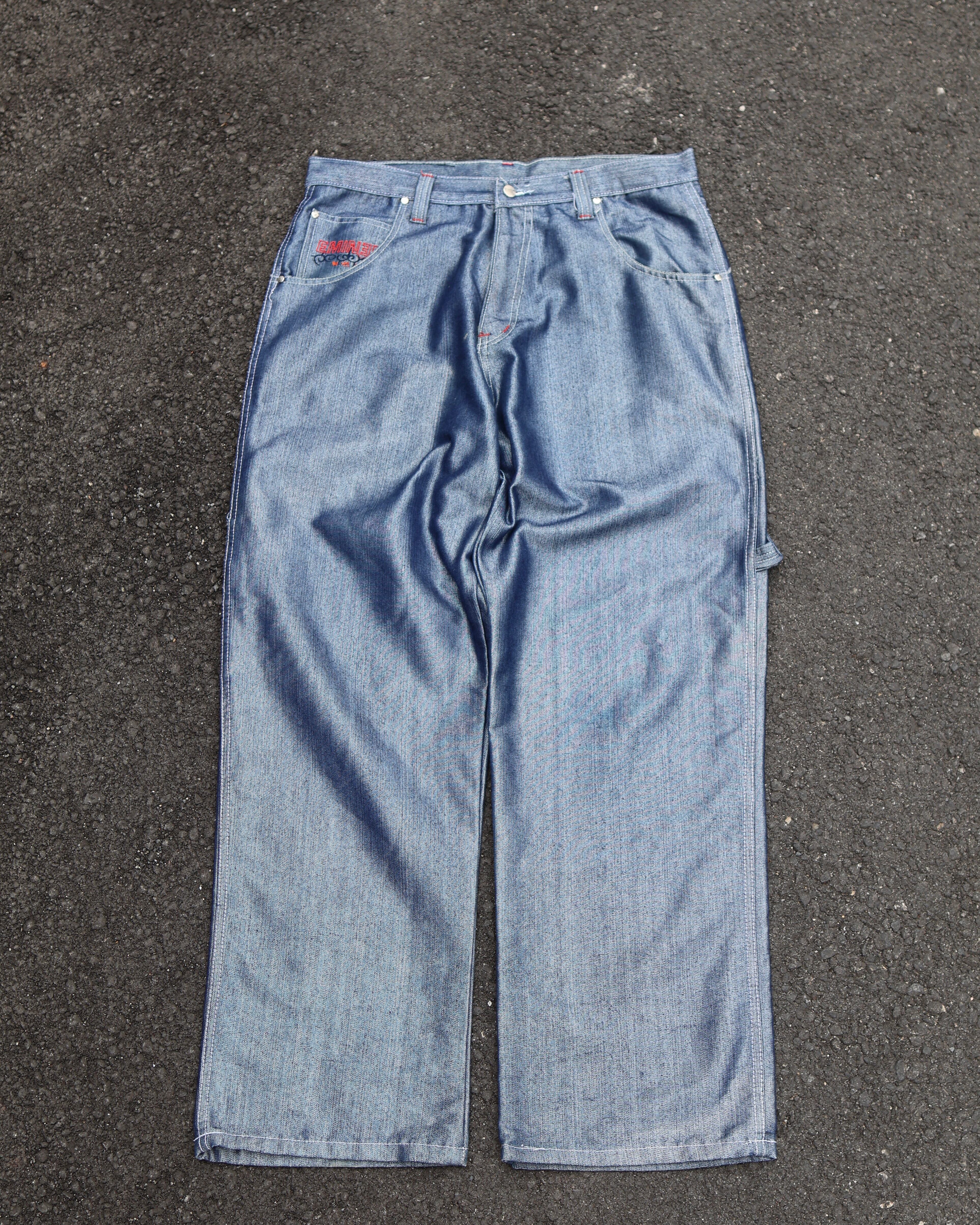 フロントにロゴデザインが入ったバギーデニム。