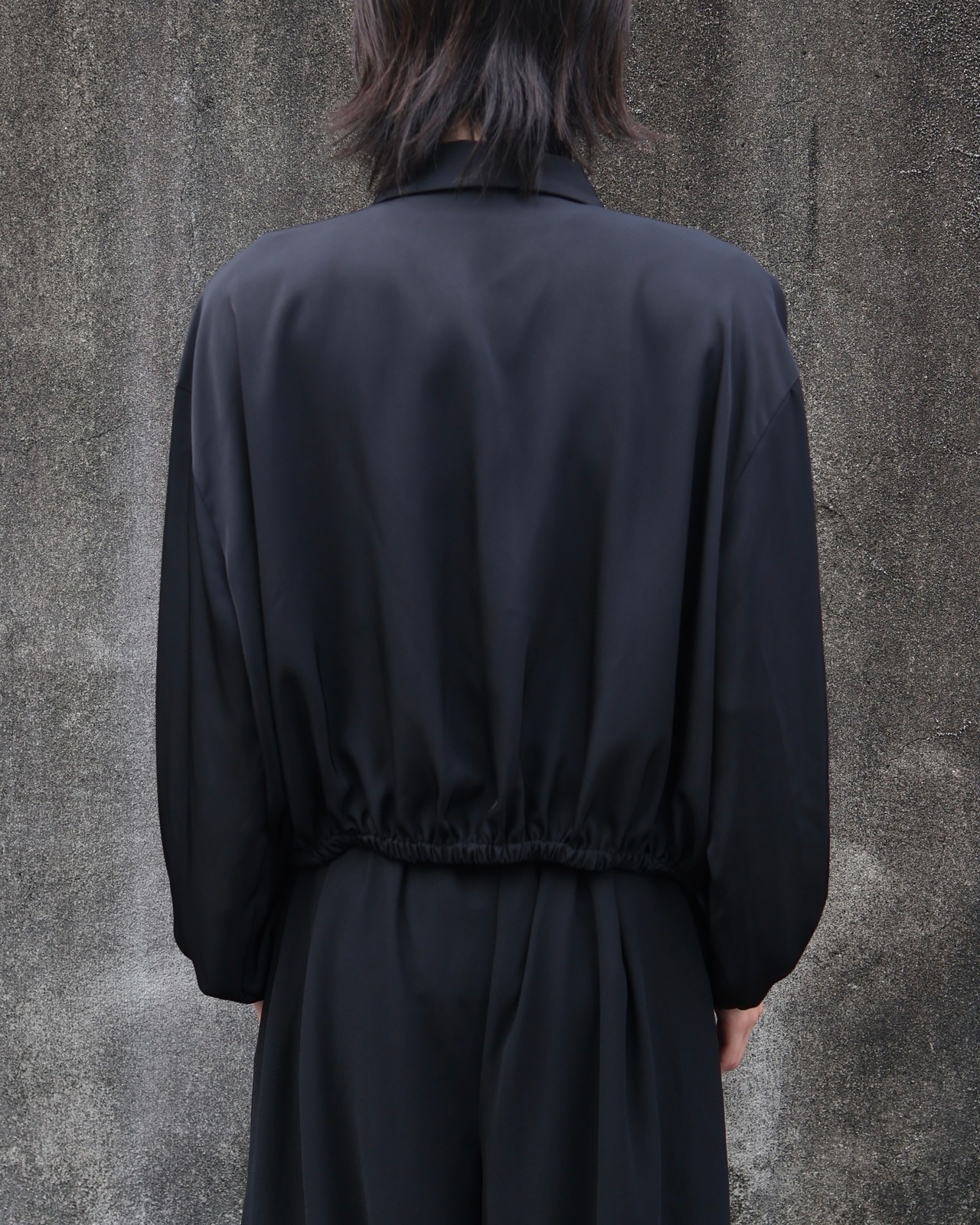裾の絞りによって着用の際溜まるようなシルエット。