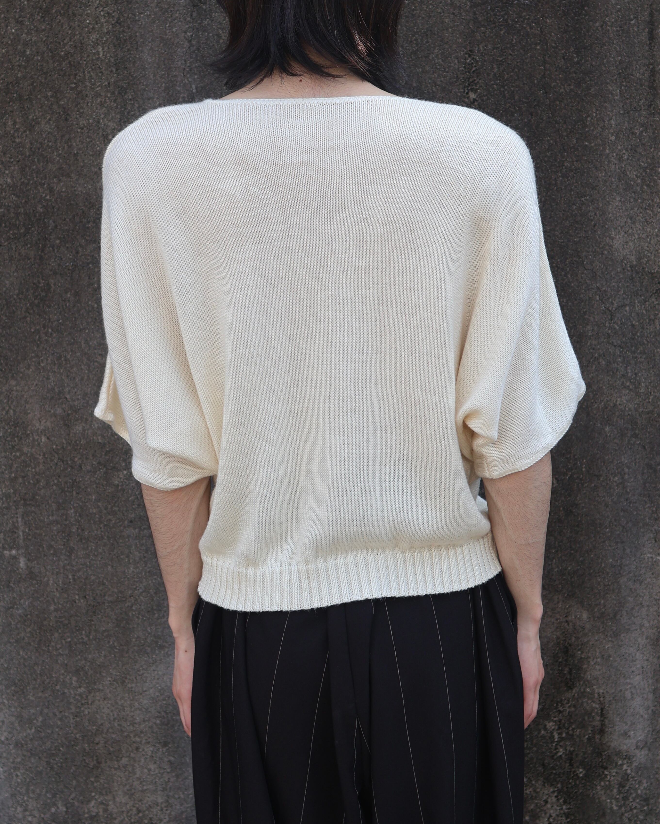 ゆとりのある身幅が特徴的なvネックデザインニットトップ