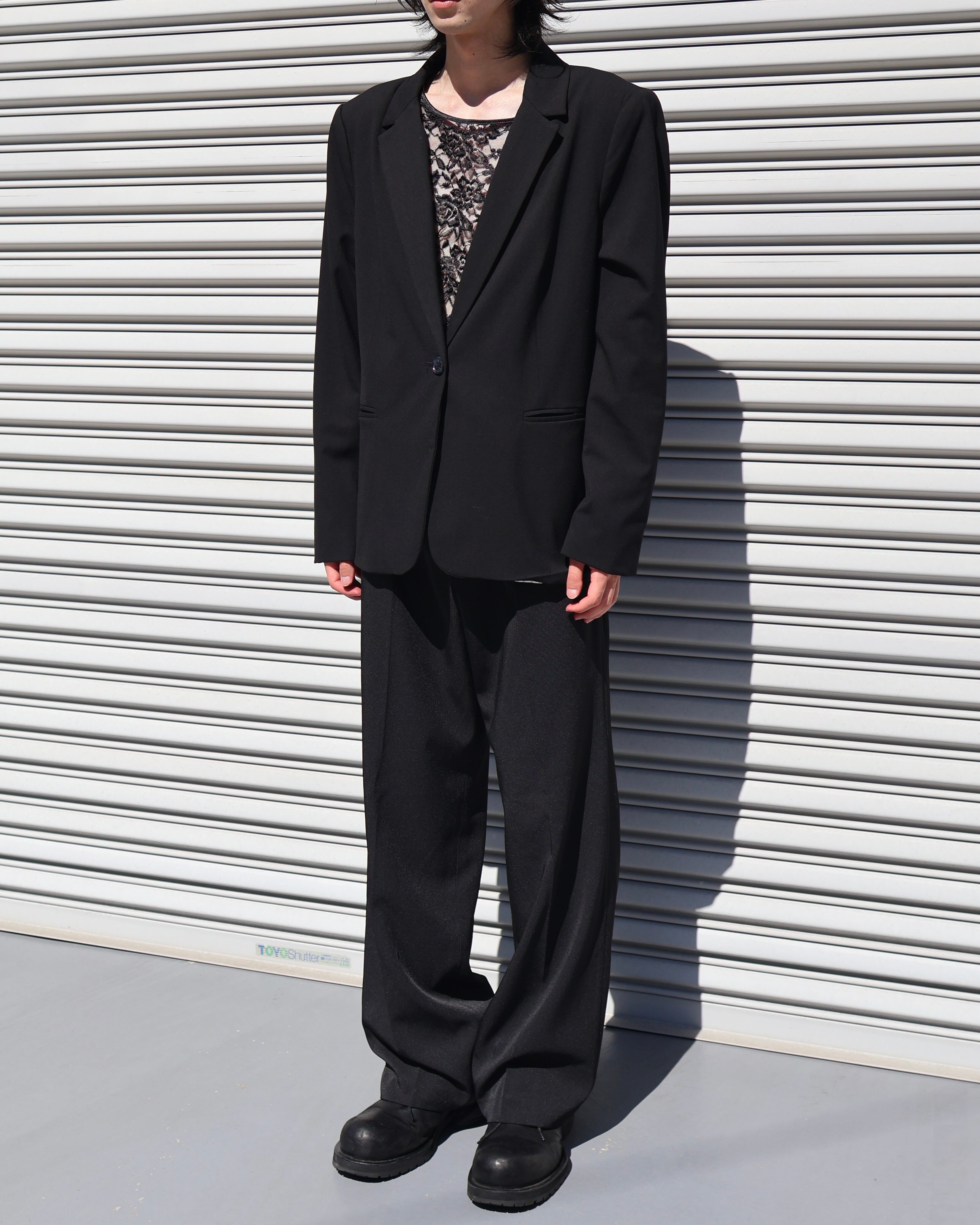 boxシルエットかつ1Bの組み合わせが良く、モードスタイルにも幅広く活躍できる1着。