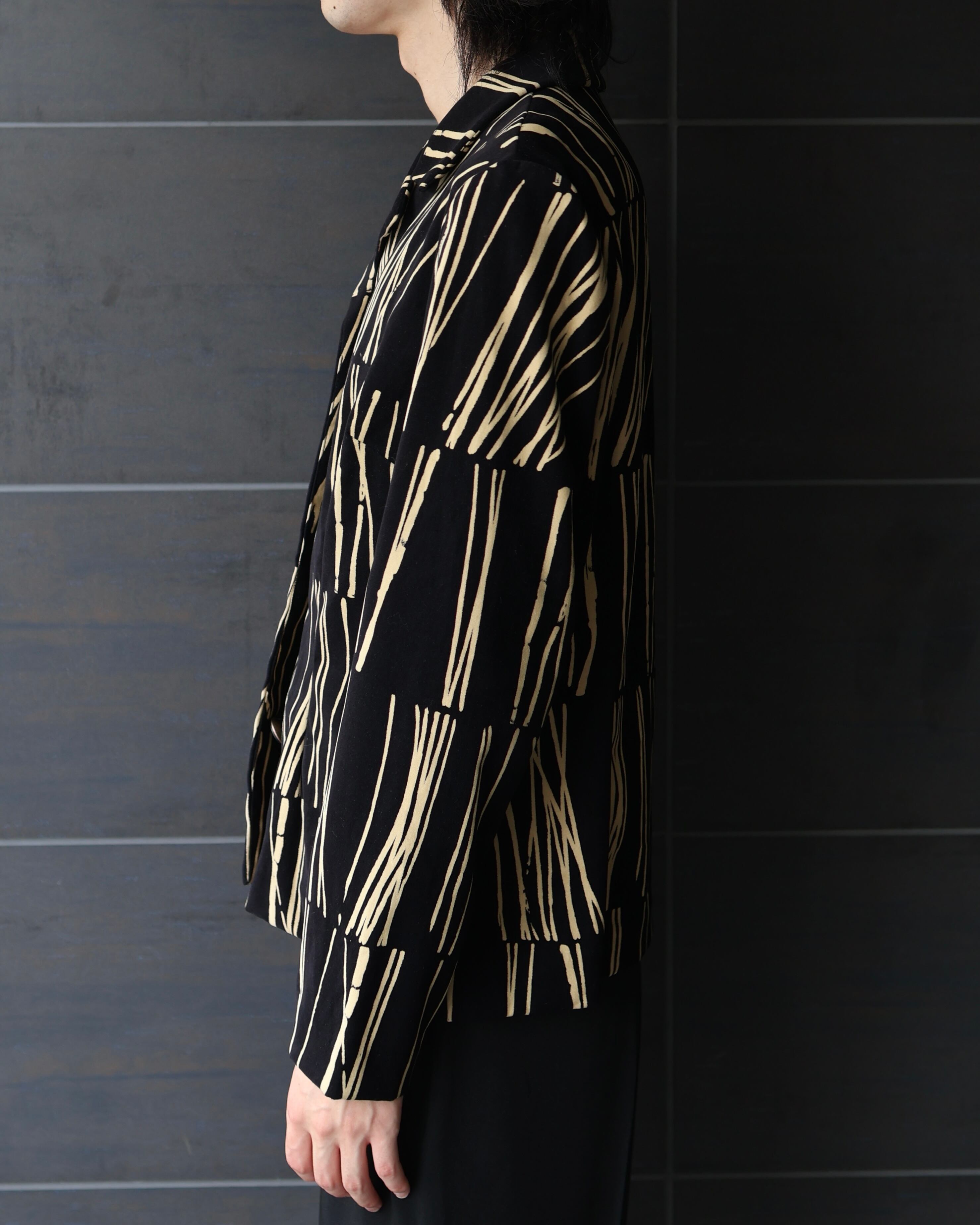 オープンカラーの襟で首元を見せれるライトアウター。春秋一枚でタイトなサイズ感を作れる1着。