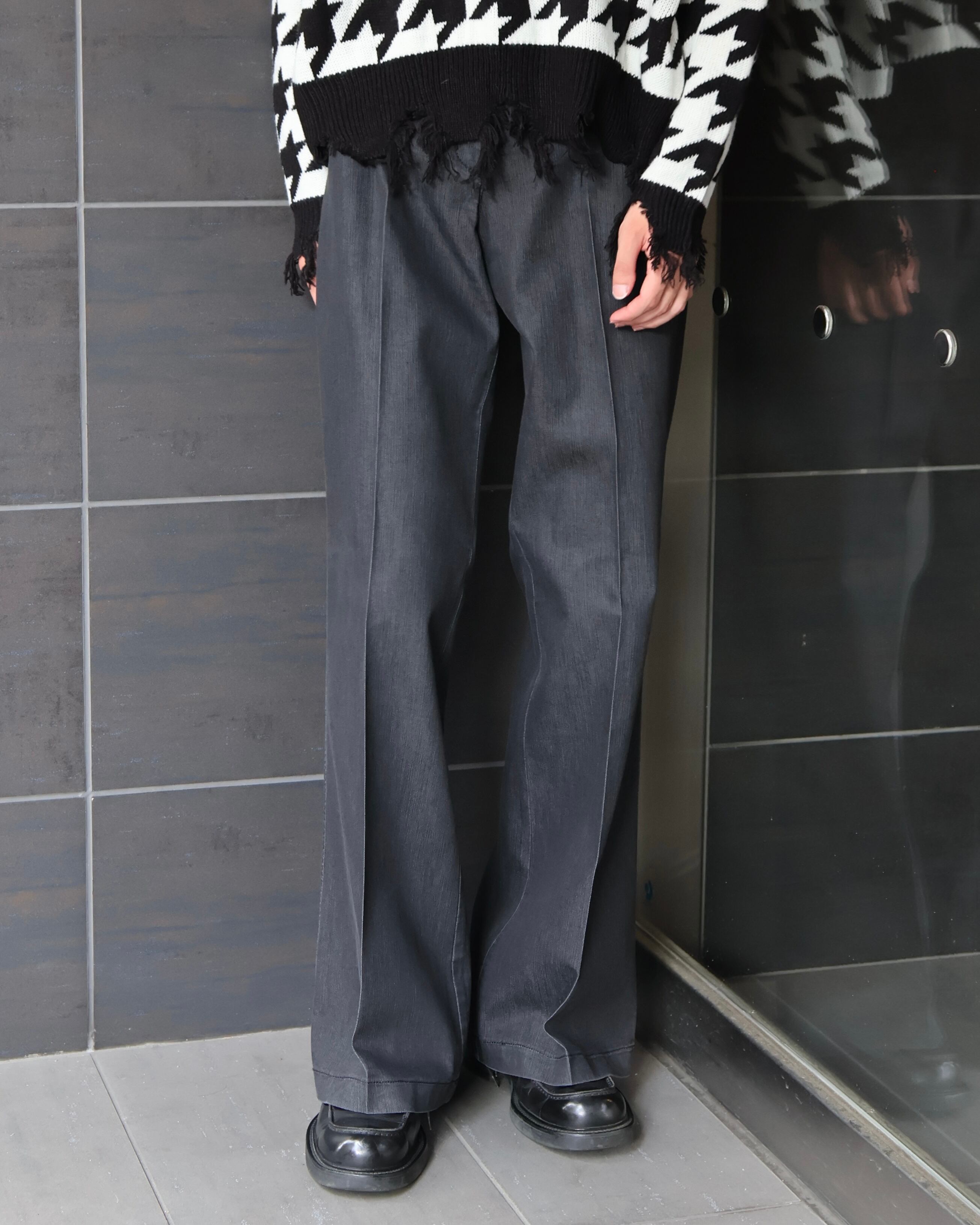 ストレートの綺麗なシルエットでどんな服装にもハマる1着。モードなスタイルにも振れるデニム。