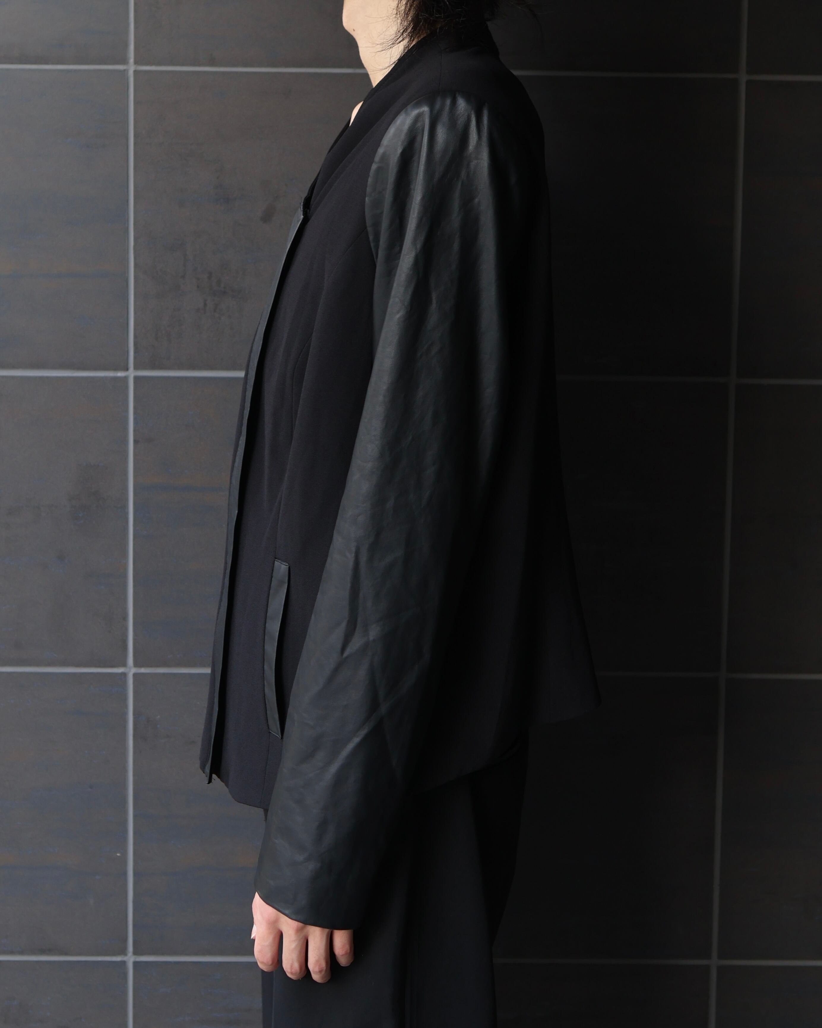 レザーライクの生地との切り返しが特徴的なライダースジャケット。