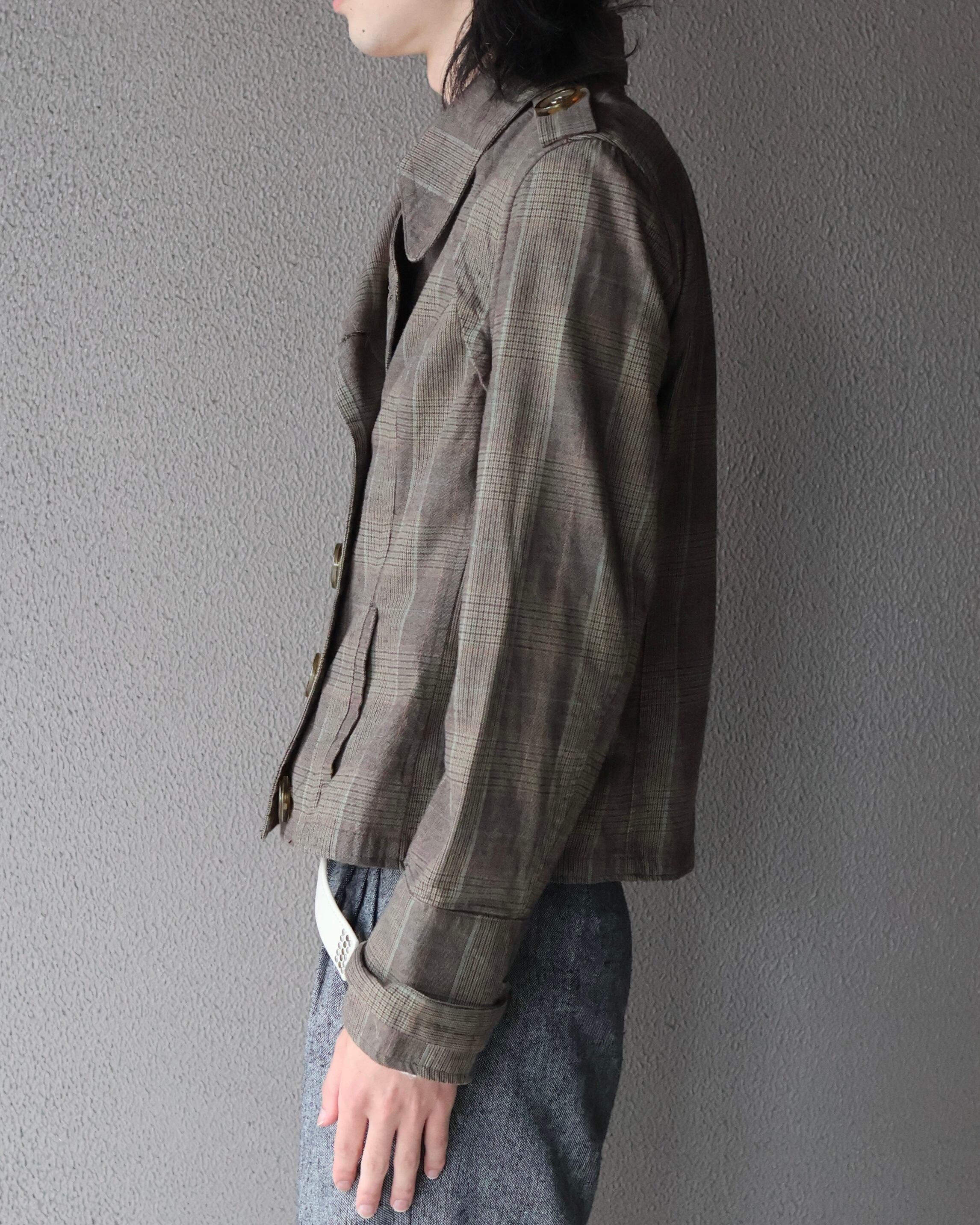 短丈かつエポレットなど、トレンチ要素が含まれた1着。またカラーリングも良く、落ち着いた雰囲気のあるスタイリングも可能で、1枚でも様に着用できるアイテム。